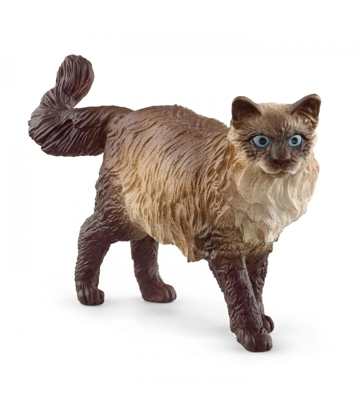 ¿Miedo a las alturas? Cuando el Gato ragdoll de Schleich® FARM WORLD escucha esta pregunta, gira los ojos hacia arriba de aburrimiento. Gracias a su cola, mantiene siempre el equilibrio, trepa árboles, cuencos de cereales o estanterías de libros con gran habilidad. De este modo, puede limpiarse su suave pelaje en los rincones más altos de tu habitación.