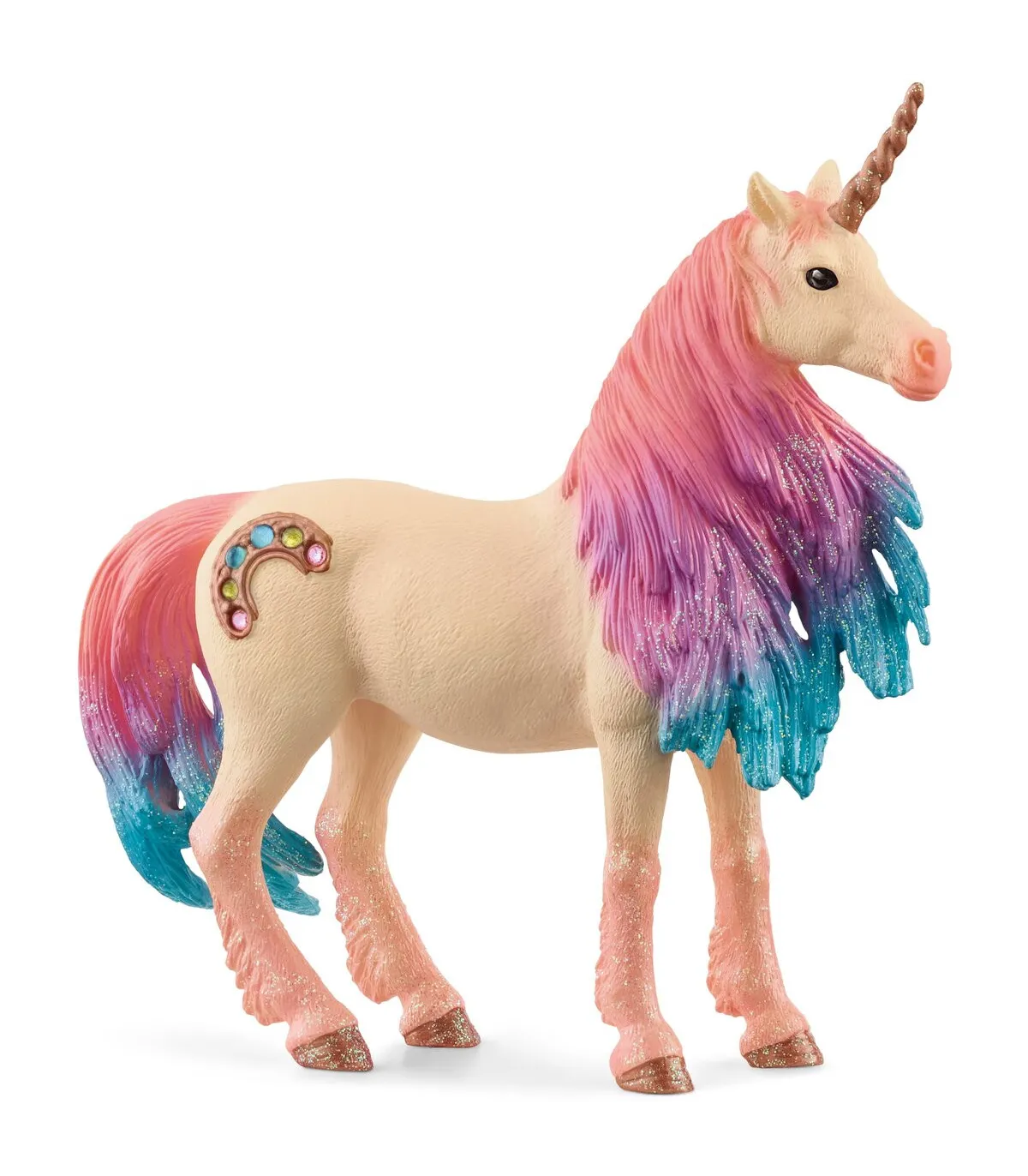 ¡Qué - suavidad! La Yegua unicornio Marshmallow del universo BAYALA® de schleich® tiene un pelaje increíblemente suave. Es tan suave que podrás pensar que estás tocando las nubes. Sus coloridas crines son especialmente fotogénicas. También porque ella sabe exactamente cómo posar. Con su familia, el unicornio semental algodón de azúcar y el potro unicornio de caramelo, ya se ha hecho miles de fotos. Y todas escondidos bajo tu cama. Las fotos en blanco y negro no les gustan demasiado, porque en ellas no se aprecian sus coloridas crines. Hazles una instantánea, ya verás lo bien que salen.