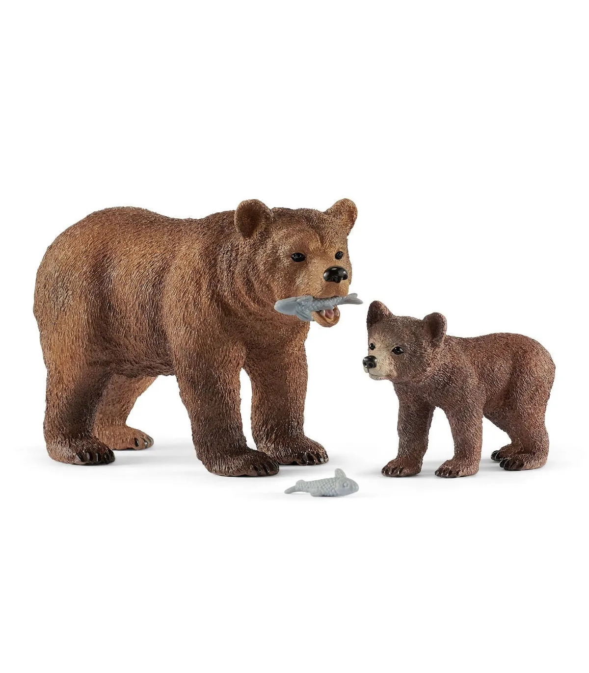 1x mama osa grizzly, 1x cachorro oso grizzly, 2x peces