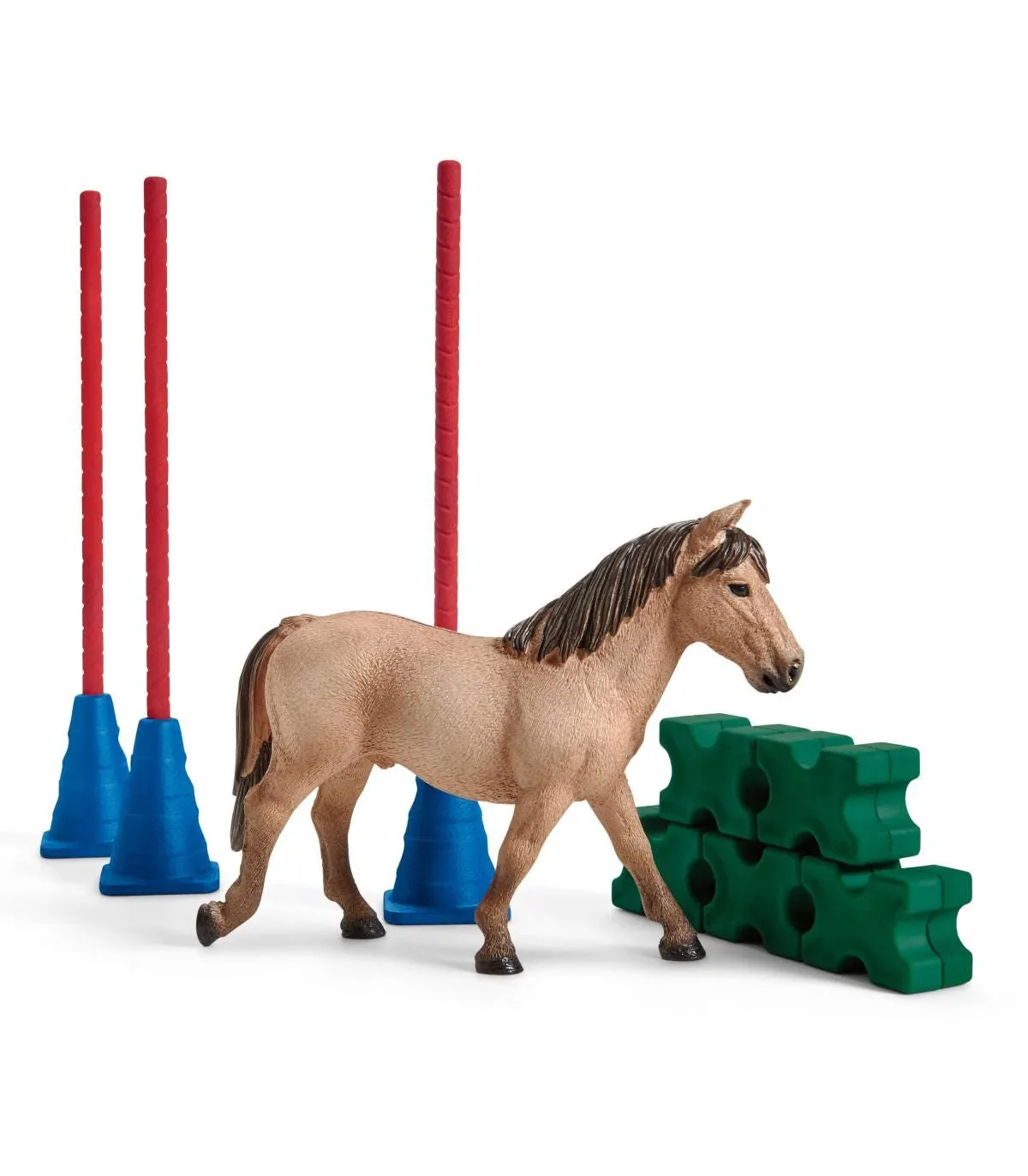 1x caballo salvaje Dülmen, 3x conos, 3x postes, 5x barras Cavaletti