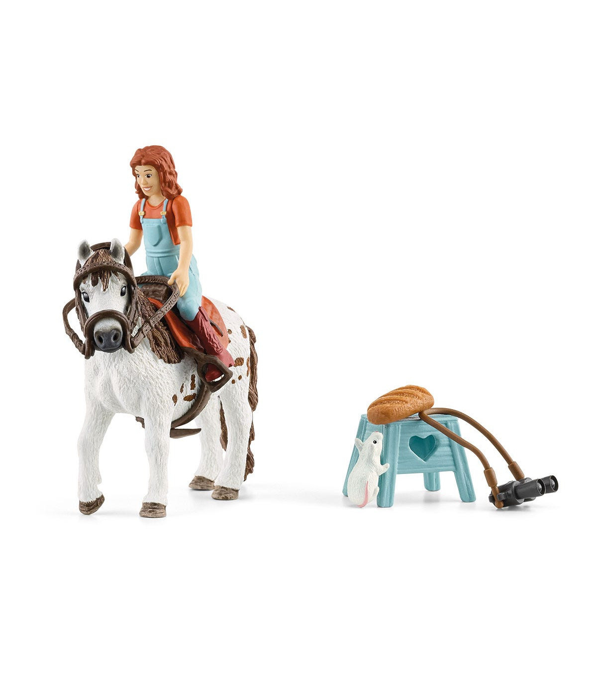 1x niña, 1x yegua poni Shetland , 1x silla, 1x cabezada, 1x riendas, 1x ratoncito, 1x taburete, 1x prismáticos, 1x pan