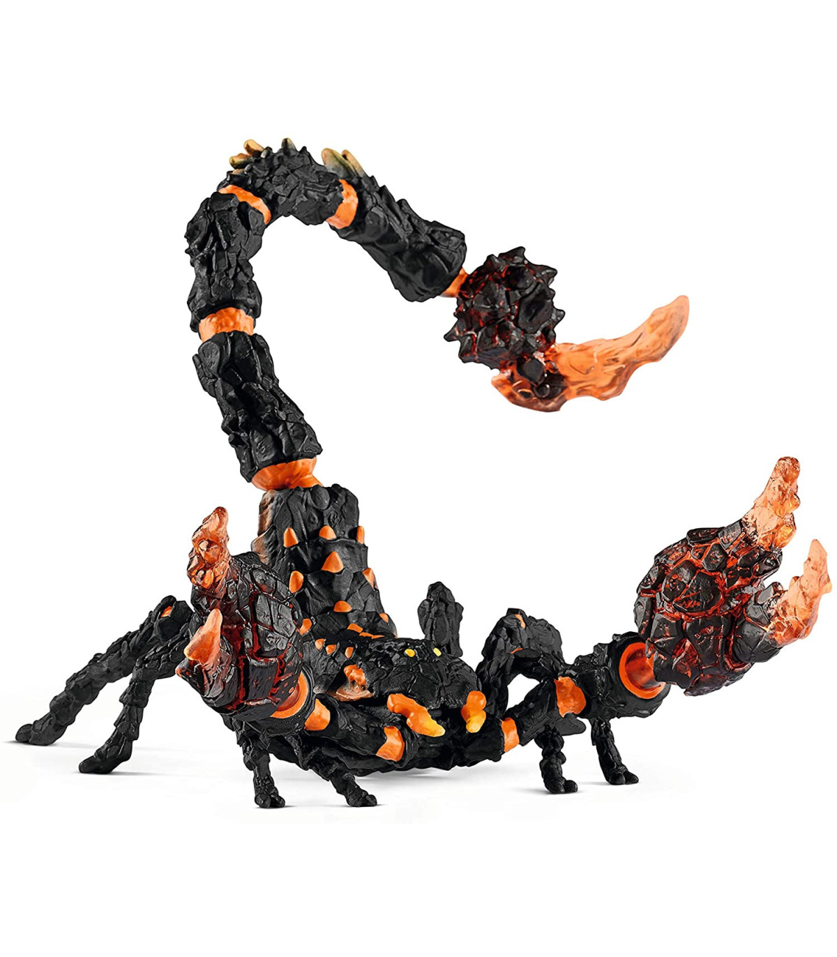 El escorpión de lava acecha bien escondido en las rocas escarpadas del Mundo de Lava y espera a su víctima. Si un adversario se acerca demasiado, ataca con sus pinzas abrasadoras y megafuertes. Quien no se queda quieto, sentirá su ardiente aguijón.