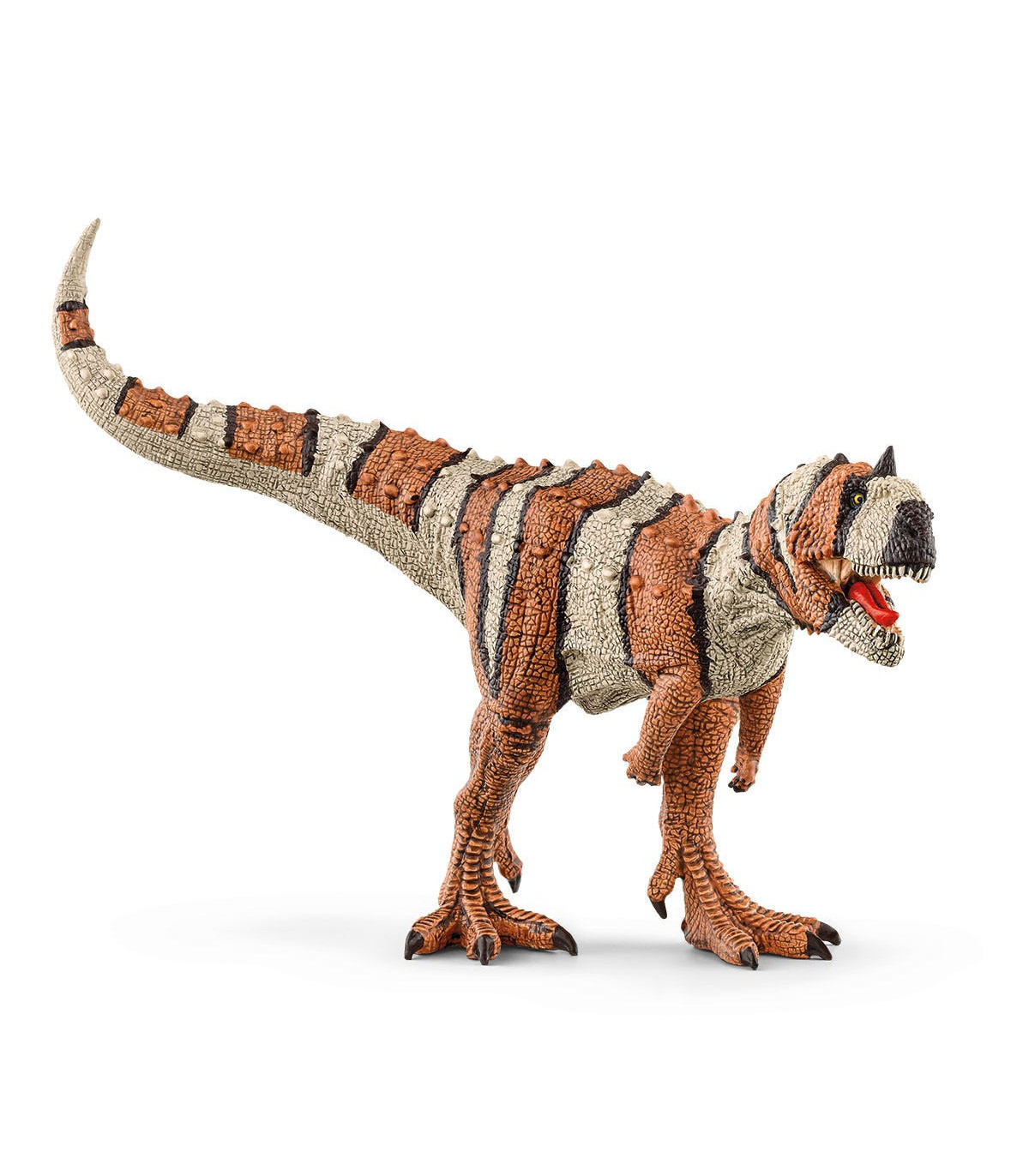 El Majungasaurus de schleich® DINOSAURS es un enorme aficionado a los coches de carreras, aunque uno de los dinosaurios más lentos en los esprints. Esto se debe a que es un dinosaurio muy fuerte, pero no tiene las patas acordes a su estatura. Respecto a la báscula tiene mucho que decir, pues tu amigo prehistórico pesa casi tanto como dos elefantes. Por eso, y debido a sus casi ocho metros de longitud, suele quedar el último en la competición mensual de dinosaurios de juguete. Sin embargo, en cálculo mental es increíblemente rápido. La mayoría de las veces, termina los deberes antes incluso de abrir el libro de matemáticas. De este modo, puede correr a almorzar unos minutos antes y no llegar el último cuando ponen su comida favorita.