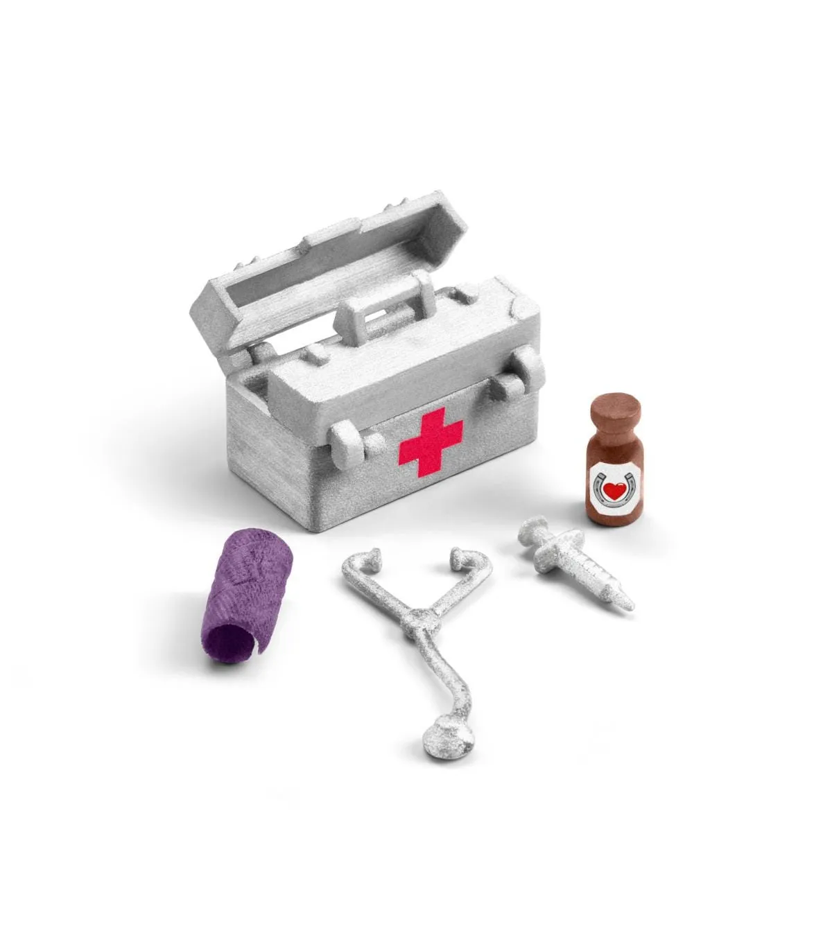 ¡Una farmacia veterinaria es necesaria en cualquier establo! Aquí tienes todo lo que necesita un dueño del establo para los primeros auxilios de sus animales: medicamentos que ayudan contra numerosas enfermedades, un estetoscopio para examinar la respiración de los potrillos y unas vendas muy prácticas para curar las heridas de los cuadrúpedos.