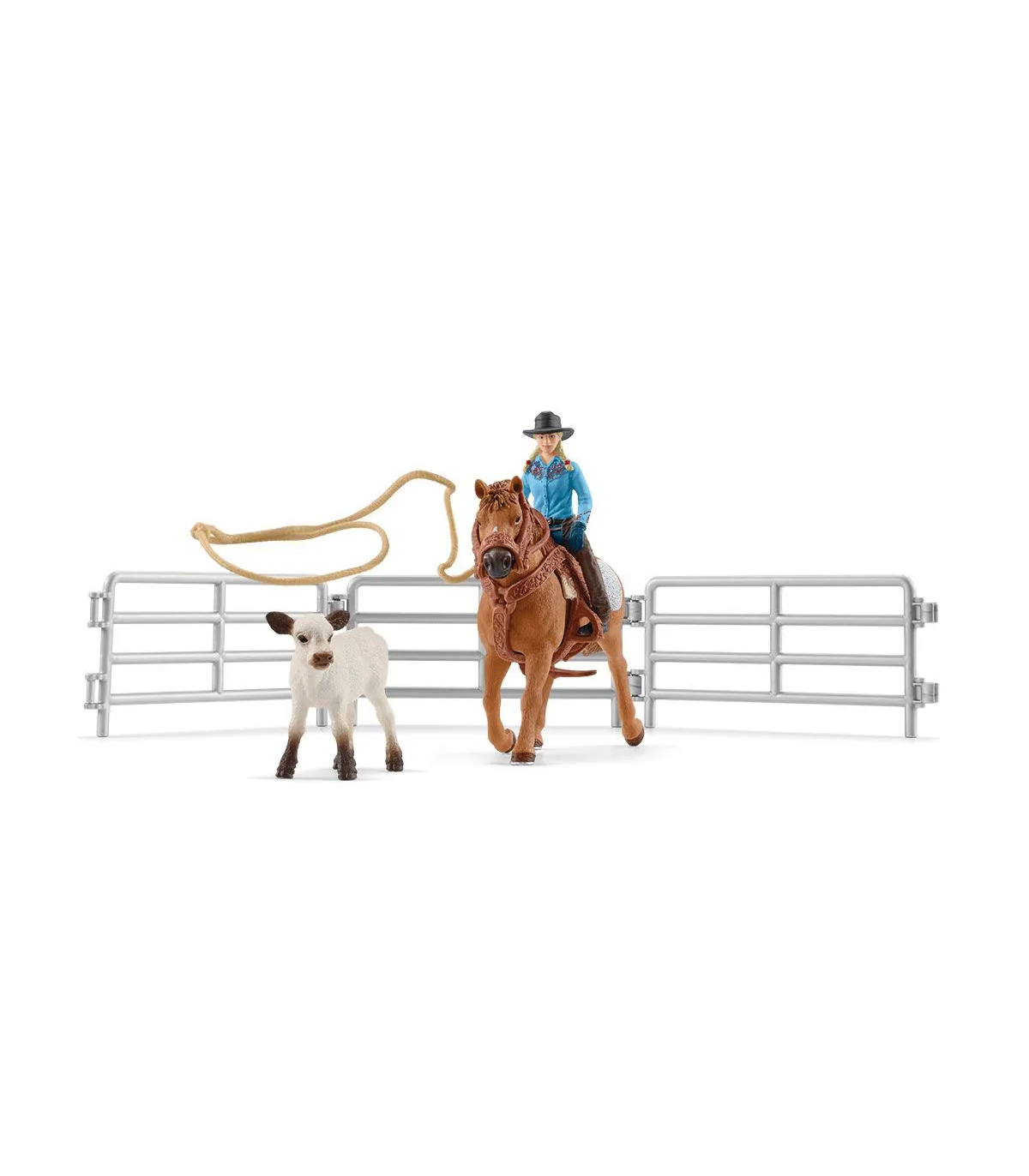 Las vacas también tienen que ir al médico a veces. Y ahí es donde se necesita la ayuda de la Captura con lazo de schleich® FARM WORLD para atrapar a los pacientes. La mejor manera de hacerlo es apuntar con el lazo a las patas traseras o al cuello. Los terneros no se enfadan por eso. Siempre que puedan dormir después en la cama contigo y descansar. Como hace un auténtico vaquero o una auténtica vaquera.
