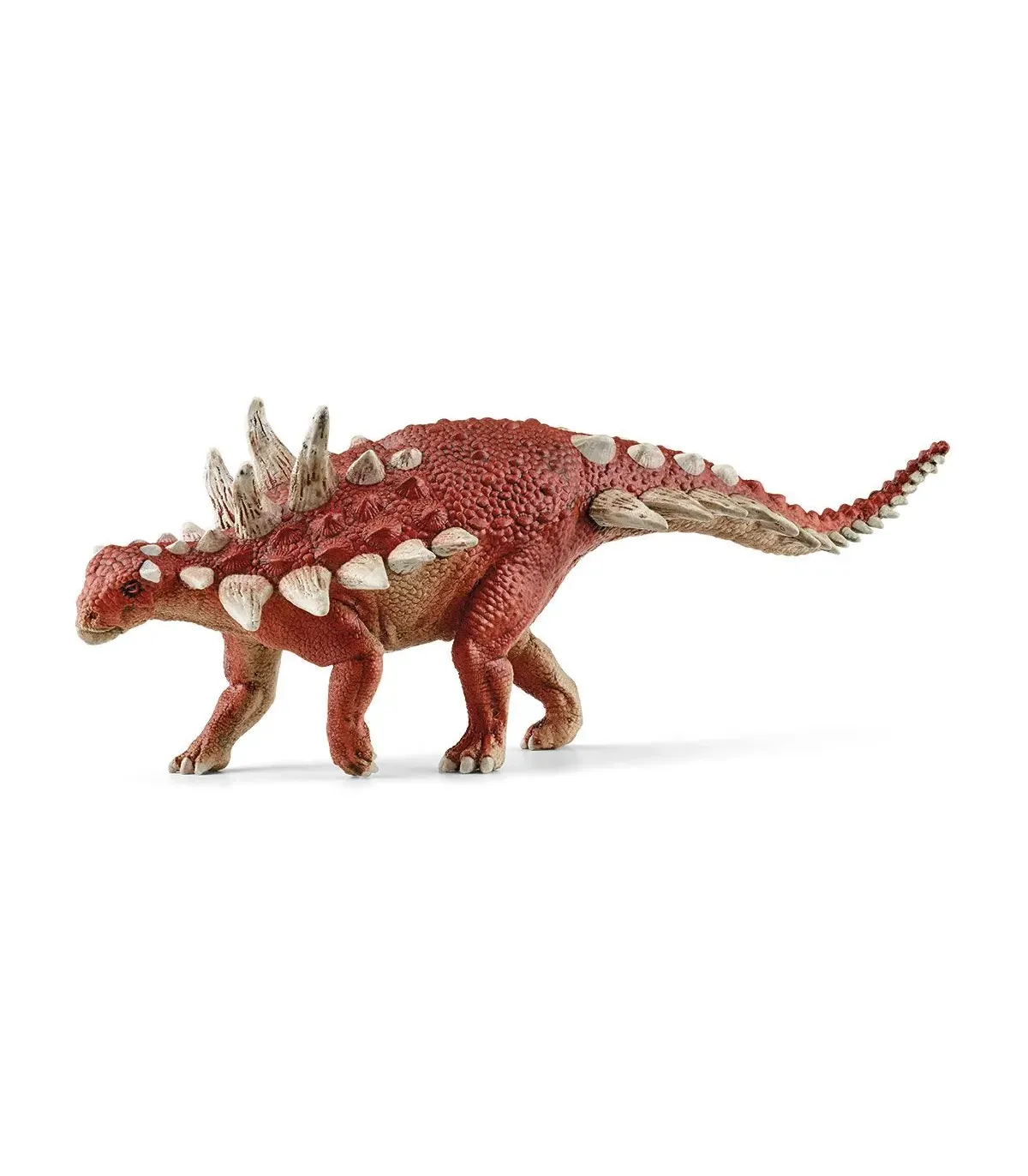 Nadie lo hubiera pensado: el Gastonia es herbívoro y no mata ni una mosca. Y sin embargo, tiene un aspecto muy aterrador con las grandes púas en la espalda y la larga cola. Pero este dinosaurio del grupo de los ornitisquios solo parece peligroso. En lugar de meterse en líos, prefiere recorrer el paisaje con sus robustas patas. Probablemente esté buscando un prado bien verde.