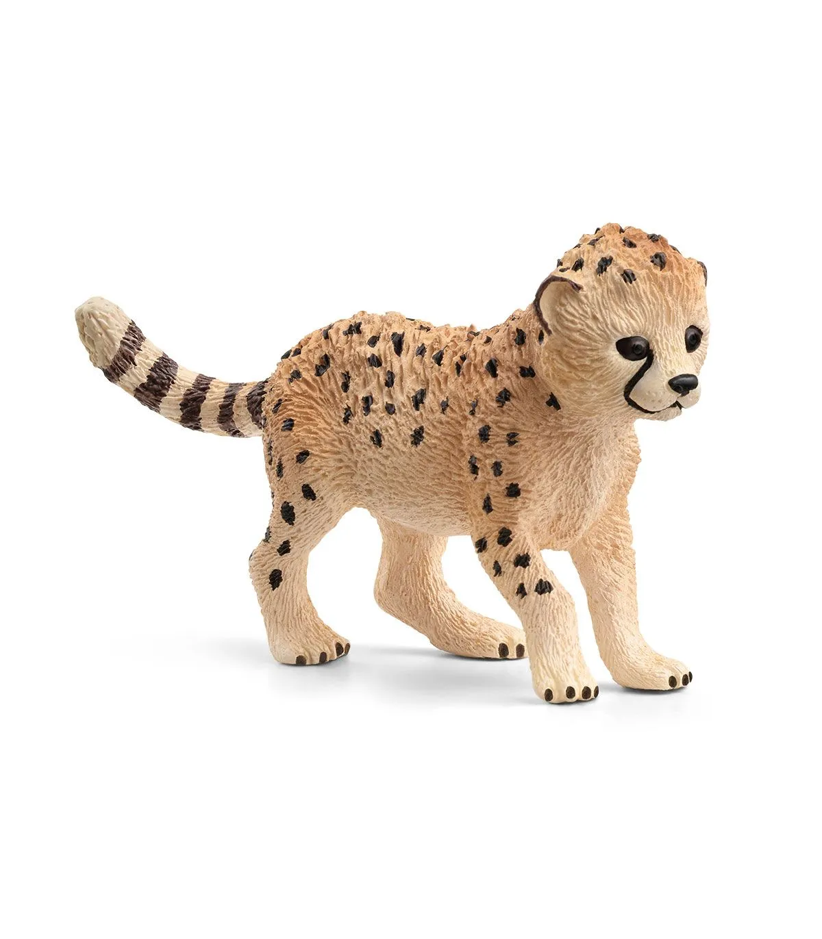 No te preocupes, la Cría de guepardo no está llorando. Las rayas negras en forma de lágrima forman parte del patrón típico de su pelaje, al igual que las manchas oscuras. Así se camufla perfectamente en la sabana africana y puede jugar sin correr peligro. Lo hace con total tranquilidad. ¿Qué habrá descubierto ahora?