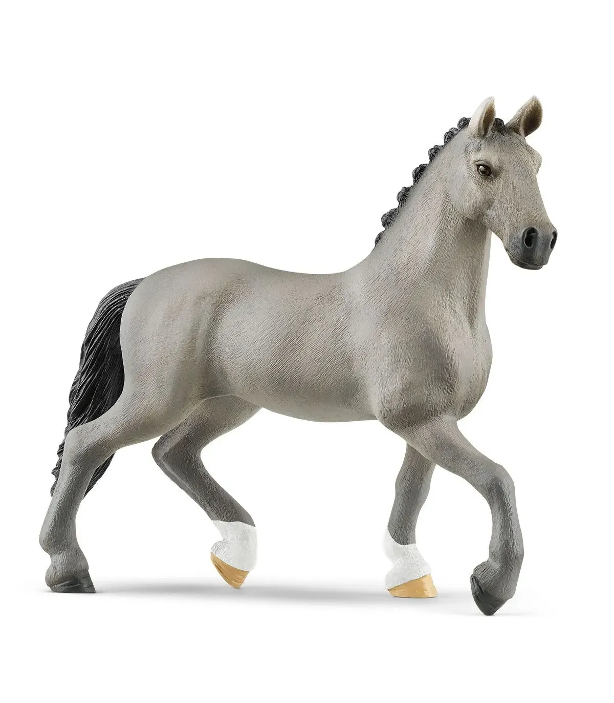 Con ocasión de la competición de salto, luce un elegante peinado de nudos en la crin. El Semental Cheval de Selle Français lleva escrita en la frente la impaciencia: escarba excitado con las pezuñas y empieza a trotar. ¡Que empiece el espectáculo!