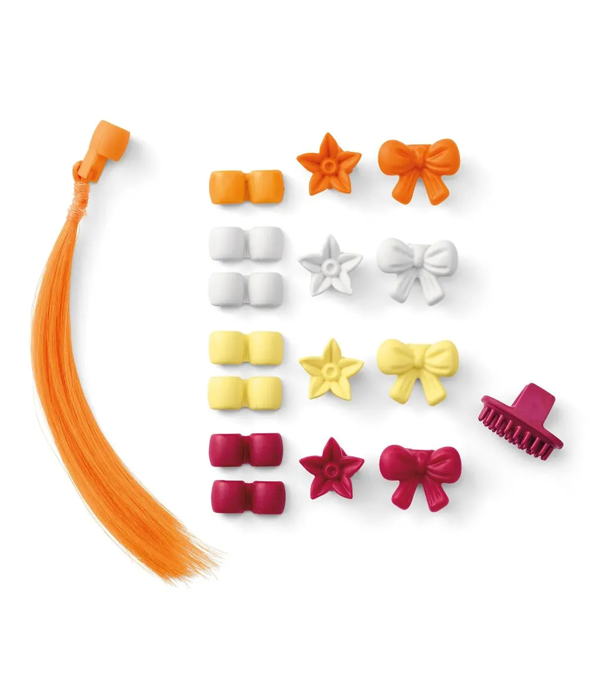 ¡Qué de cosas para elegir! La crin del caballo, que se puede peinar, está esperando a que la adornes con cuentas. ¿O mejor con flores? ¿Con lazos? ¿O con un poco de todo? Se puede elegir entre diferentes colores. ¡Seguro que el caballo gana el próximo concurso de belleza con todos estos adornos!