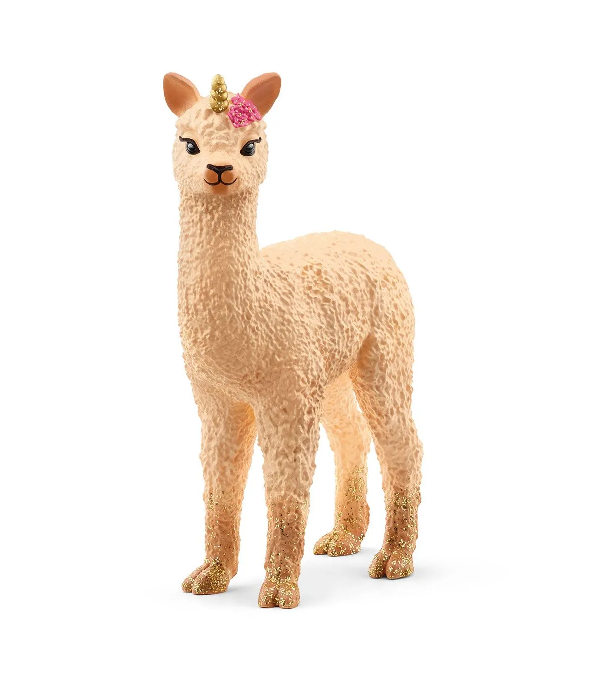 La preciosa Cría de unicornio llama tiene suerte, porque ha nacido en BAYALA®. Allí recorre los coloridos prados de flores con su madre y con otros animales mágicos y vive emocionantes aventuras en el maravilloso mundo de BAYALA®. Le encanta mostrar con orgullo las flores de purpurina de su pelo. ¿A que son bonitas? Tiene purpurina hasta en las pezuñas y en el pelaje de las patas. ¿Dónde habrá estado saltando ahora la Cría de unicornio llama? ¡La purpurina es sencillamente genial!