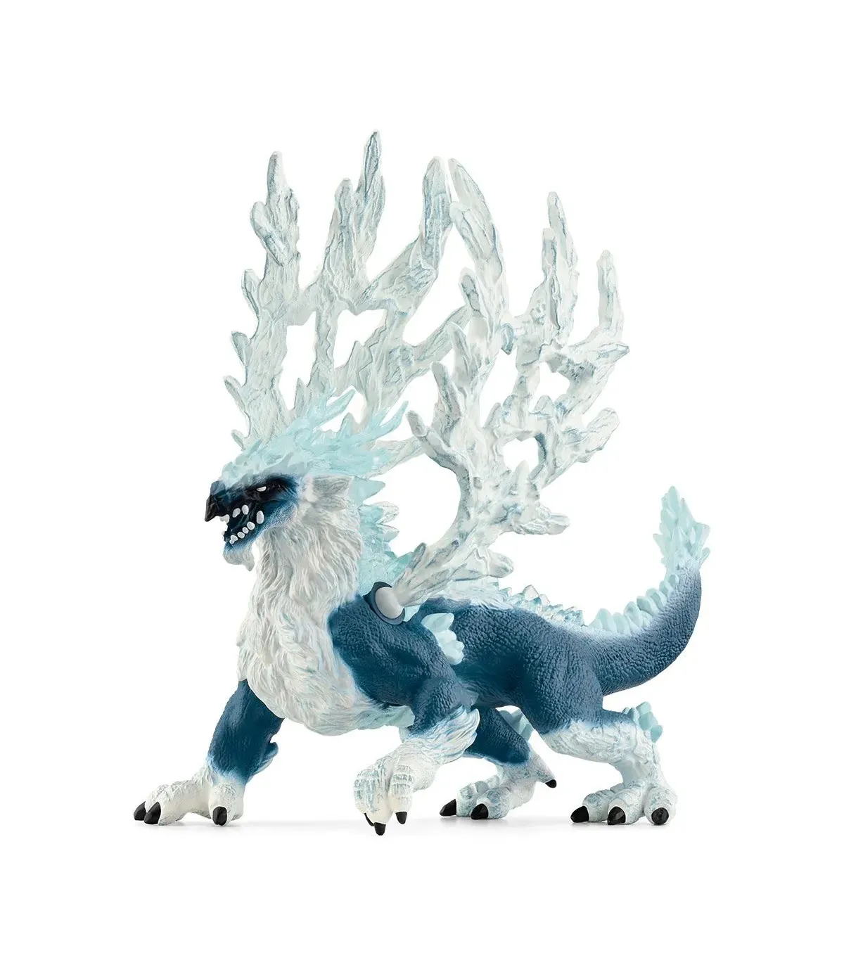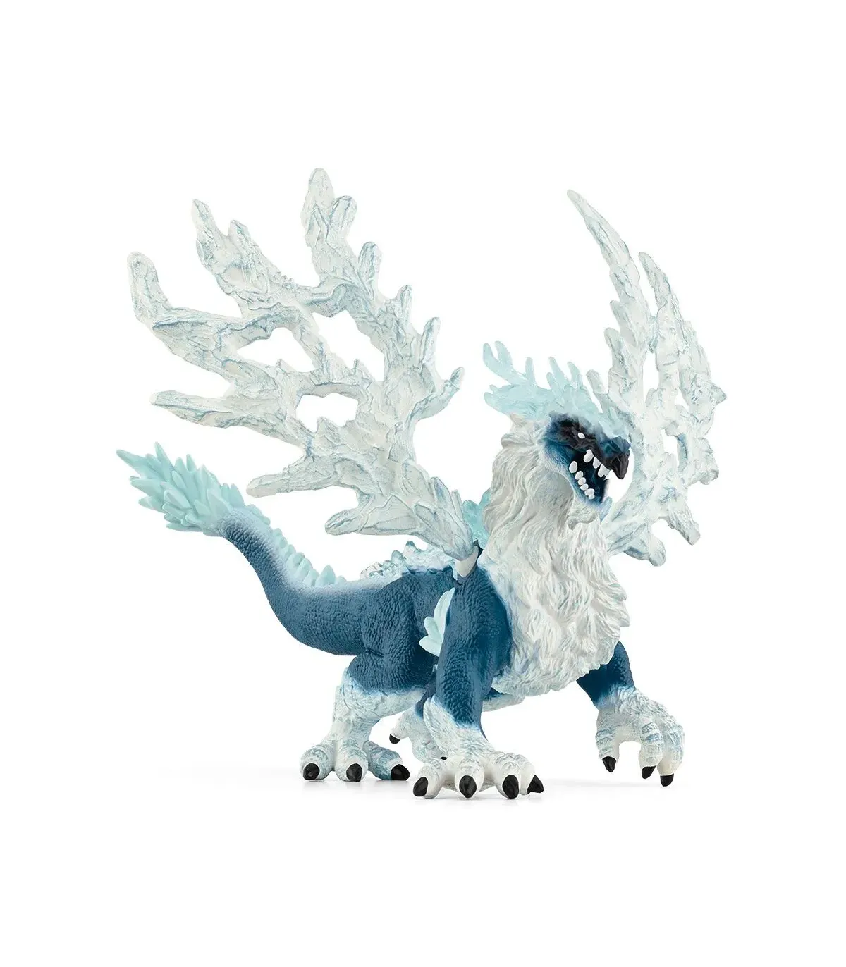 El Dragón de hielo vuela en círculos sobre ELDRADOR®. Ningún movimiento en tierra escapa a su mirada heladora. Descubre un peligro allí abajo y no lo duda: pega al cuerpo sus alas plateadas y se lanza en picado. El atacante en tierra no tiene ni idea de lo que le está pasando. El Dragón de hielo aparece frente a él como salido de la nada y agita su melena plateada. Abre el pico y muestra sus afilados dientes. Marca sus músculos amenazador y escarba profundos surcos en el suelo con sus garras. ¡Se dispone para el combate junto a sus compañeros de lucha, el Monstruo de hielo y el Lobo de nieve! (Figuras disponibles por separado)