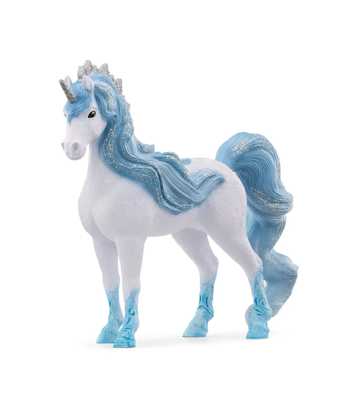Cuando la yegua unicornio Flowy trota por la pradera, todos se dan la vuelta para mirarla. Es una preciosidad. Su voluminosa cola azul suena como una cascada de agua y su frondosa crin de purpurina se derrama elegante por su lomo. Todo recuerda al agua en este magnífico unicornio. A lo mejor por eso esta bonita yegua representa la energía hidráulica. Sea como sea, hace todo lo que puede para conseguir una BAYALA® respetuosa con el clima.