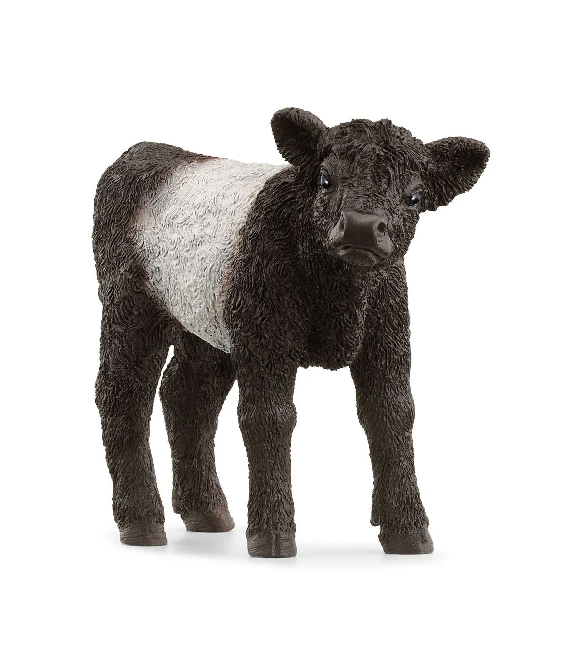 El pequeño ternero Galloway parece un poco perdido cuando estira su negro hocico en el aire. No puede ser que tenga frío, porque los espesos rizos lo mantienen caliente durante todo el año incluso cuando está fuera, en la pradera. A lo mejor tiene hambre. Seguro que quiere beber leche. ¿Dónde estará su madre, la vaca Galloway (disponible por separado)? No puede andar lejos. Debe de estar pastando allí, donde los tallos parecen tan deliciosos. Va al encuentro de su madre tambaleándose aún un poco sobre las patas. ¡Le encanta estar cerca de ella!