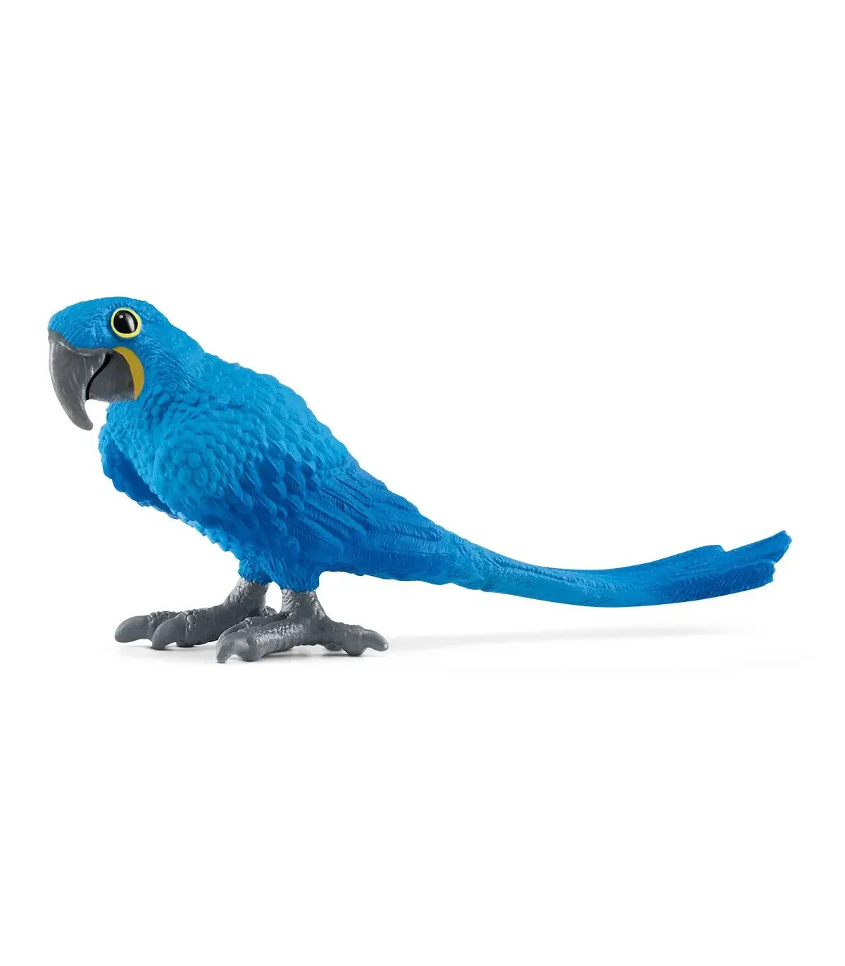 Se agarra a la corteza de los árboles con gran habilidad. Con sus poderosas garras y la ayuda de su pico, trepa en un periquete por el tronco de los árboles. Vaya, ¿adónde irá? ¡Ah, ha visto unas deliciosas nueces! Las nueces le encantan. El precioso guacamayo jacinto tiene un plumaje azul brillante. Alrededor del pico y de los ojos tiene una piel amarilla que crea un bonito contraste con el plumaje.