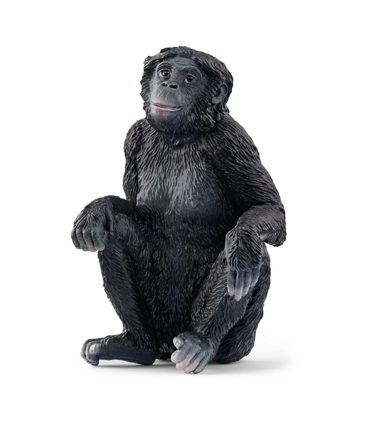 ¿Será ya la hora de su almuerzo? Está sentado sin hacer nada con las manos sobre las rodillas. A lo mejor es que echa de menos a sus compañeros de juego. Porque los bonobos son muy sociables y no les gusta estar solos. Al bonobo hembra le encanta pasar tiempo con su familia y, por supuesto, con sus amigos. ¿Dónde se habrán metido todos? Podrías hacerle compañía tú.