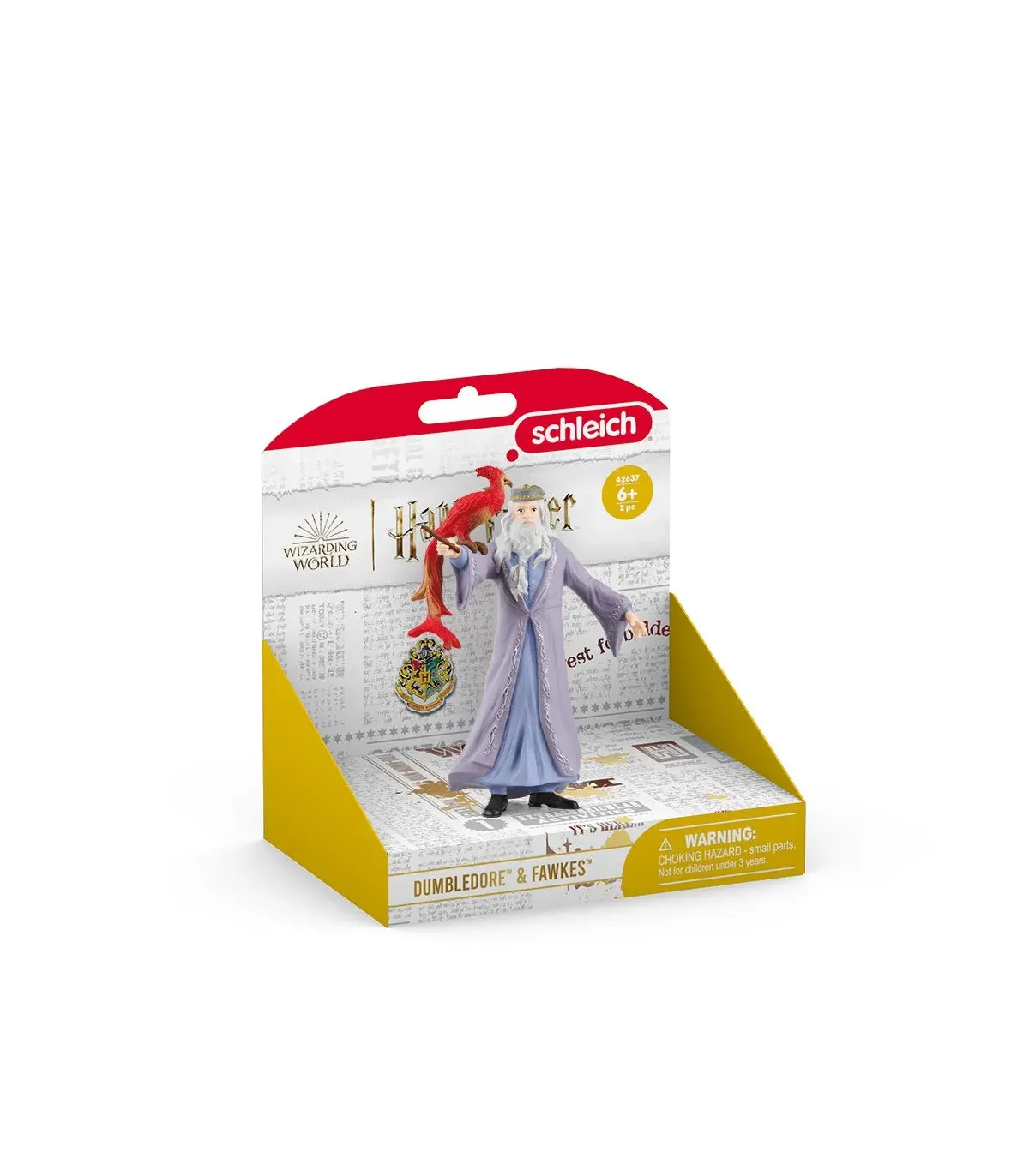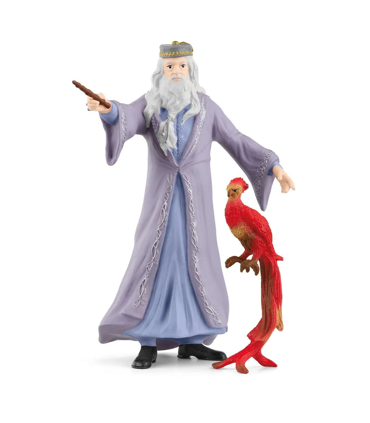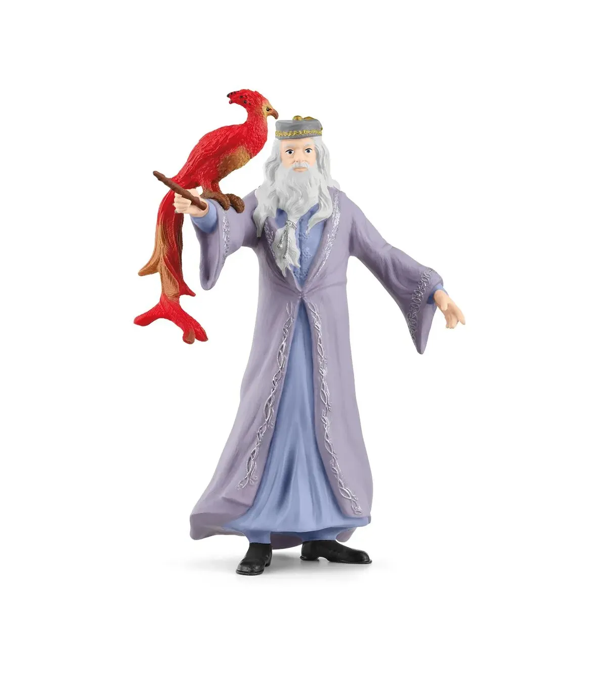 Albus Dumbledore™ lleva un gorro encima de su larga melena blanca. Como antiguo y sabio director de Hogwarts, Dumbledore™ va vestido con una túnica que tiene unos adornos magníficos y sostiene firmemente su varita mágica en la mano. Siempre está a su lado Fawkes™, su inteligente y fiel ave fénix.
