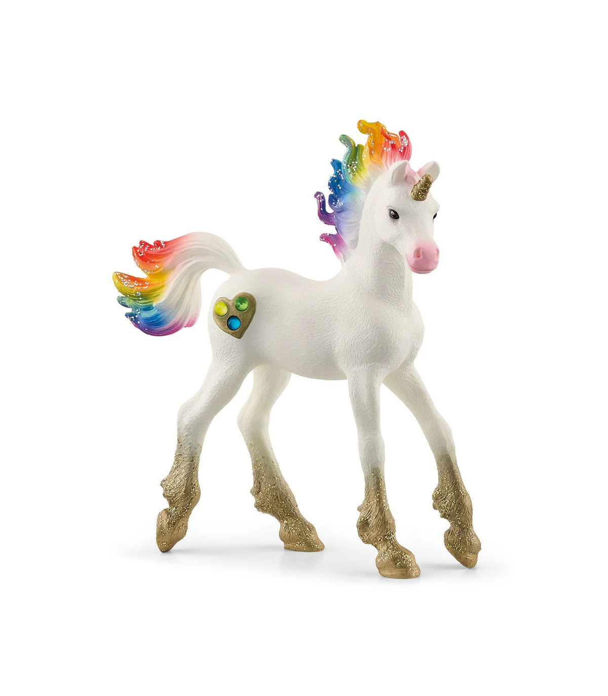 ¡Yuuuuuujuuuuu! No hay nada que le guste más al potro de Unicornio arcoíris del universo BAYALA® de schleich® que dejar que sus coloridas crines ondeen con el viento al tirarse por el tobogán. Con su cola de colores, este caballo mágico puede teñirlo todo, ya sea en el bosque o en las nubes. El resto de habitantes del mundo BAYALA® de schleich® admiran la maravillosa marcha que el poni tiene aun siento tan joven. Y las historias que ya ha vivido. No obstante, esto hace dudar a algunos sobre la realidad de todas estas historias. ¿Habrá montado de verdad alguna vez al dragón arcoíris?