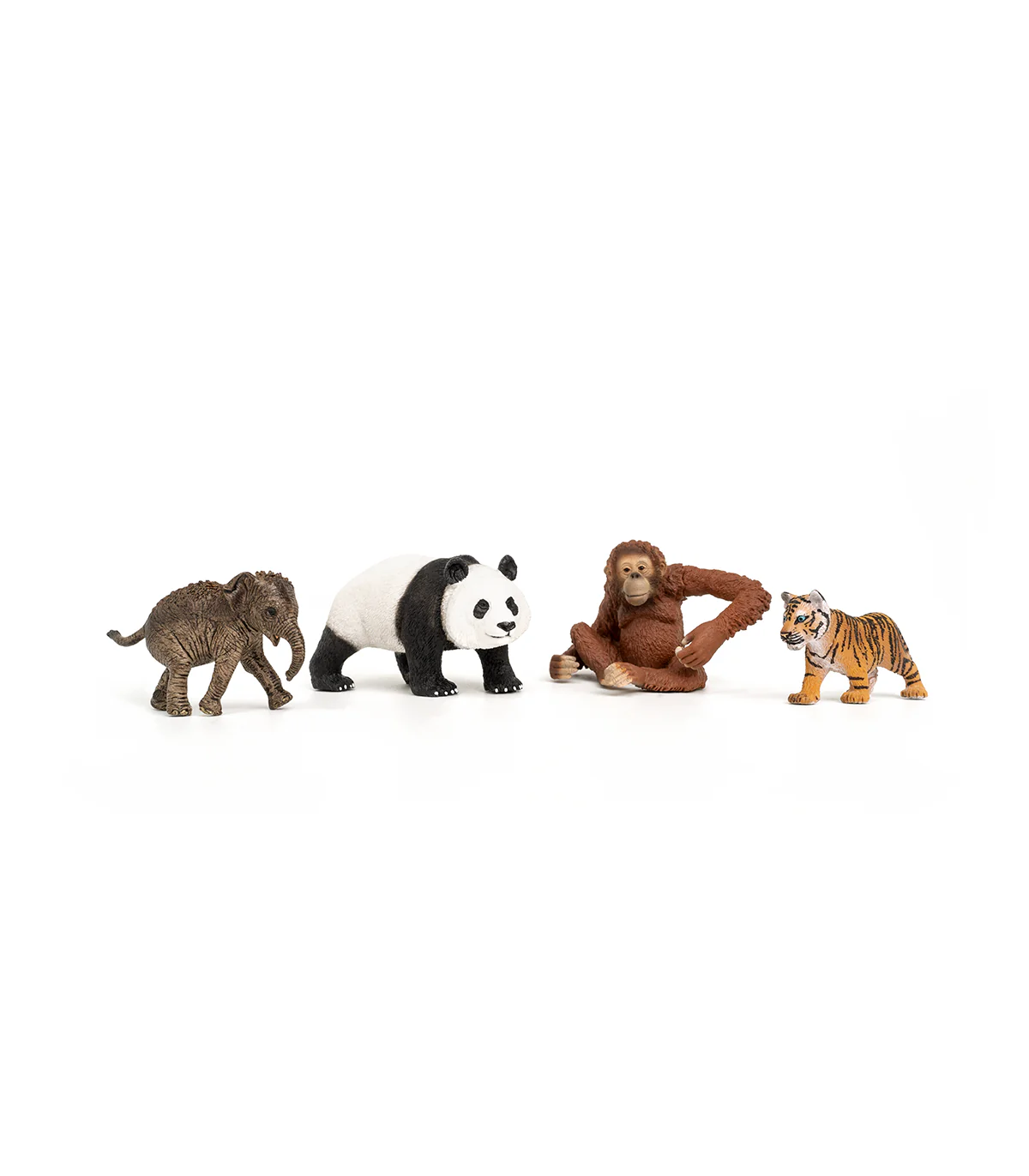 1x cebra, 1x león, 1x cría de elefante africano, 1x cachorro de chimpancé