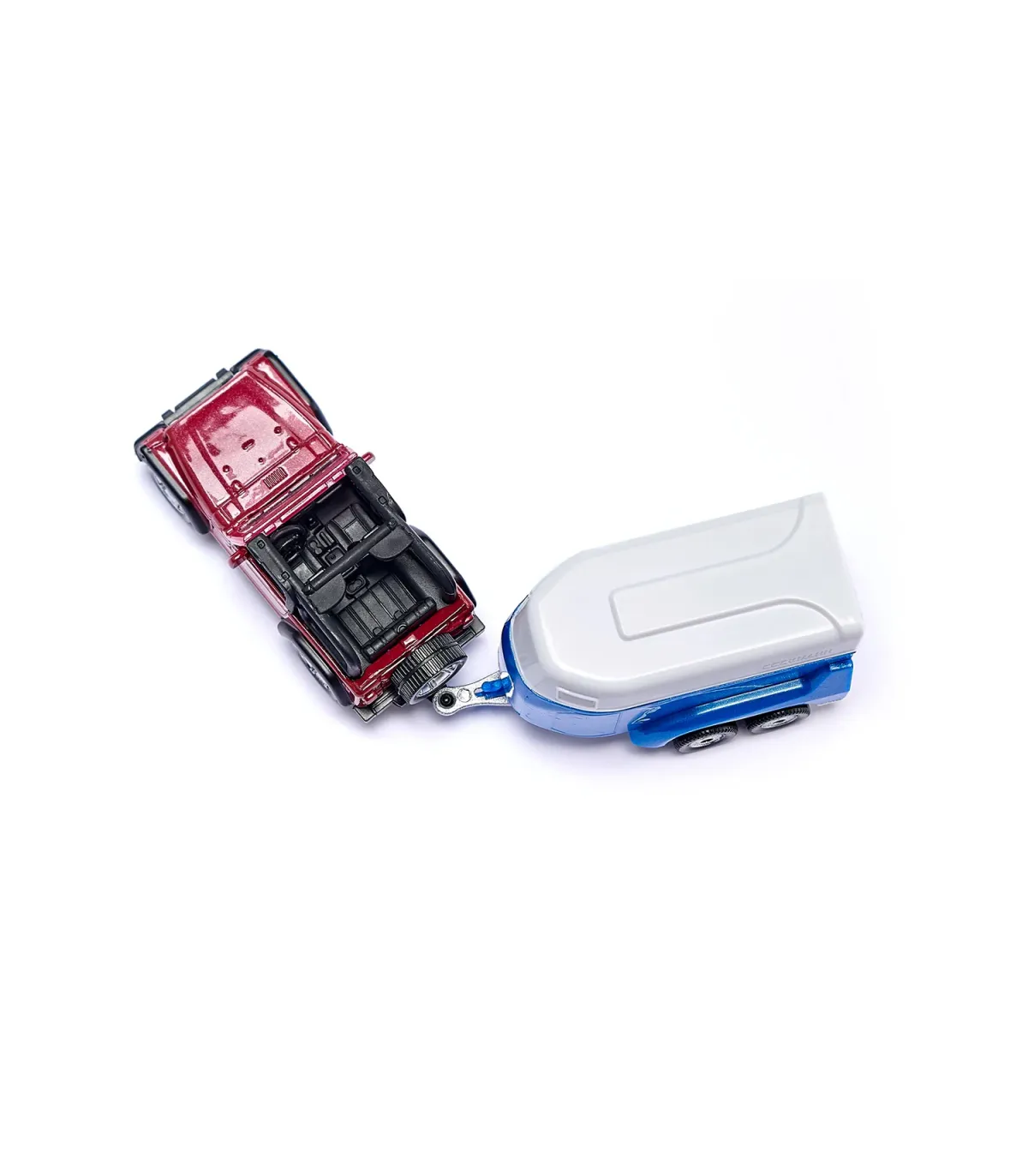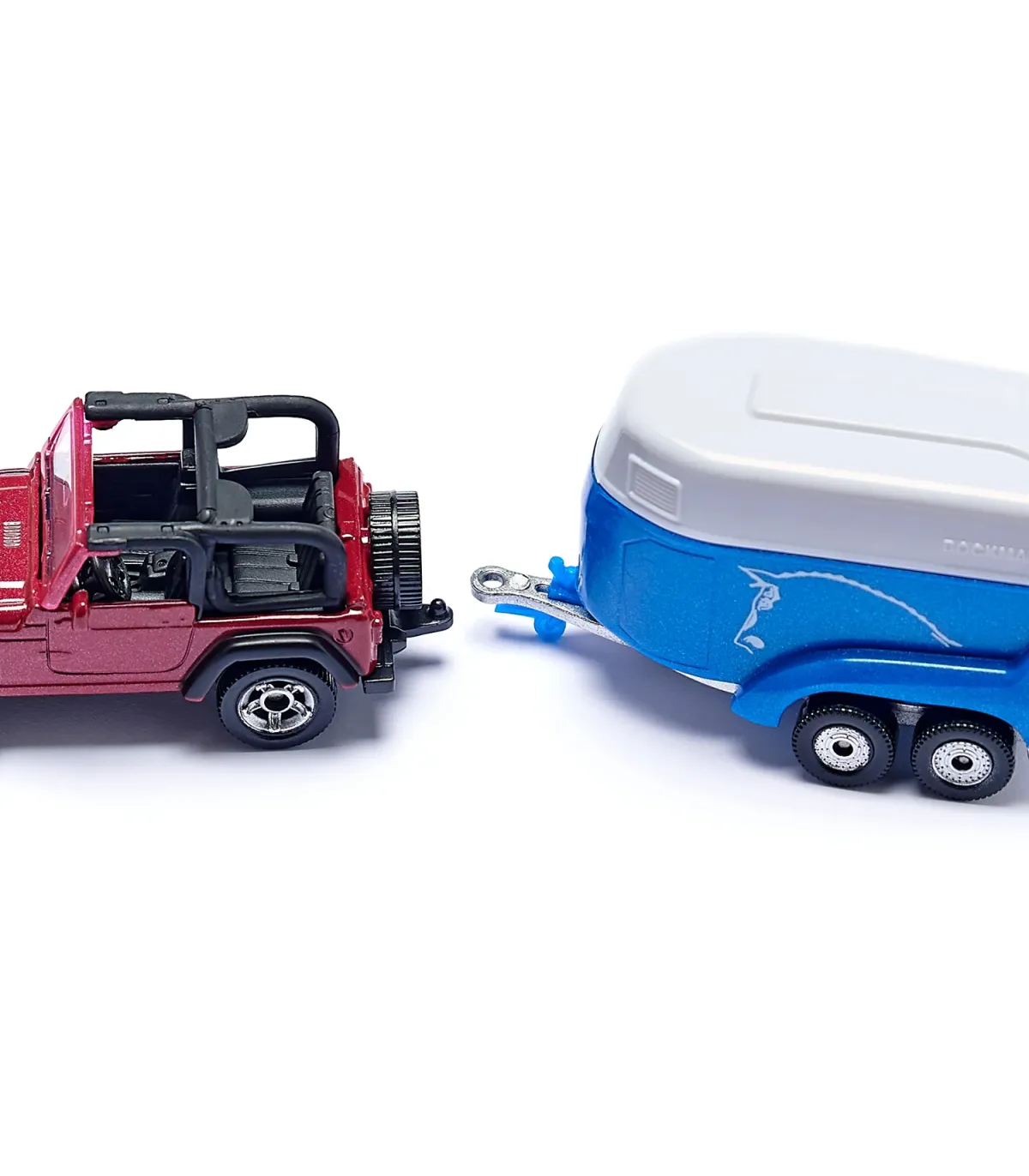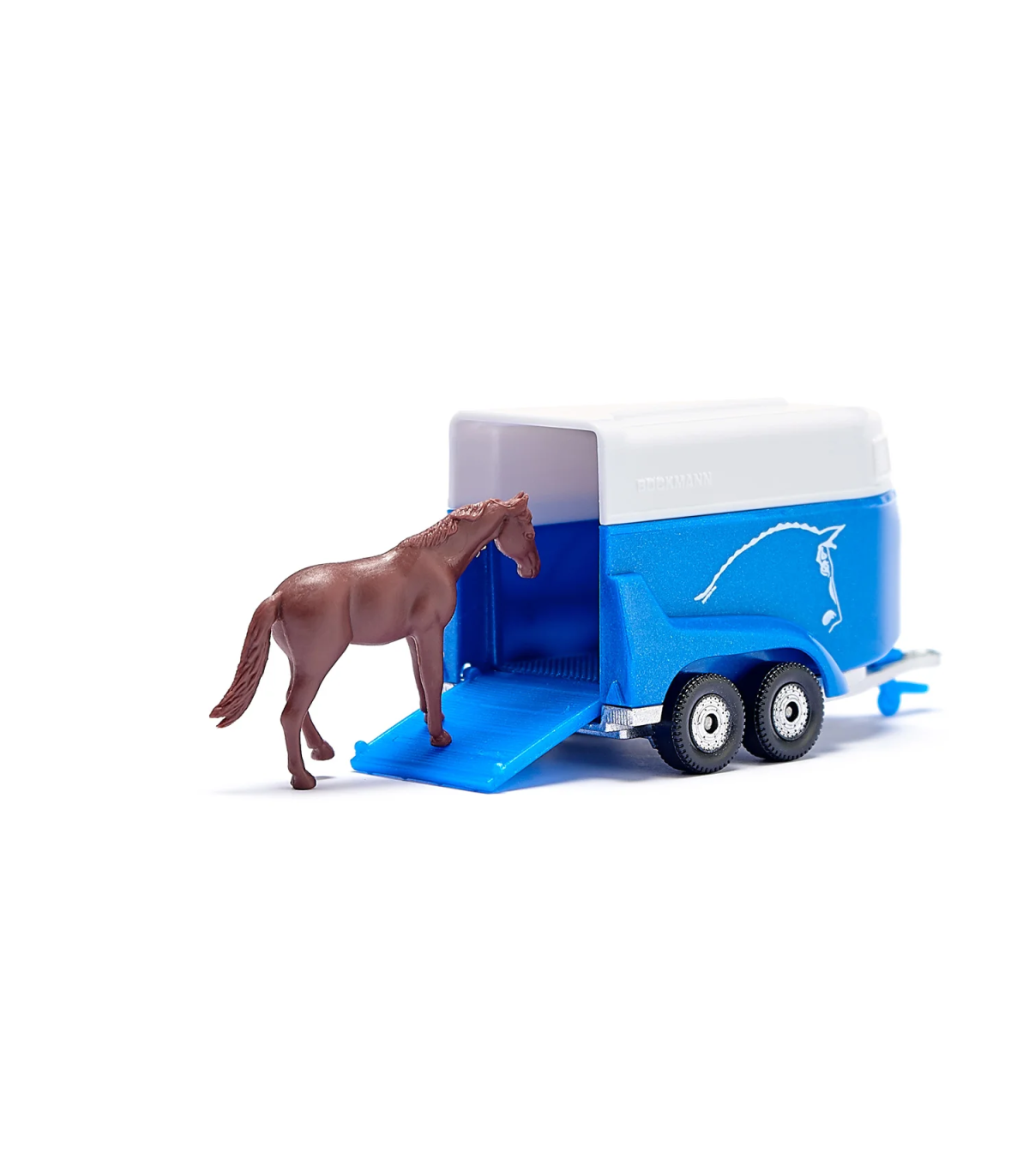 El Jeep Wrangler con remolque para caballos Böckmann es la combinación clásica para dejar que los caballos se salgan de los caminos trillados. Tanto la carrocería del Jeep como el chasis del remolque para caballos están fabricados en metal. La trampilla de carga del remolque se puede abrir. En el paquete se incluye un caballo como accesorio.