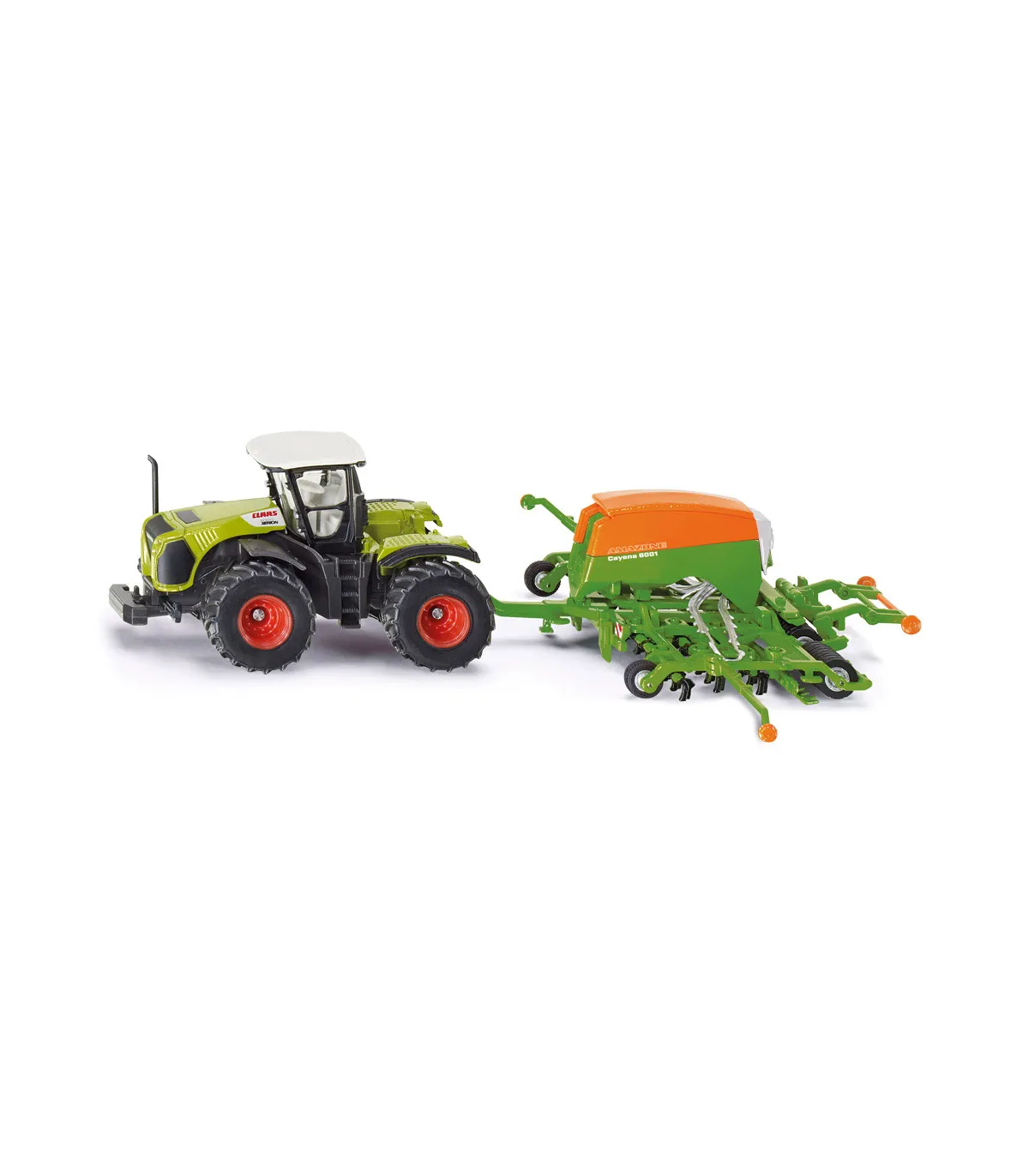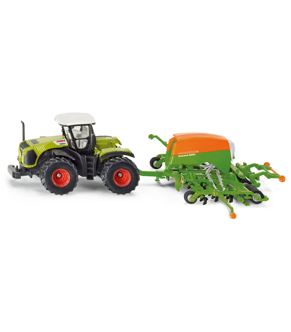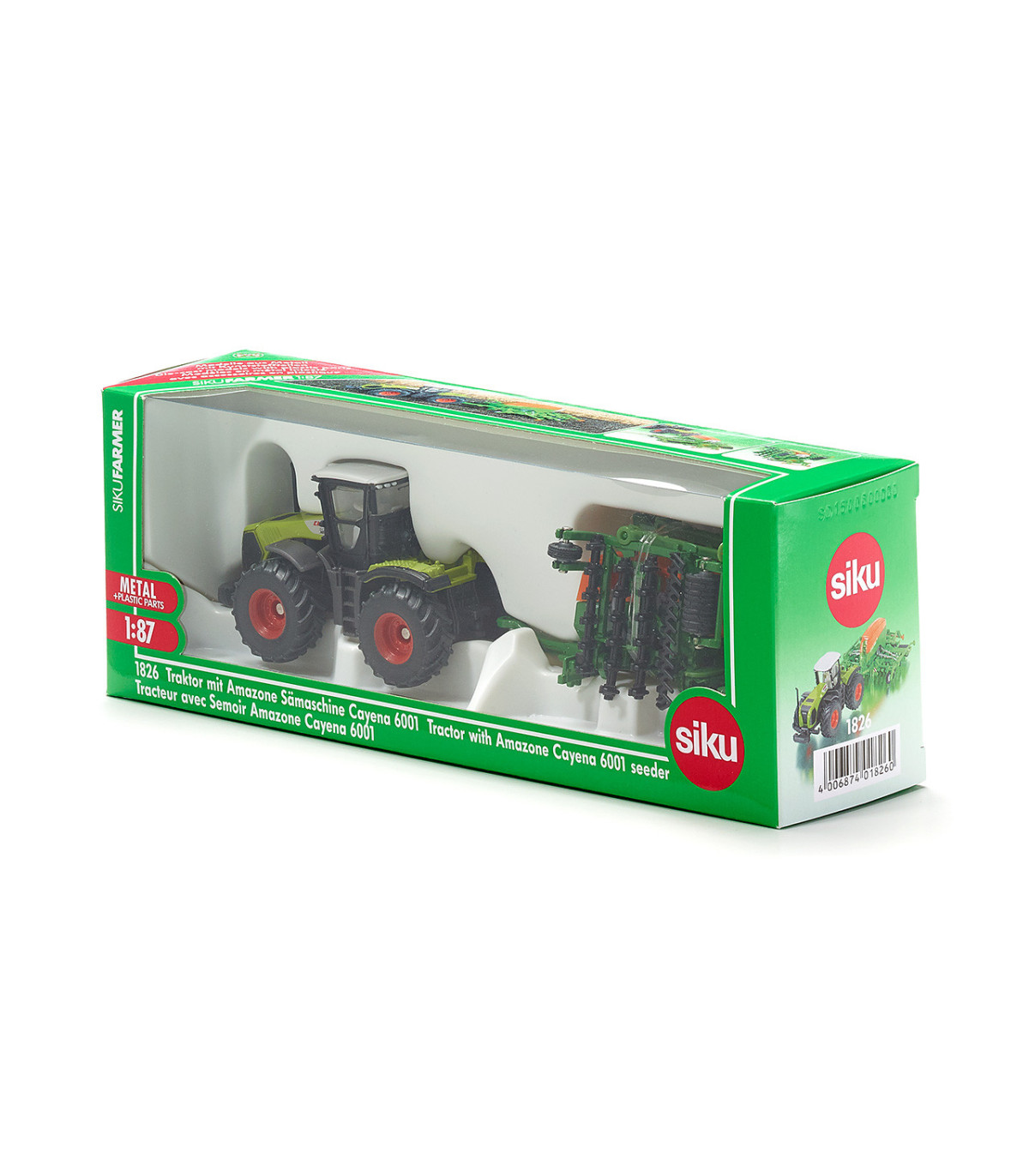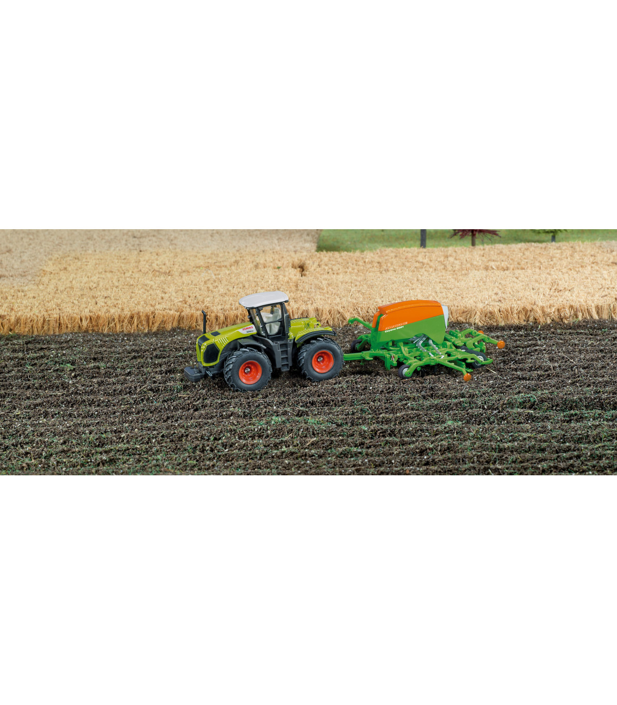 Este equipo de especialistas ha conquistado desde hace tiempo un lugar en la agricultura a gran escala: con el Claas Xerion y la potente sembradora Amazone Cayenna 6001, el equipo de impulso agrícola está completo en una escala de filigrana de 1:87. Al igual que en el modelo más grande, los cuerpos de siembra para el trabajo en el campo se pueden bajar a izquierda y derecha, como en el modelo original. Además, la tapa de llenado de la sembradora está diseñada para abrirse. Gracias a su revestimiento de goma, los neumáticos del equipo tienen una impresión auténtica del día a día. Tanto el tractor con sistema Claas como el Amazone Cayenna 6001 deleitan a la vista por sus colores típicos de la marca y su llamativo diseño.