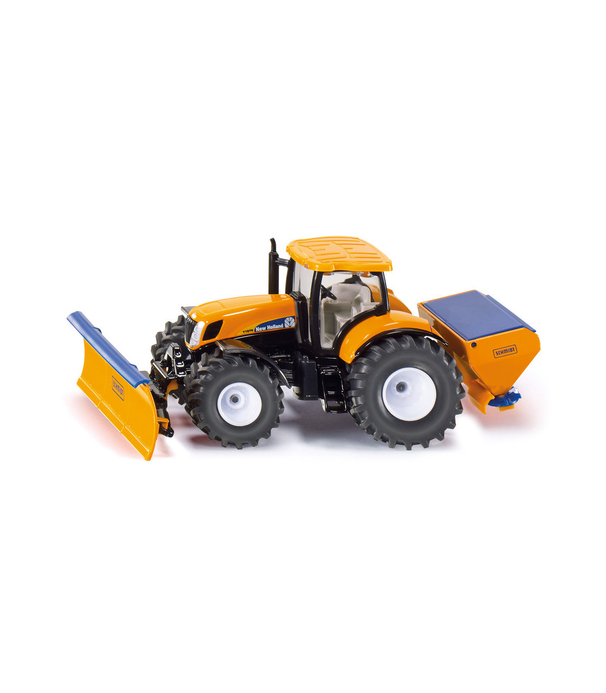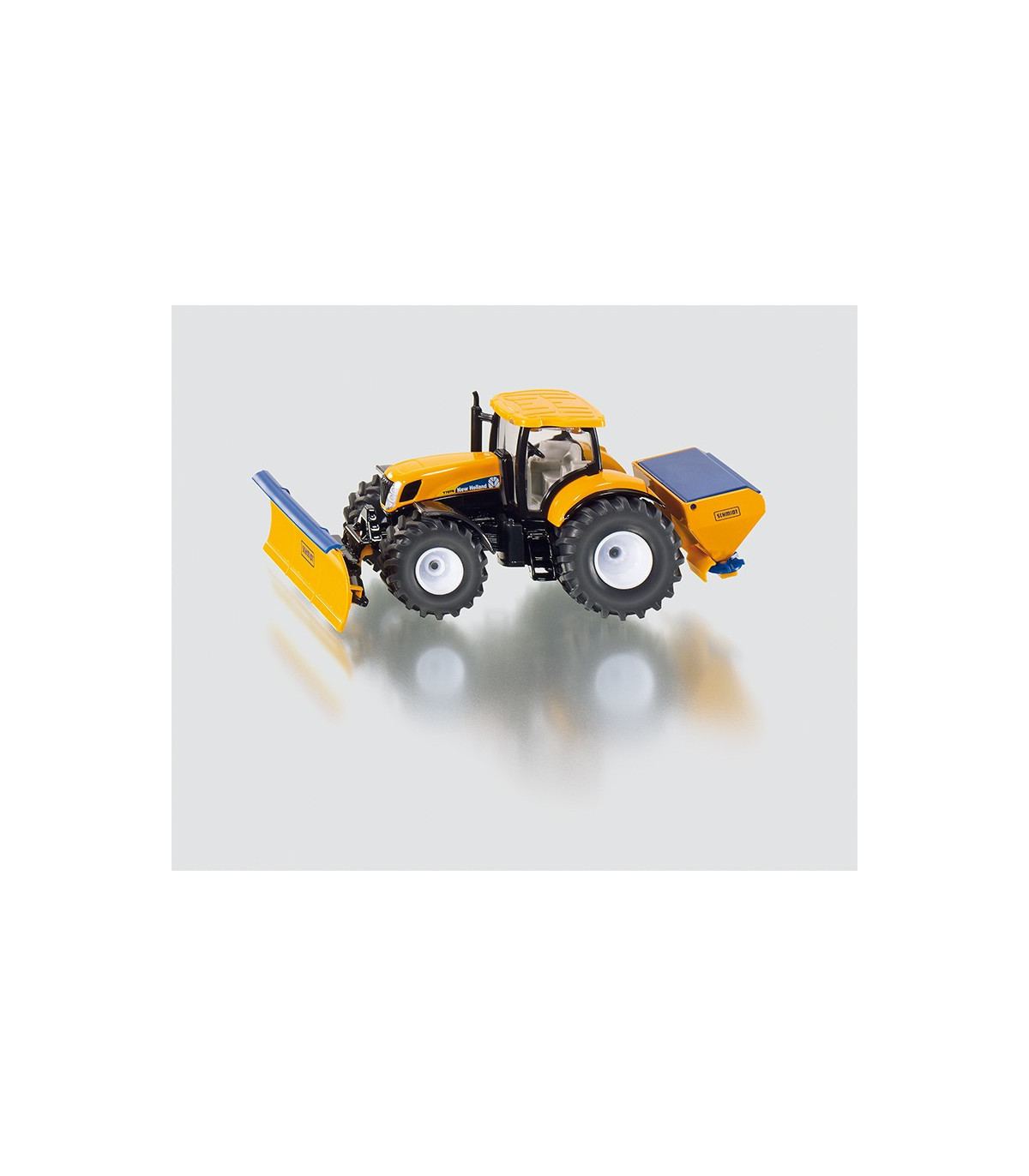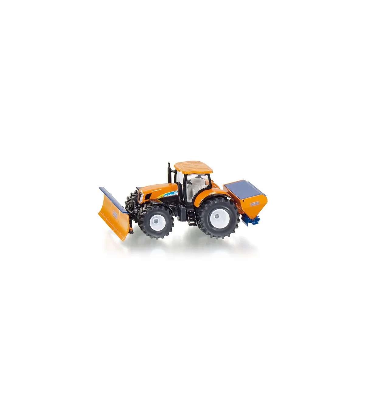 Este tractor de New Holland ya se ha hecho un buen nombre en el uso municipal. Para adaptarse a la temporada, siku equipa el tractor a escala 1:50 para el servicio invernal. Diseñado en un llamativo color naranja municipal y con un aspecto de la marca New Holland, este tractor municipal viene con funciones de juego de bienvenida. Naturalmente, la cuchilla limpiadora se puede mover de diversas formas; el dispositivo esparcidor trasero se puede abrir hacia arriba para cargar la arena. Ambos accesorios de servicio de invierno están diseñados para ser extraíbles. Lo mismo se aplica a la cabina detallada. El tractor municipal se puede utilizar en una escala compatible con todos los modelos 1:50 de las series SIKUFARMER y SIKUSUPER.