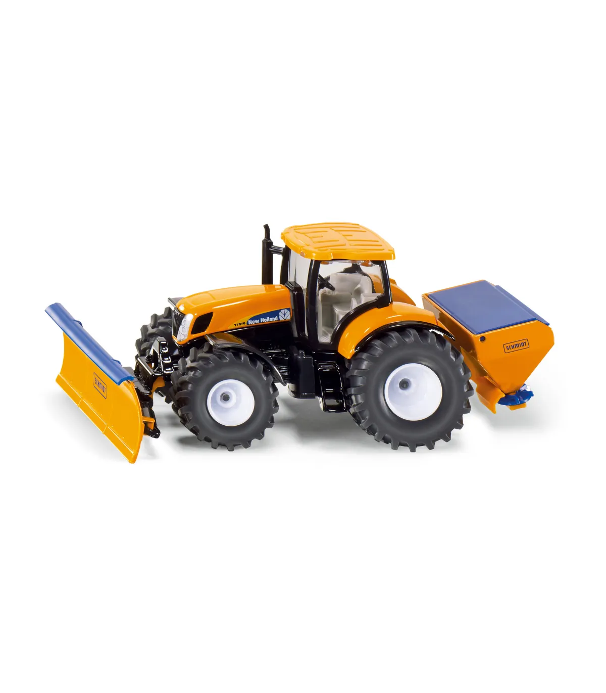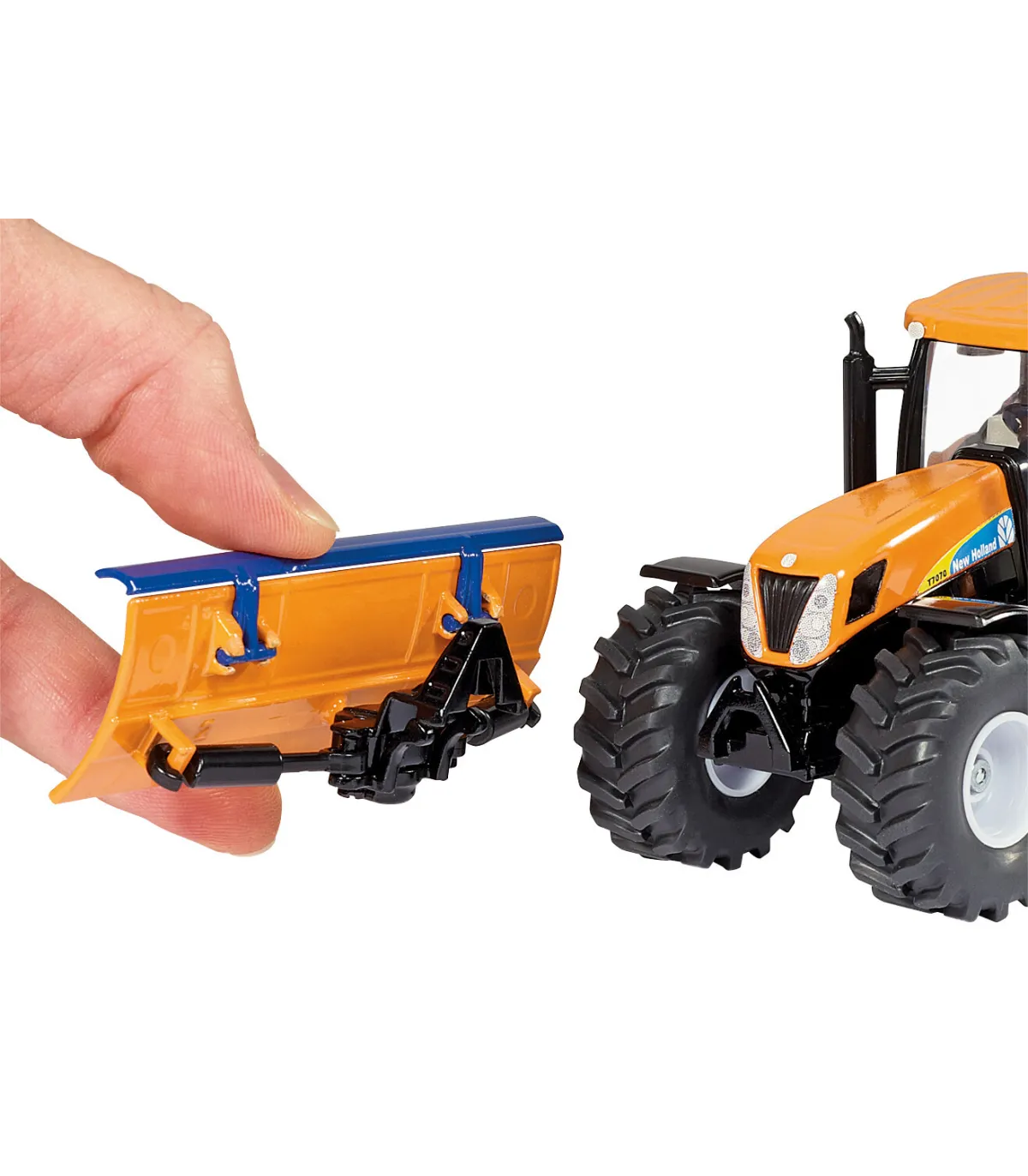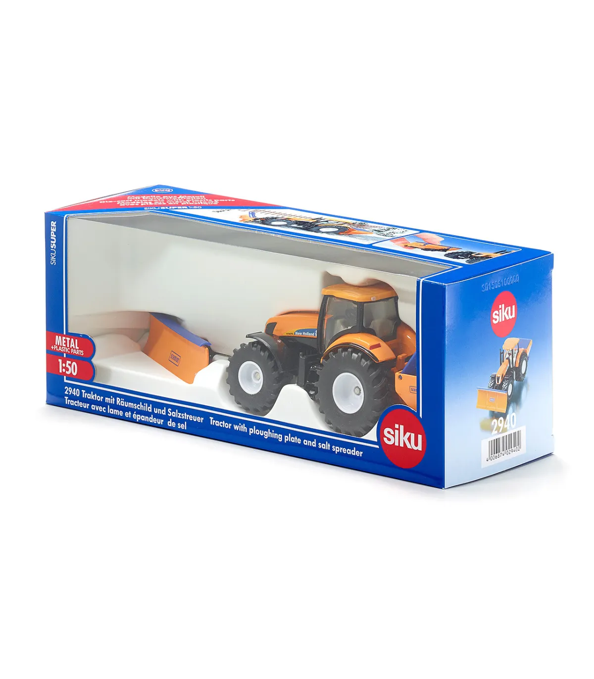 Este tractor de New Holland ya se ha hecho un buen nombre en el uso municipal. Para adaptarse a la temporada, siku equipa el tractor a escala 1:50 para el servicio invernal. Diseñado en un llamativo color naranja municipal y con un aspecto de la marca New Holland, este tractor municipal viene con funciones de juego de bienvenida. Naturalmente, la cuchilla limpiadora se puede mover de diversas formas; el dispositivo esparcidor trasero se puede abrir hacia arriba para cargar la arena. Ambos accesorios de servicio de invierno están diseñados para ser extraíbles. Lo mismo se aplica a la cabina detallada. El tractor municipal se puede utilizar en una escala compatible con todos los modelos 1:50 de las series SIKUFARMER y SIKUSUPER.