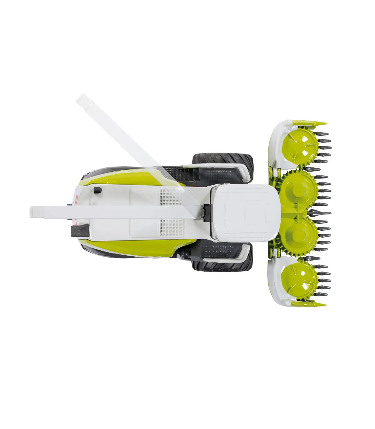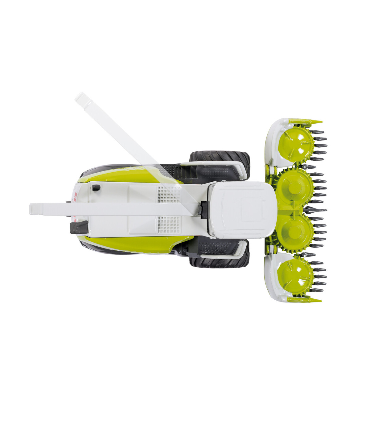 La nueva trituradora insignia de Claas impresiona por su aspecto, con muchos detalles y funciones, incluso en una escala reducida de 1:50. El cabezal de maíz se puede plegar o quitar según sea necesario. El habitáculo con equipamiento Claas se muestra con gran detalle.