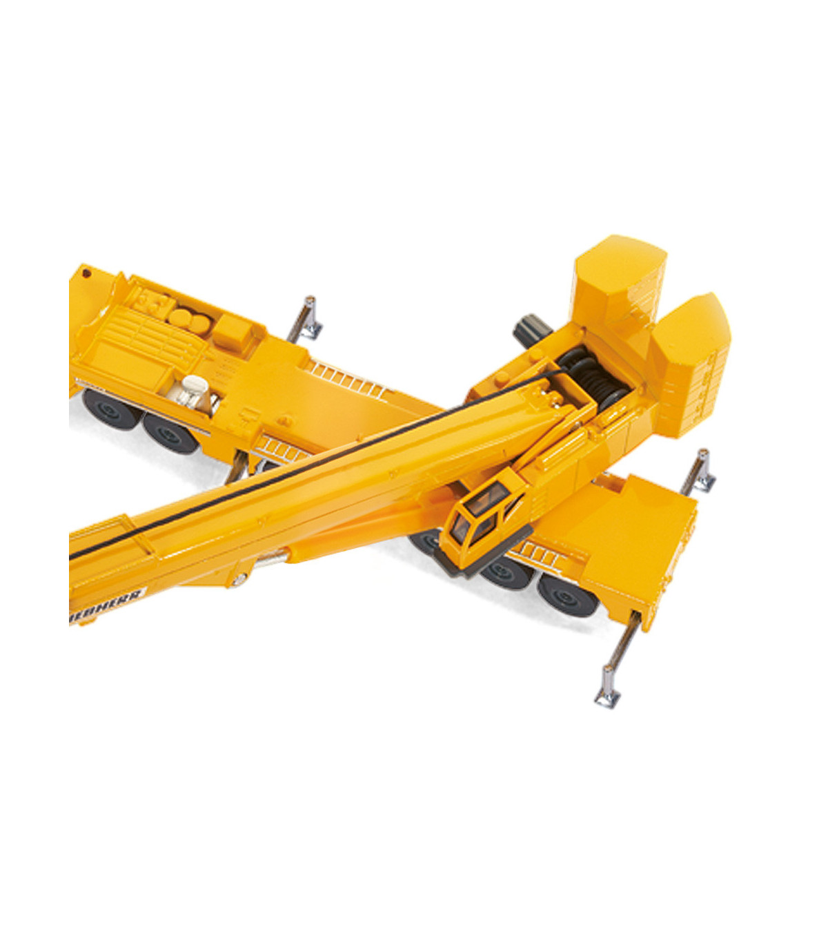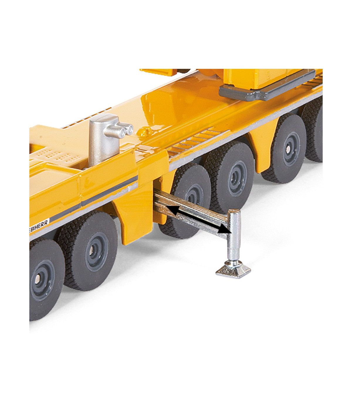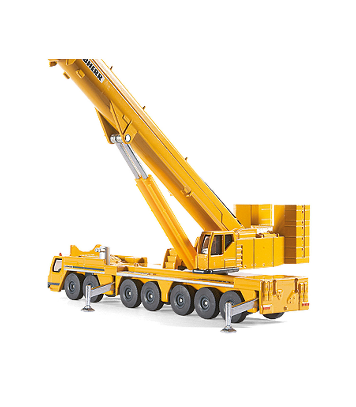 Entre los modelos de obra a escala 1:87 destaca la nueva grúa móvil de Liebherr. El modelo, fabricado casi en su totalidad de metal, rueda sobre un chasis de 7 ejes con neumáticos de material engomado. La góndola se puede girar 360°. El brazo de la grúa se puede subir y bajar y es fácilmente telescópico. Los 4 soportes son de metal y se pueden ampliar cuando sea necesario.