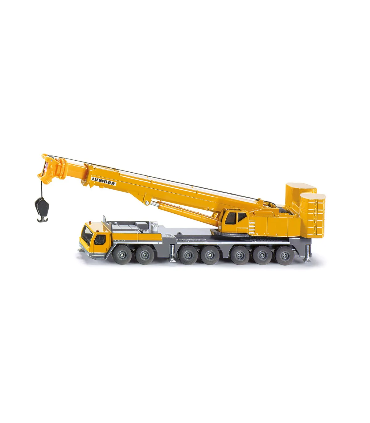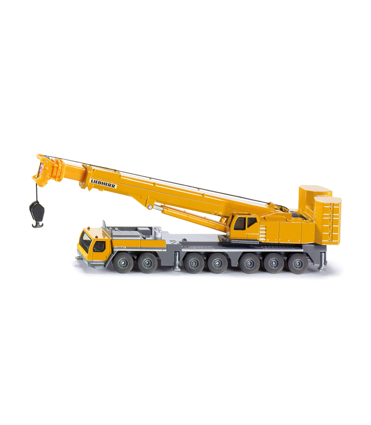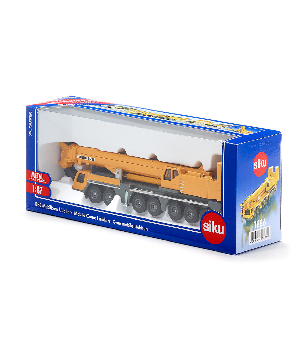Entre los modelos de obra a escala 1:87 destaca la nueva grúa móvil de Liebherr. El modelo, fabricado casi en su totalidad de metal, rueda sobre un chasis de 7 ejes con neumáticos de material engomado. La góndola se puede girar 360°. El brazo de la grúa se puede subir y bajar y es fácilmente telescópico. Los 4 soportes son de metal y se pueden ampliar cuando sea necesario.