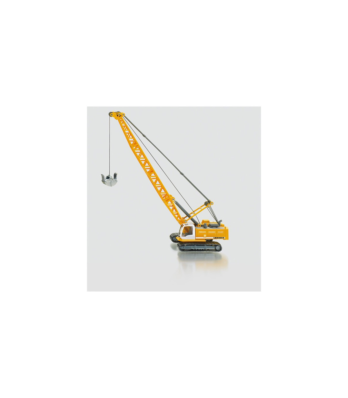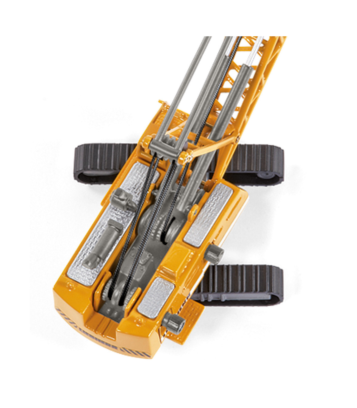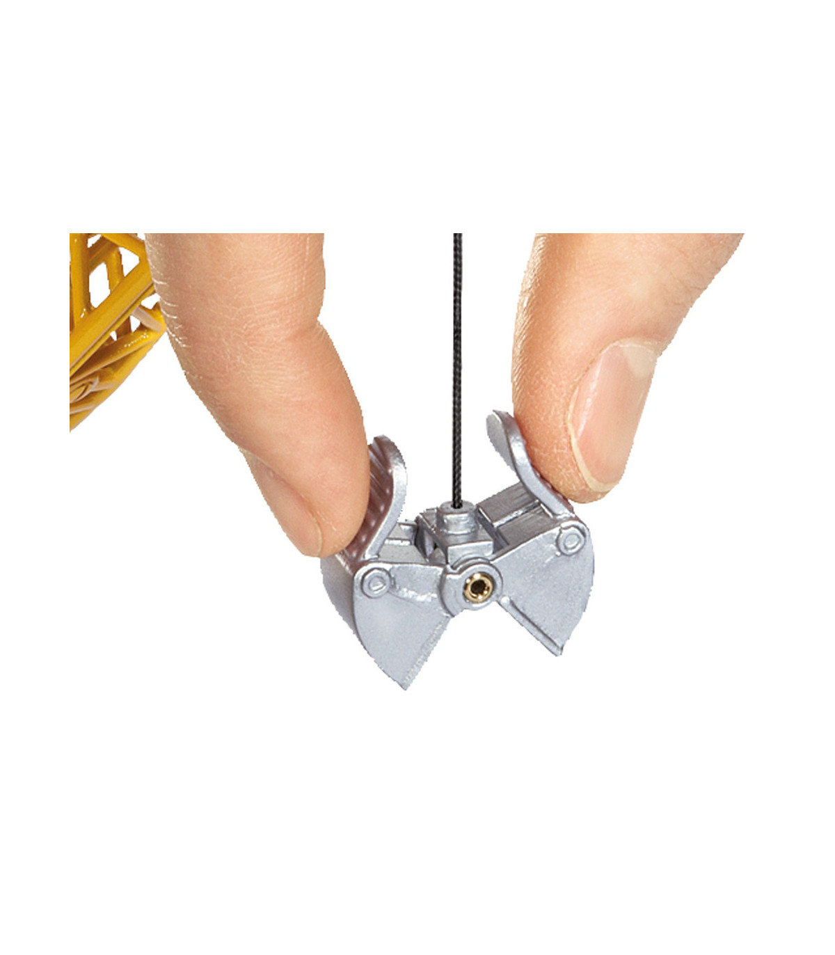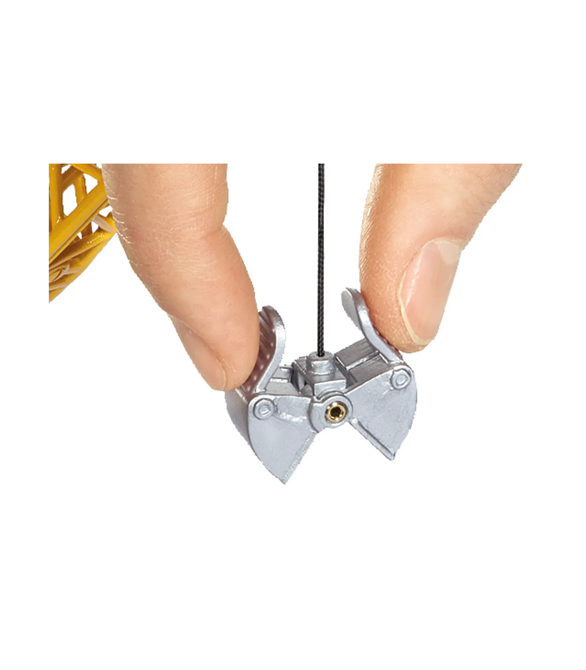 Impresionante modelo de máquina de construcción en escala 1:87 para niños. Estructura metálica giratoria. El brazo de la grúa se puede girar hacia arriba y hacia abajo. Orugas de plástico móviles. Gancho de grúa metálico que se puede bajar y subir con una palanca giratoria.