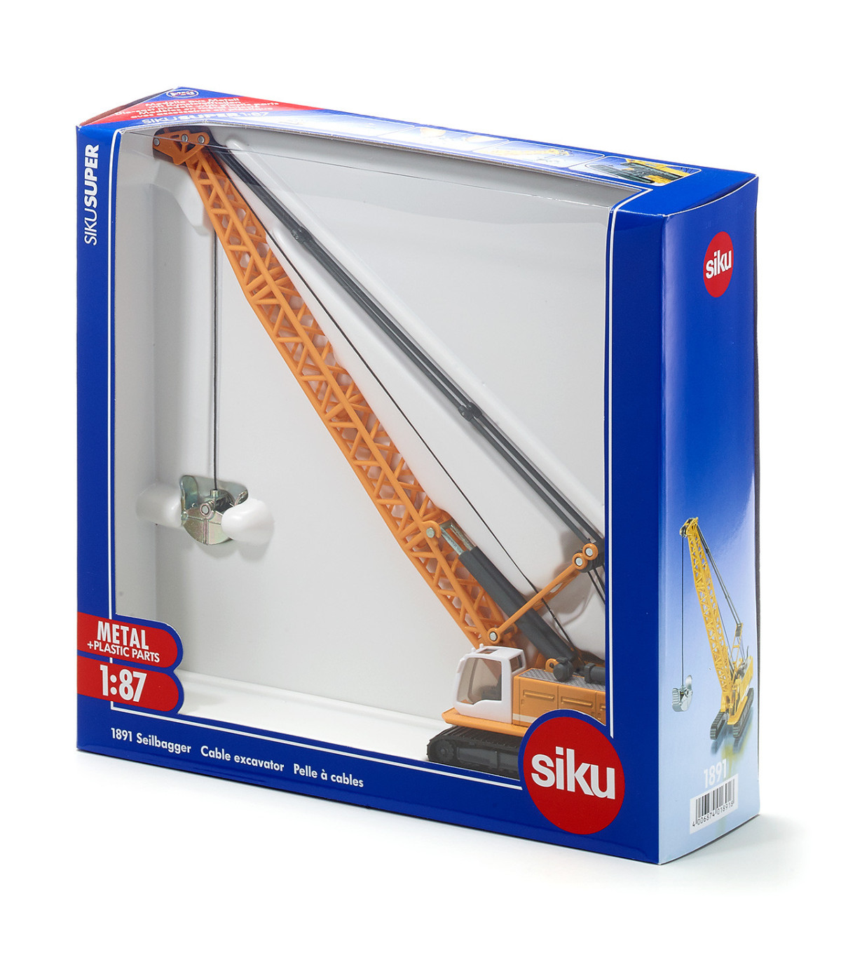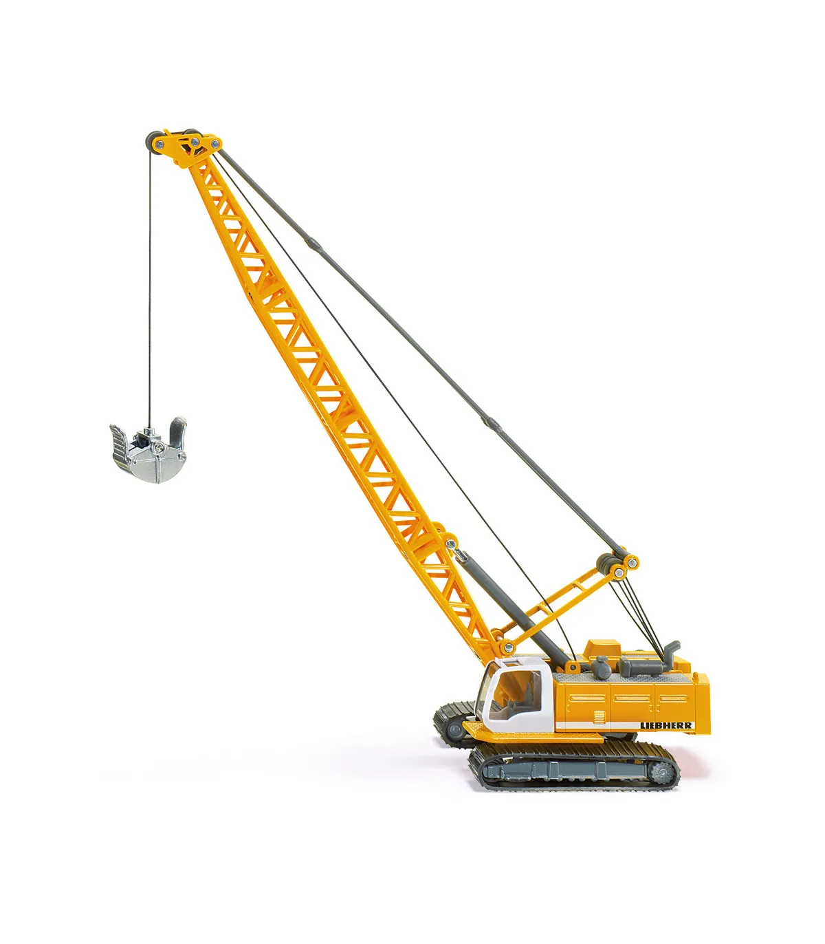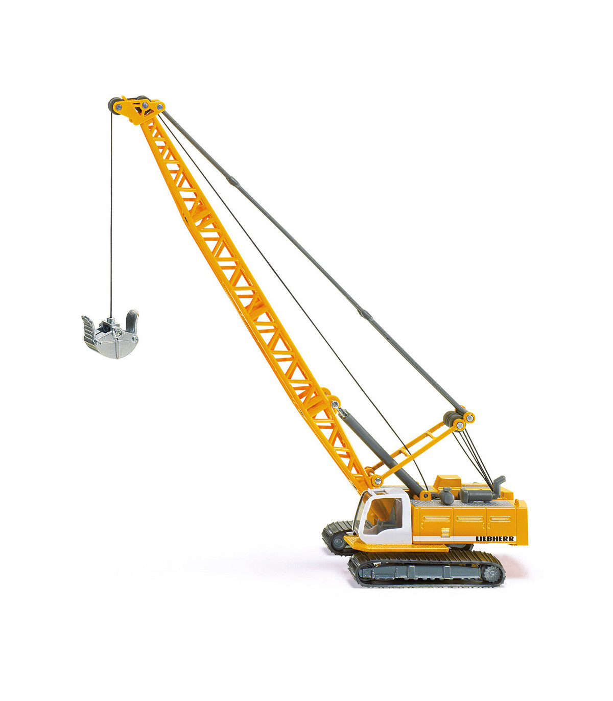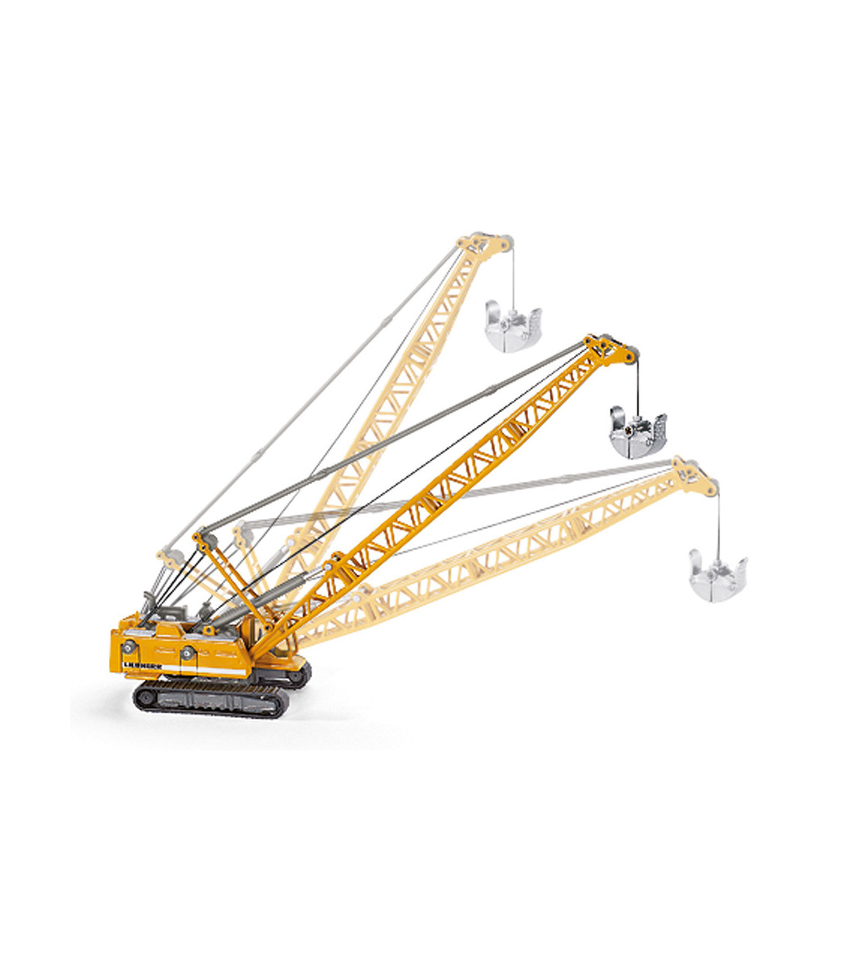 Impresionante modelo de máquina de construcción en escala 1:87 para niños. Estructura metálica giratoria. El brazo de la grúa se puede girar hacia arriba y hacia abajo. Orugas de plástico móviles. Gancho de grúa metálico que se puede bajar y subir con una palanca giratoria.