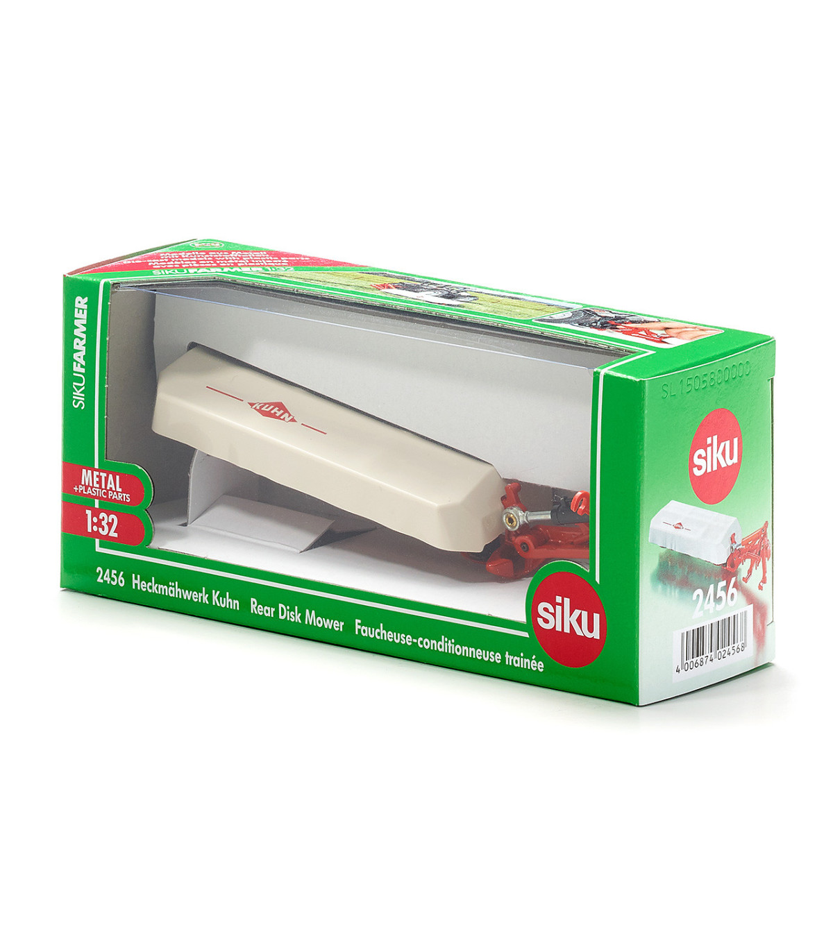 Un cortacésped sencillo montado en la parte trasera es indispensable para el trabajo diario de corte en una pequeña y mediana empresa. El modelo del fabricante francés KUHN está fabricado casi en su totalidad en metal y se puede acoplar fácilmente a cualquier tractor SIKU. El cortacésped se puede subir y bajar y convence por la detallada representación visual de diversos detalles.