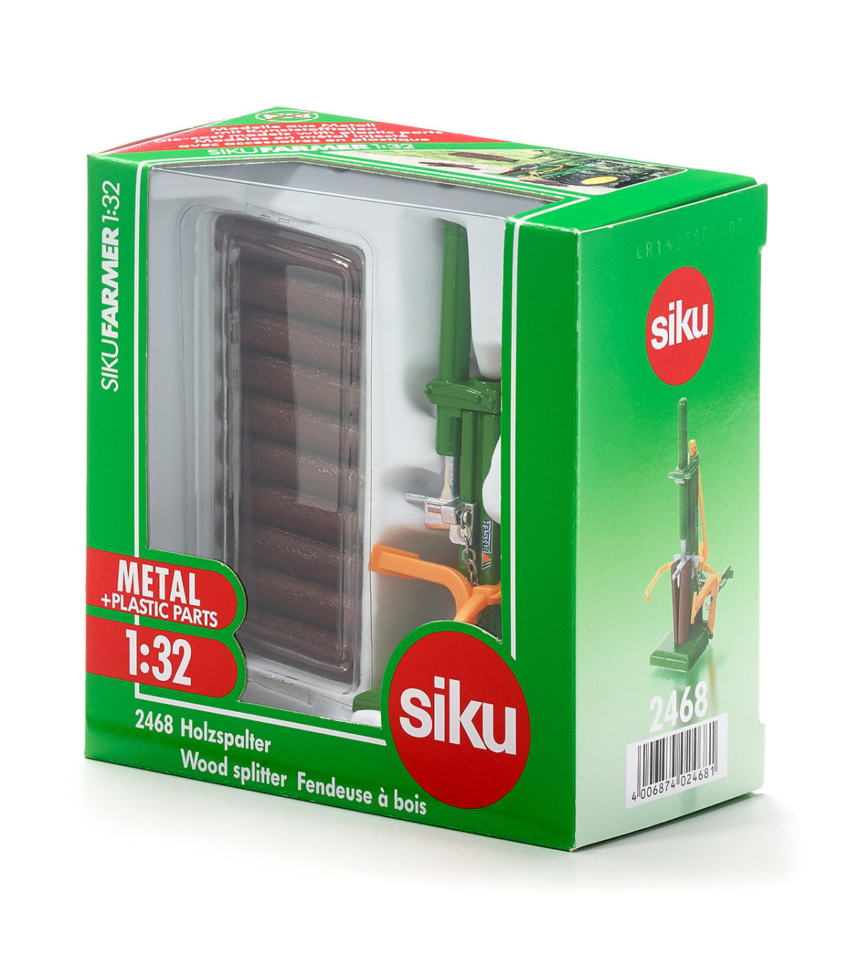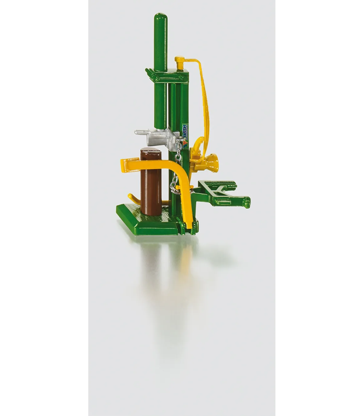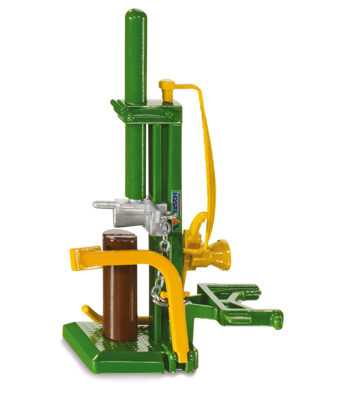 Un partidor de leña es esencial para partir correctamente la leña. El dispositivo de la empresa austriaca Posch, acoplado al enganche trasero de un tractor SIKU, divide de forma prototípica los troncos de plástico suministrados en dos partes. El martillo partidor móvil tira del tronco del árbol a la posición óptima para partirlo mediante un soporte conectado a una cadena. El martillo partidor baja y separa el tronco del árbol en dos mitades. Troncos de árboles divisibles como complementos.