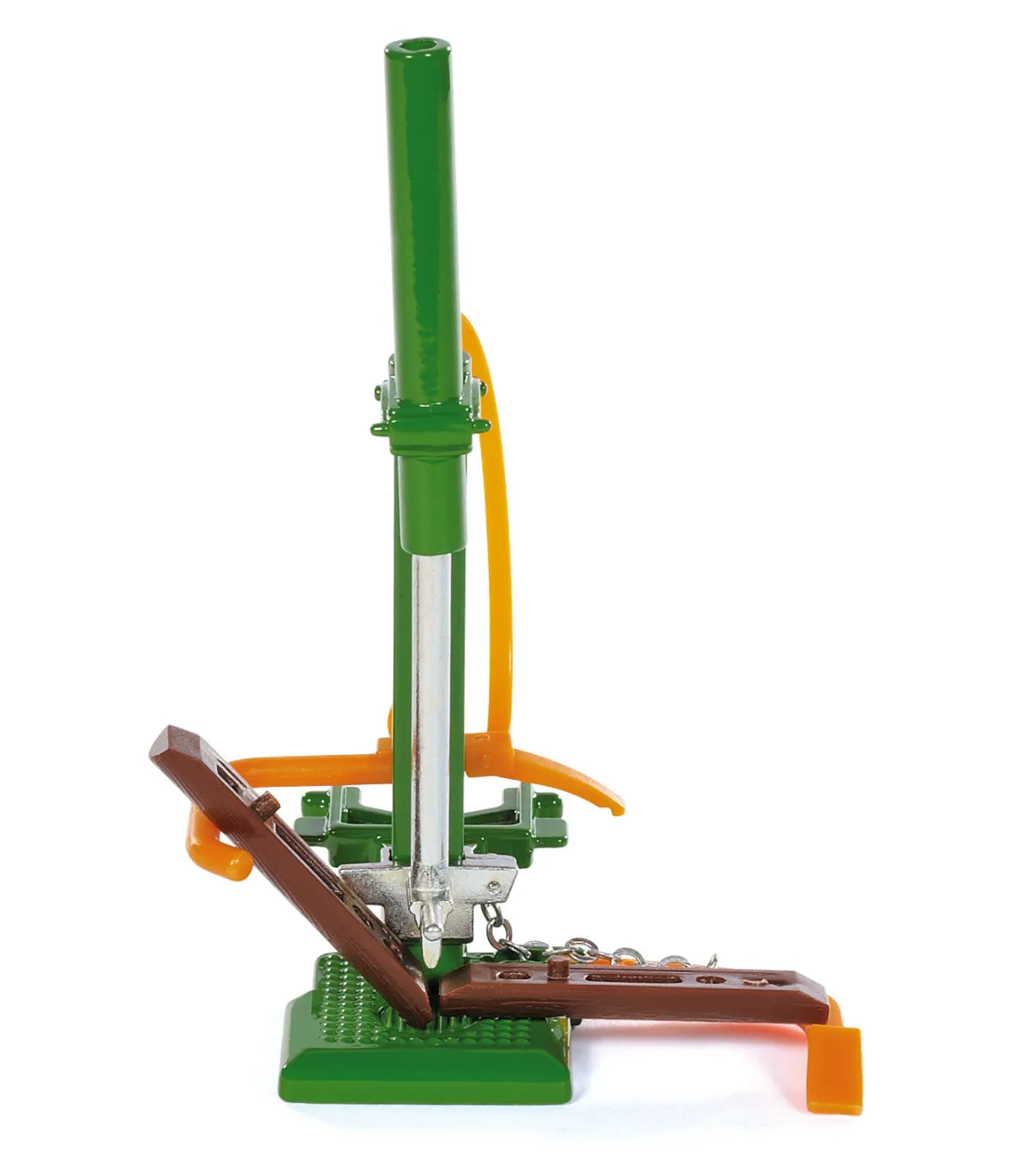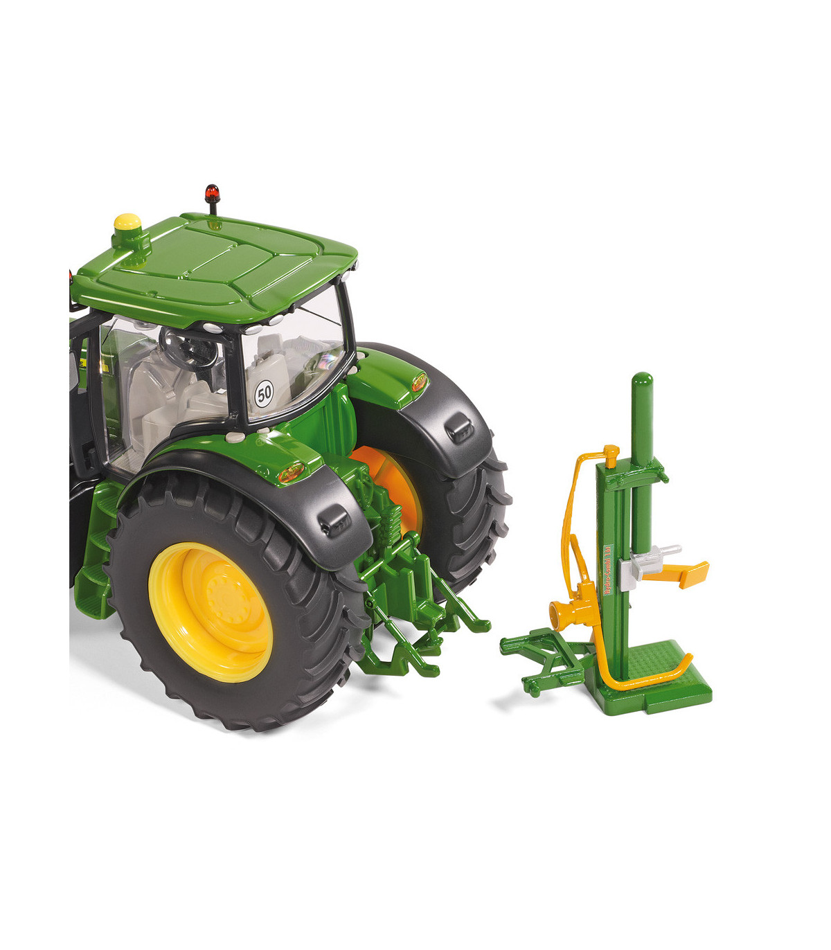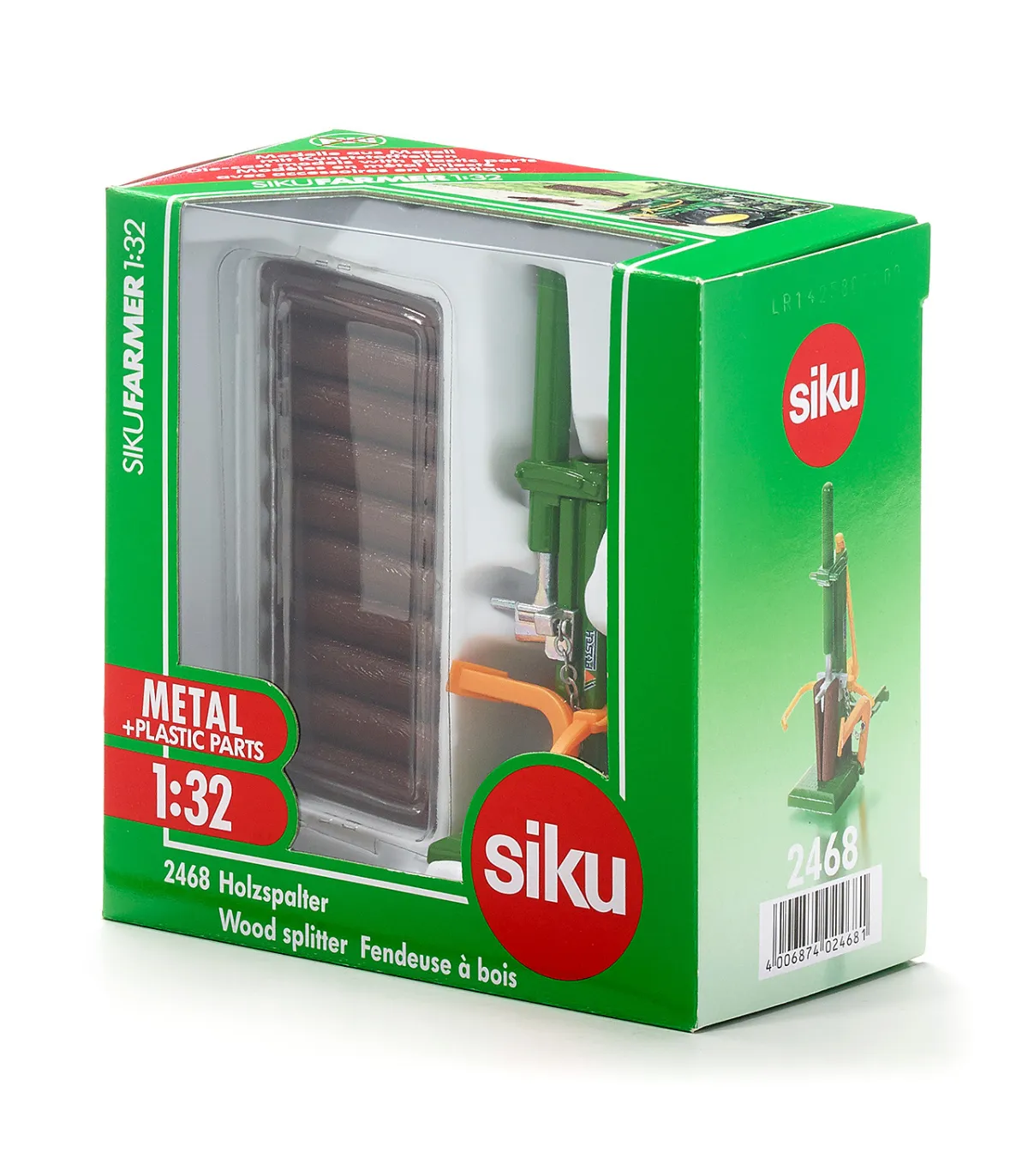 Un partidor de leña es esencial para partir correctamente la leña. El dispositivo de la empresa austriaca Posch, acoplado al enganche trasero de un tractor SIKU, divide de forma prototípica los troncos de plástico suministrados en dos partes. El martillo partidor móvil tira del tronco del árbol a la posición óptima para partirlo mediante un soporte conectado a una cadena. El martillo partidor baja y separa el tronco del árbol en dos mitades. Troncos de árboles divisibles como complementos.
