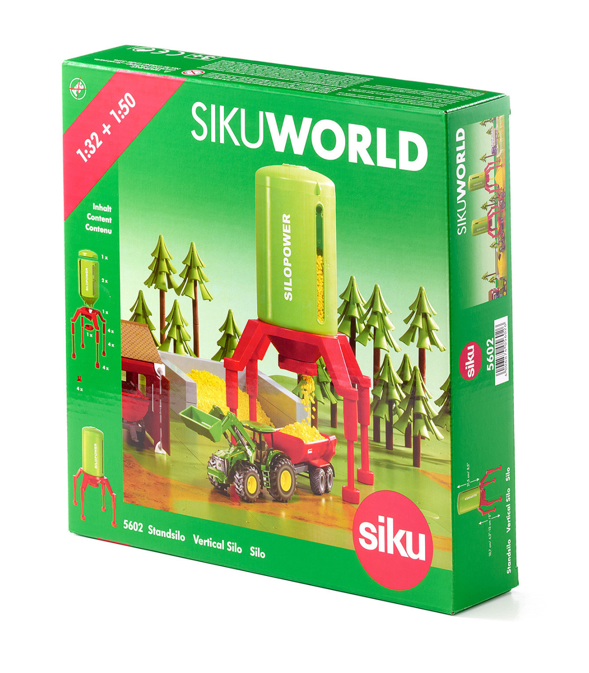 El impresionante silo de pie con una capacidad de 1,2 litros es el centro de atención de cada granja SIKU en la habitación de los niños. Por debajo del SILO pueden circular tractores con remolque o camiones con semirremolque para realizar la carga. La altura libre de los modelos SIKU en escalas de 1:87 a 1:32 se puede ajustar de forma flexible mediante soportes de altura regulable. Los indicadores de nivel en la carrocería le informan en todo momento si todavía hay suficiente material disponible para cargar. La carga bien dosificada de los vehículos es posible gracias a una salida que gira continuamente. La tapa, que está asegurada con un tapón de rosca, se puede quitar para llenar el recipiente. Se recomienda un material a granel de grano grueso.