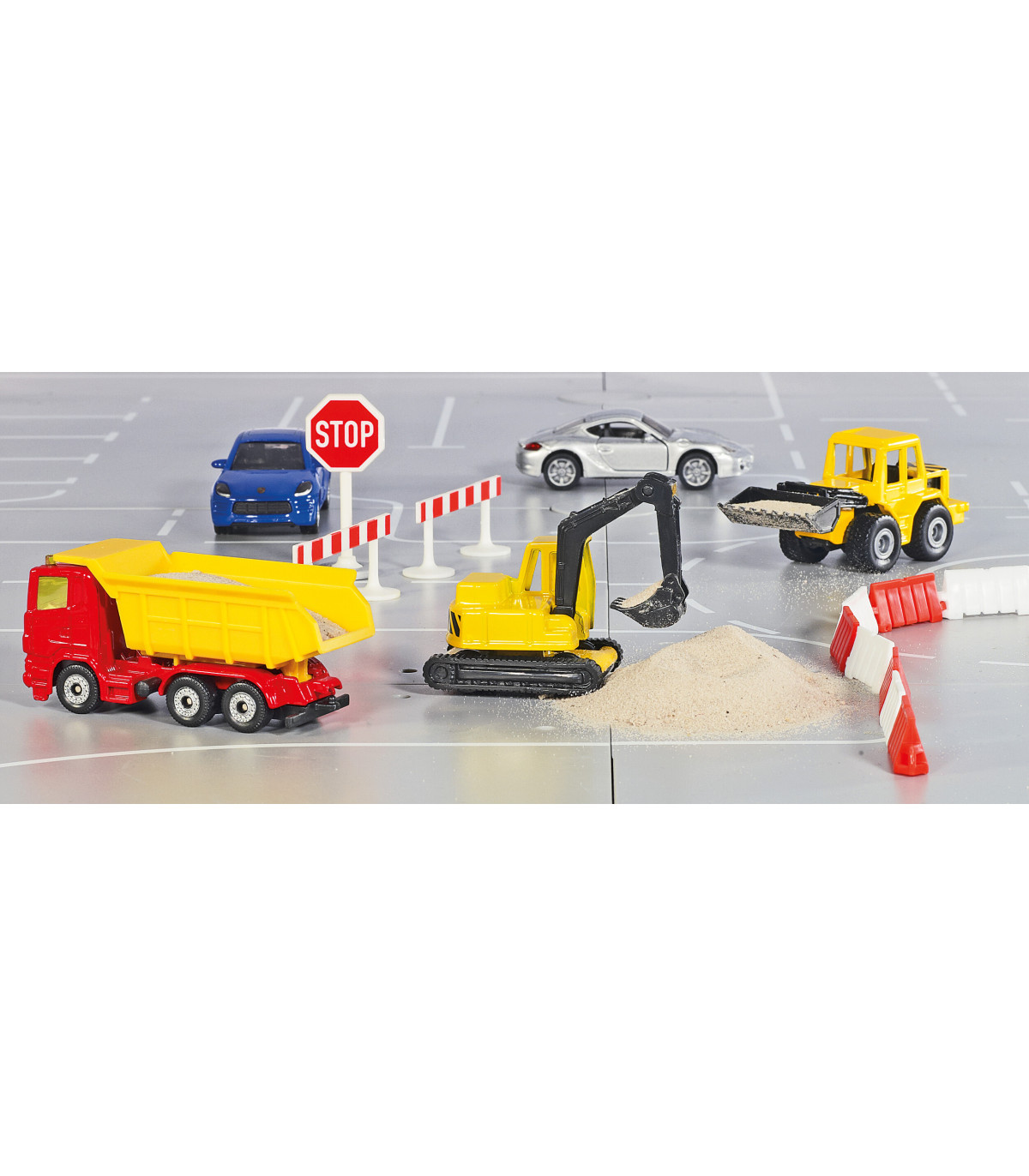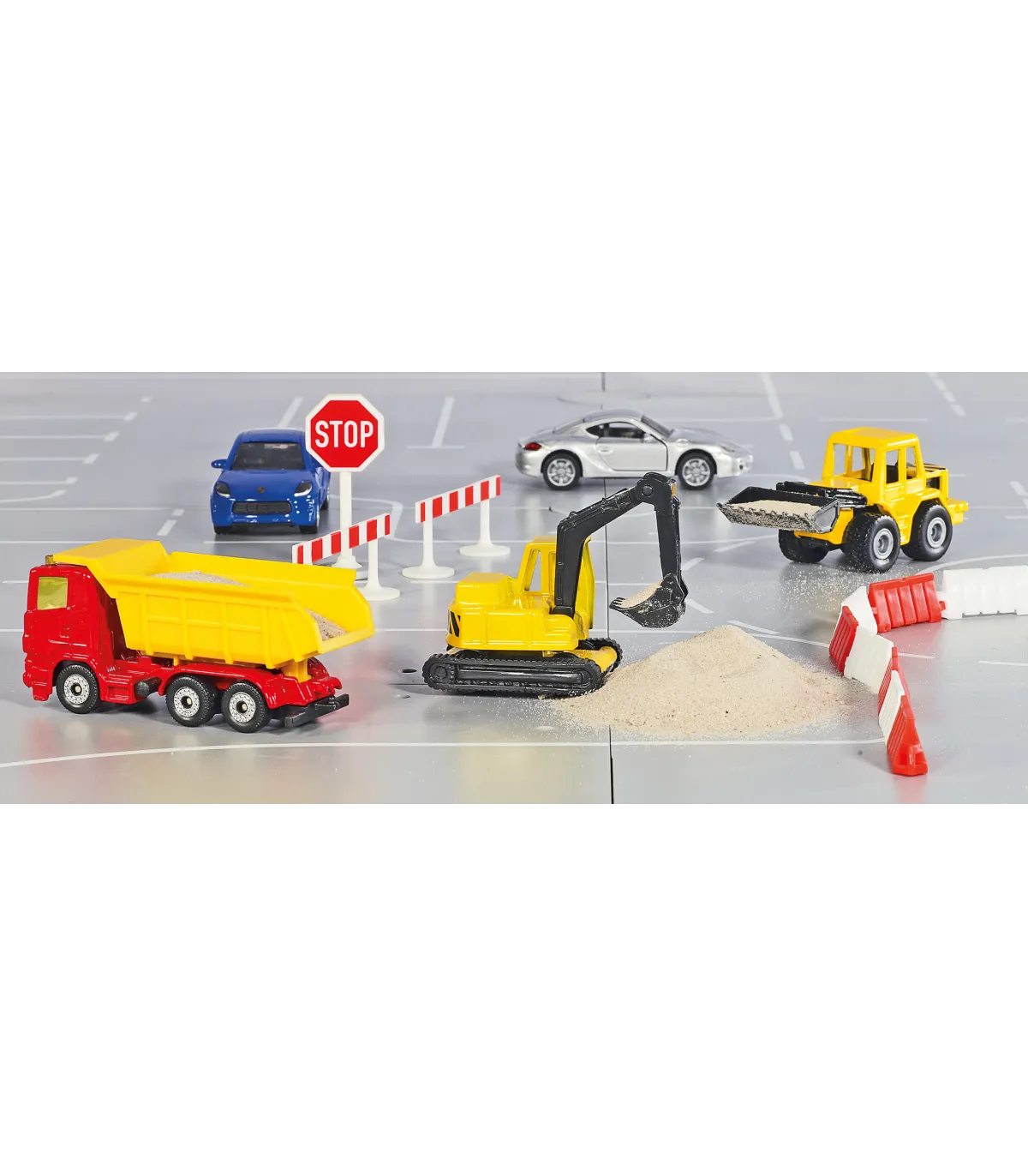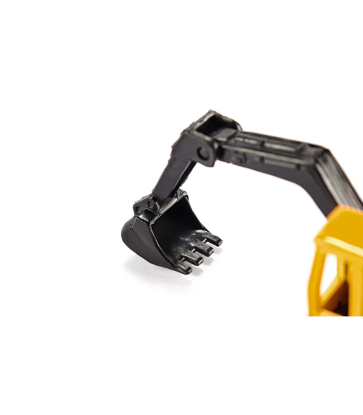 La excavadora sobre orugas compuesta de piezas de metal y plástico es una réplica del vehículo real. Las partes móviles permiten transportar objetos muy pequeños. Un juguete perfecto para los constructores más pequeños.