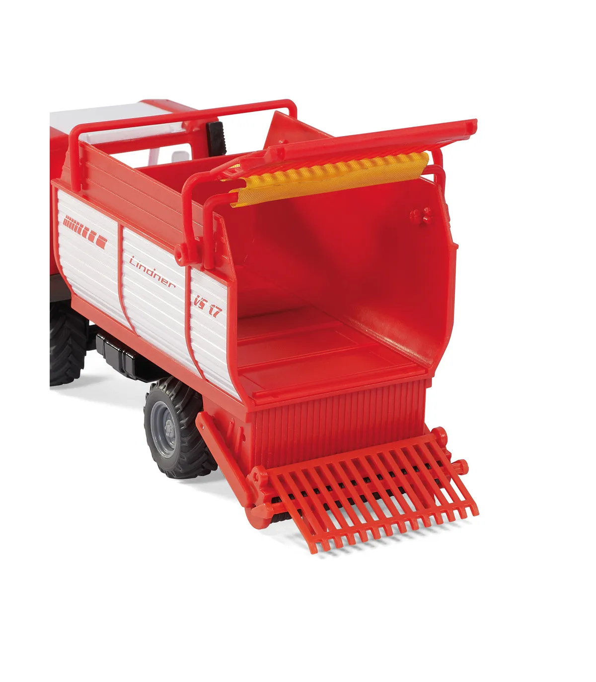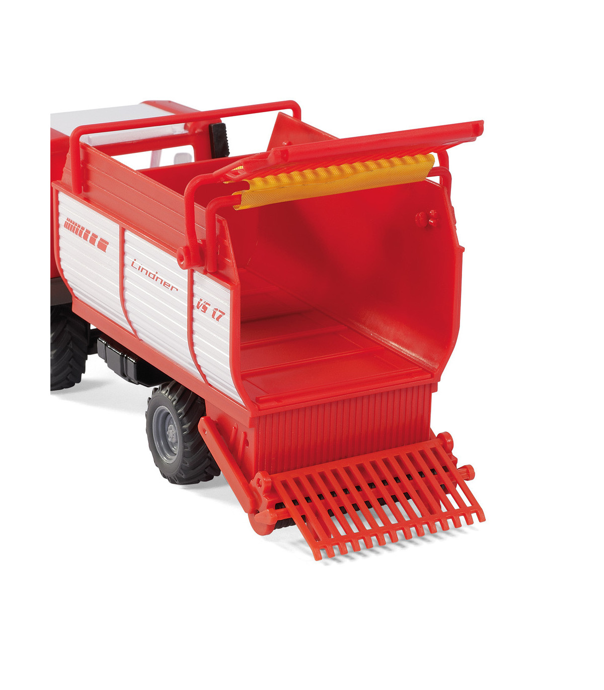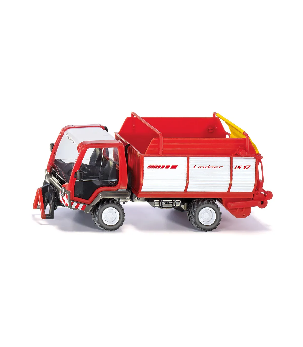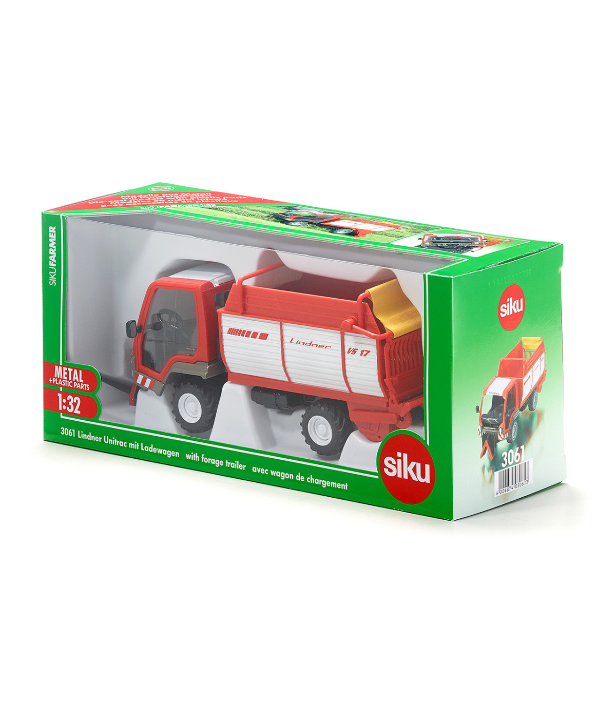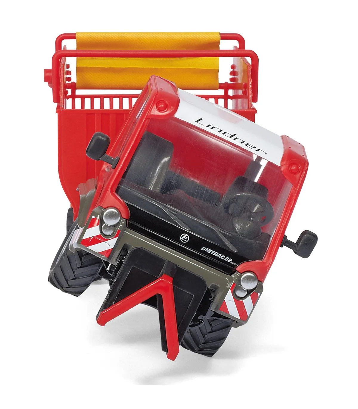 Trabajar en laderas de montañas, pastos altos y valles estrechos es la principal tarea de este vehículo multifuncional, 32 veces más pequeño a escala agrícola y que complementa la gama SIKU Farmer. El Unitrac está equipado con una junta niveladora que mantiene el vehículo en el camino en terrenos irregulares. La cabina, equipada con espejos plegables, se puede plegar hacia un lado y deja ver el detallado diseño del motor. El techo de la cabina es desmontable para poder colocar figuras de conductores SIKU en el modelo. La función de carga se muestra detalladamente en el vagón de carga, que dispone de un fondo rascador indicado mediante grabados. Con el enganche de remolque en la parte delantera del modelo, los dispositivos delanteros SIKU disponibles también se pueden utilizar con este vehículo.