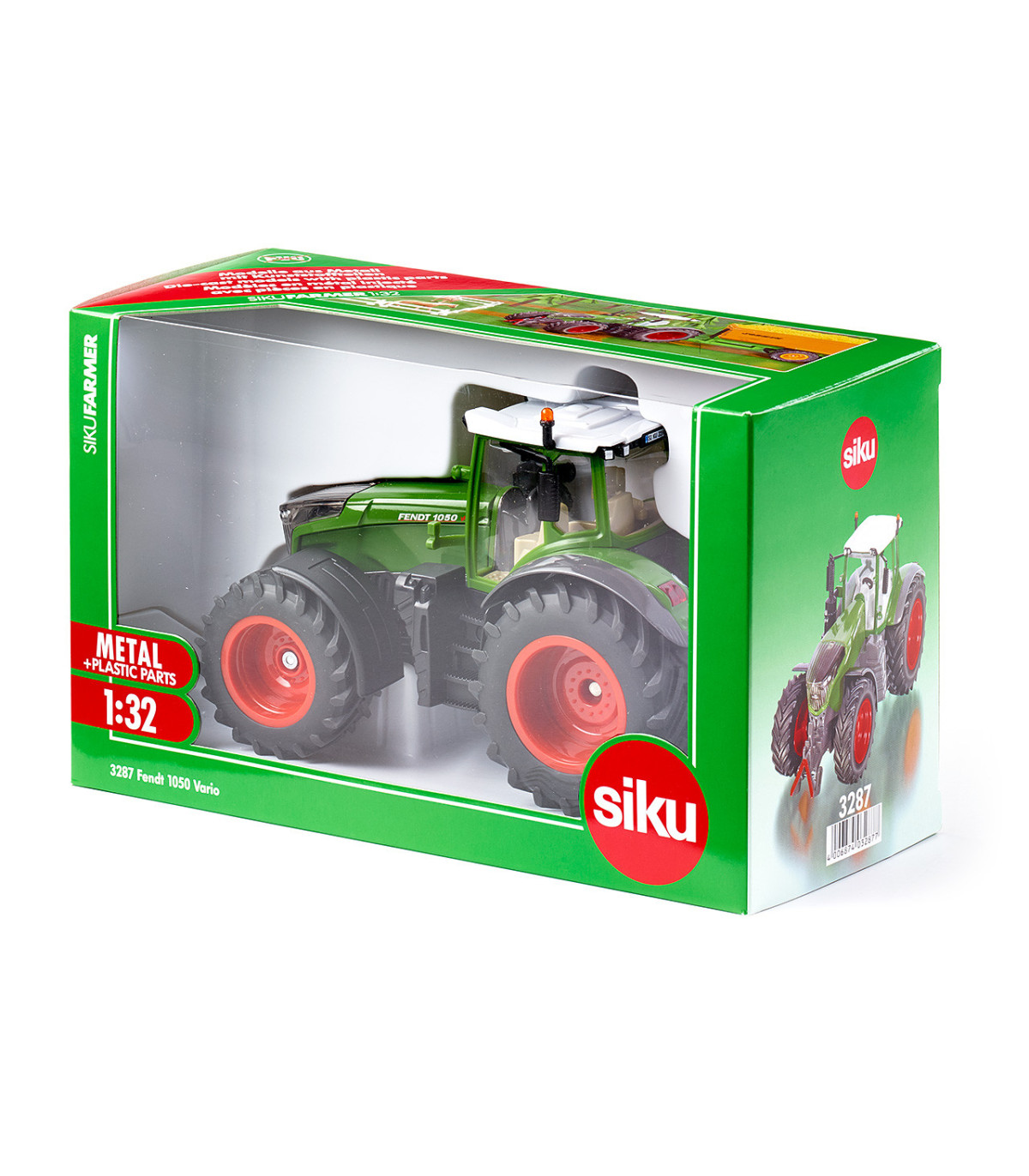 Fendt describe el nuevo Fendt 1050 Vario como una obra maestra alemana. Ahora esto también llega a la habitación de los niños en formato de juguete. El modelo SIKU, que consta de piezas de metal y plástico, refleja de forma óptima las enormes proporciones de la máquina original. También se destaca el nuevo aspecto del capó con un aspecto sombrío, al igual que los nuevos neumáticos traseros en una nueva dimensión. El eje delantero orientable tiene una función pendular. El enorme capó se puede abrir y la cabina es desmontable. En la parte delantera y trasera se utilizan acoplamientos estándar SIKU.
