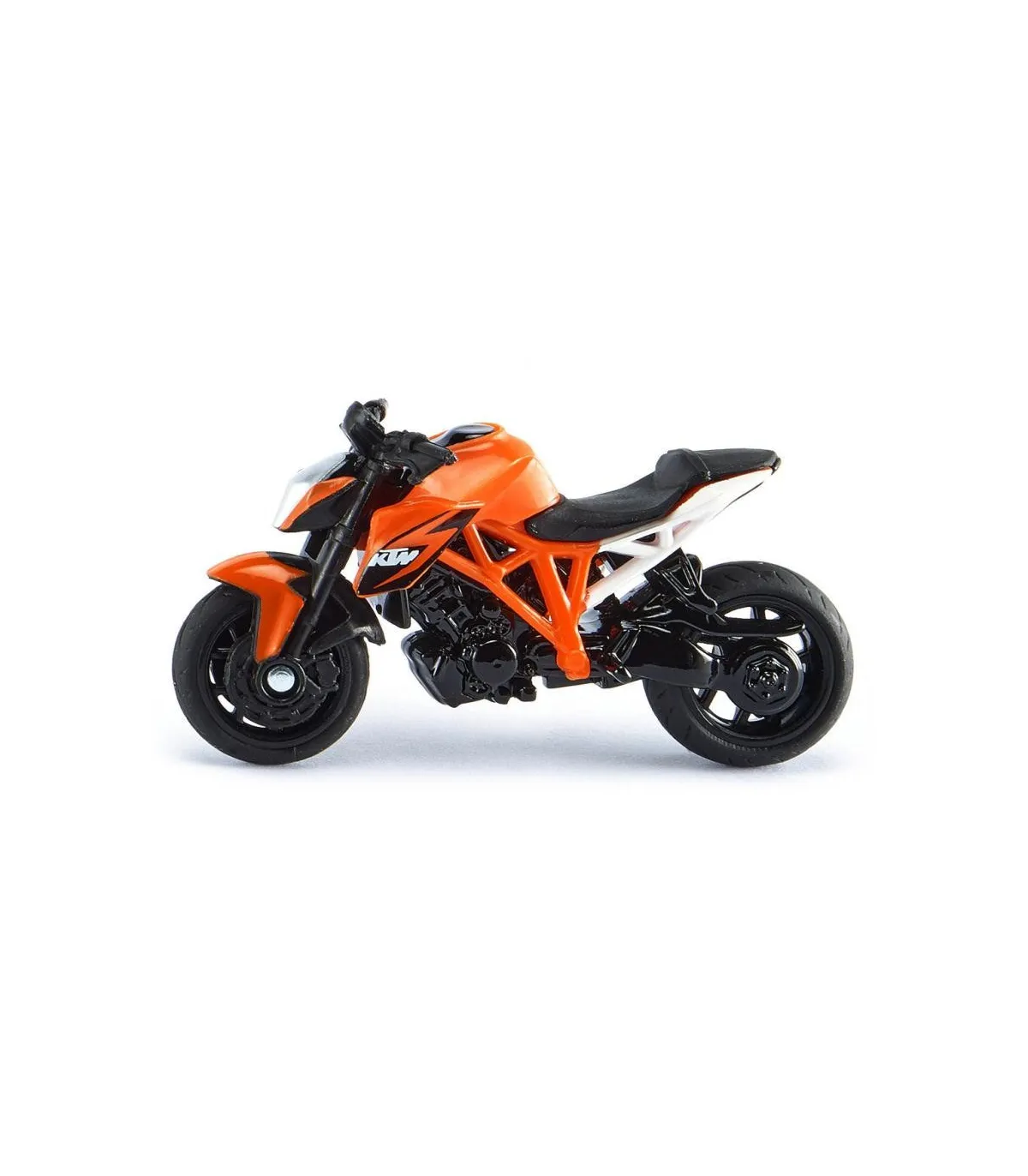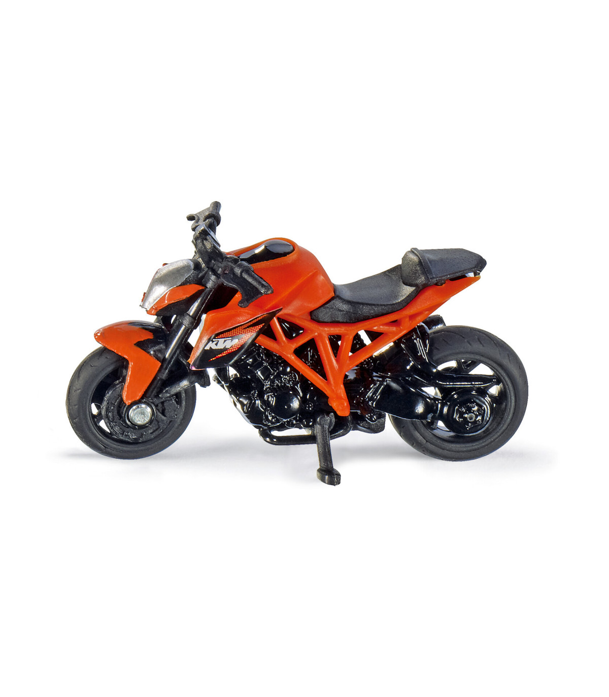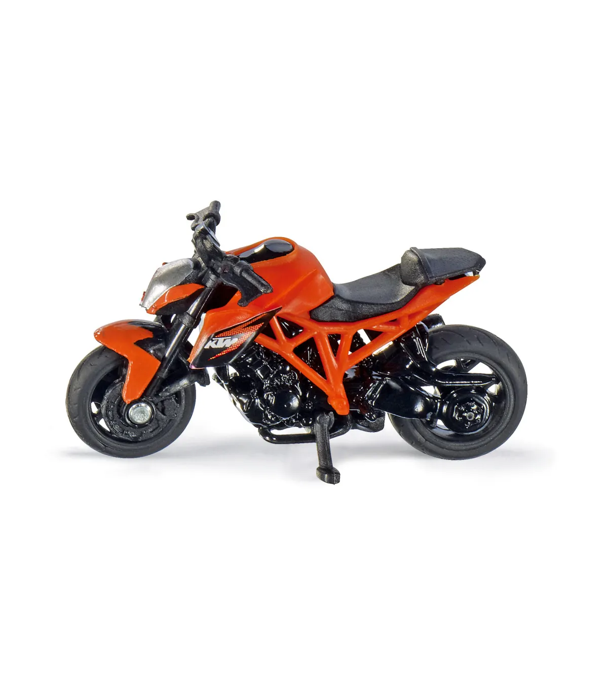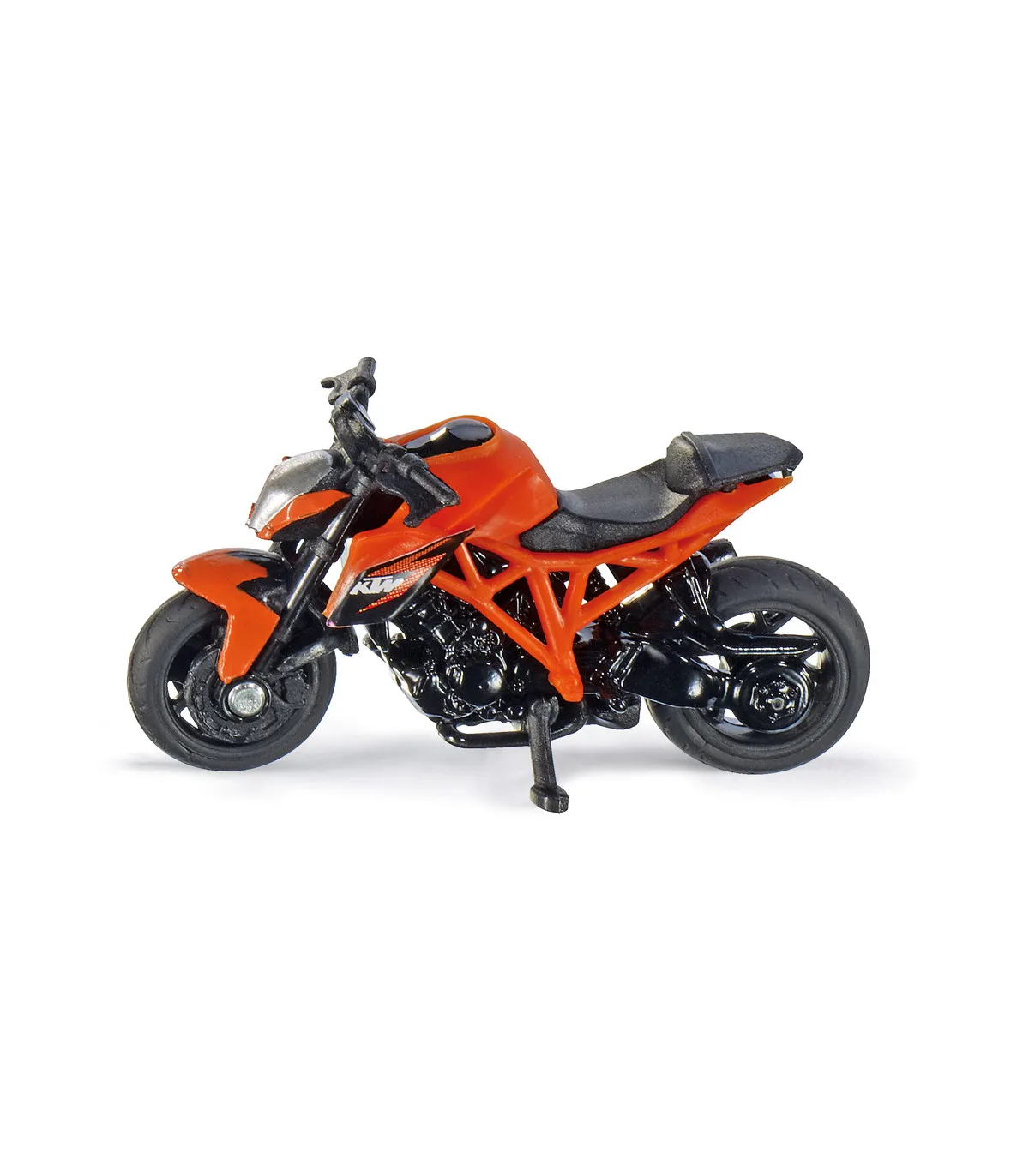 El crucero es ayer. ¡La KTM Super Duke necesita curvas! Construye un paisaje curvo con SIKUWORLD y deja que el Duque se coma las curvas en una impresionante posición inclinada. Como réplica fiel al original, este moderno modelo de motocicleta se presenta con un diseño detallado y una fundición a presión de zinc de alta calidad. El Super Duke viene en una atractiva combinación de colores y tiene una rueda delantera orientable y un soporte que se puede plegar hacia adentro y hacia afuera.