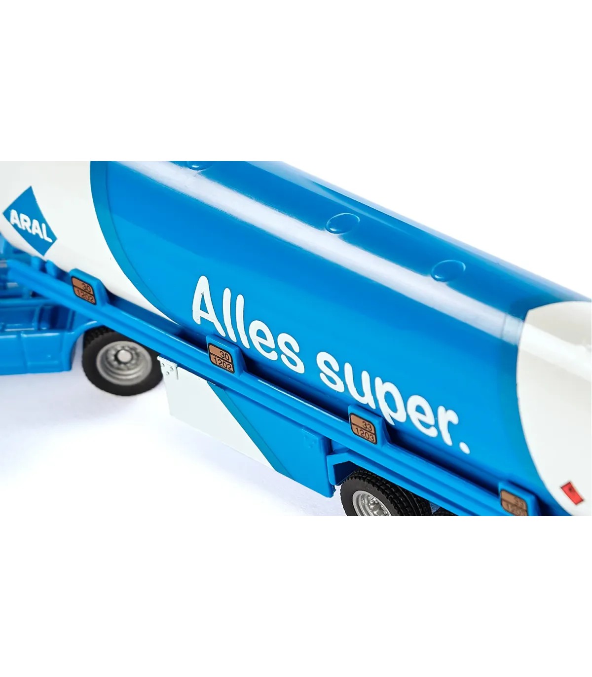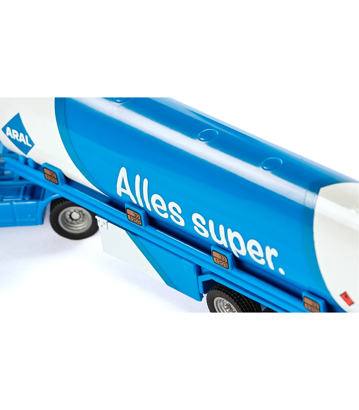 El camión cisterna Aral Alles Super es un modelo único para los amantes de los vehículos de gran tamaño. Un acabado preciso, piezas de metal y plástico de alta calidad y neumáticos de goma garantizan un transporte seguro del combustible sobre diversas superficies. El modelo a escala 1:87 es un cambio interesante para los pequeños conductores y una adición a muchas colecciones.