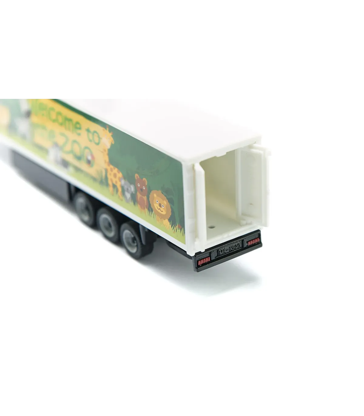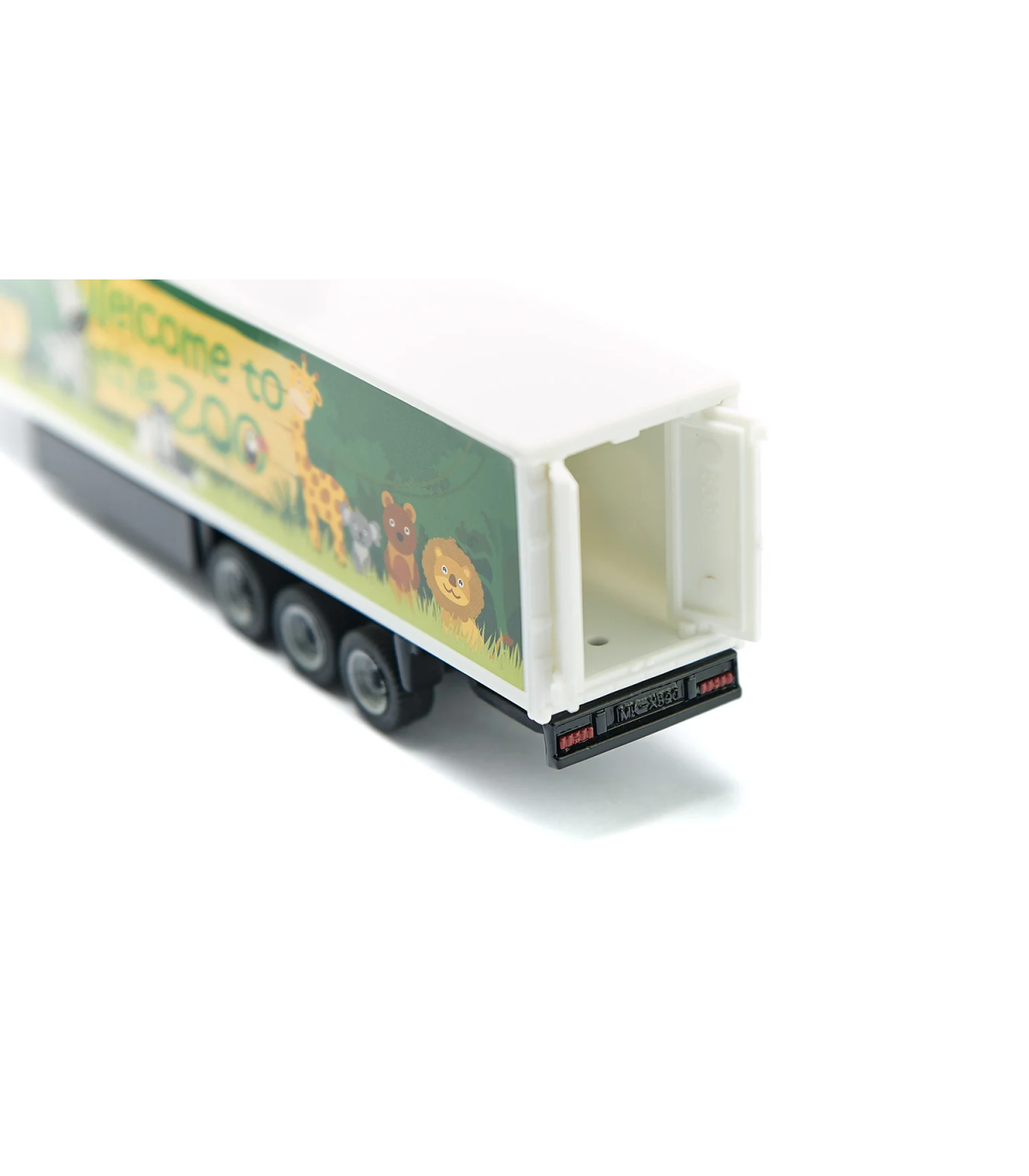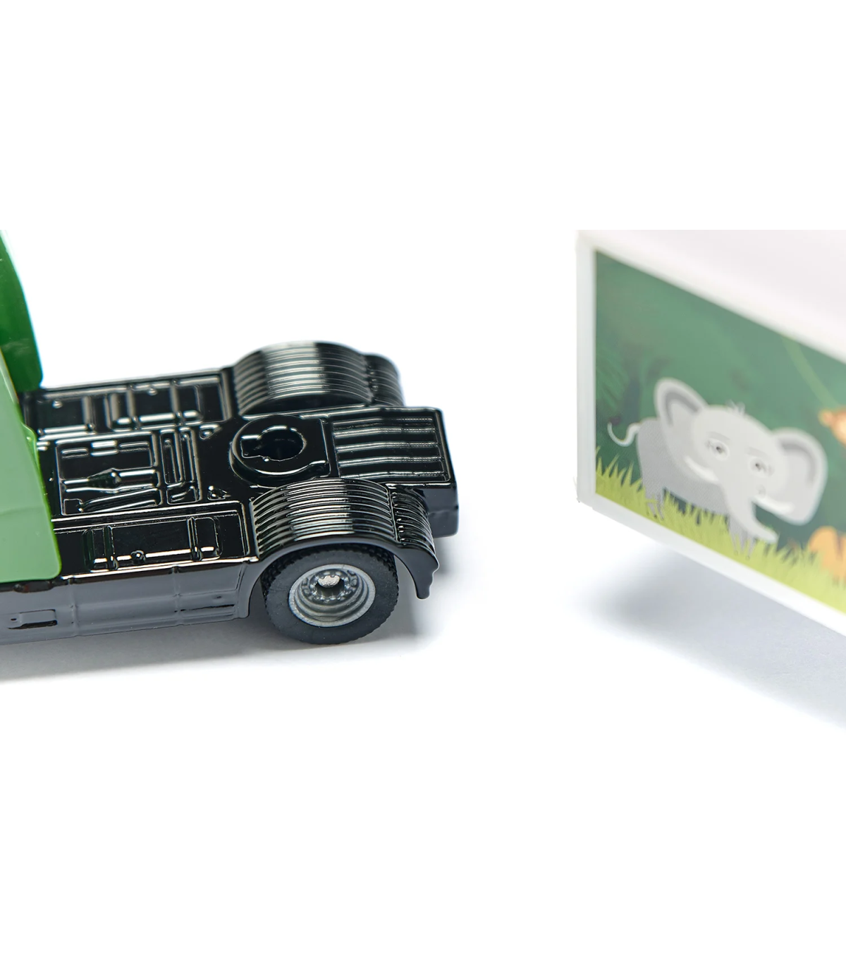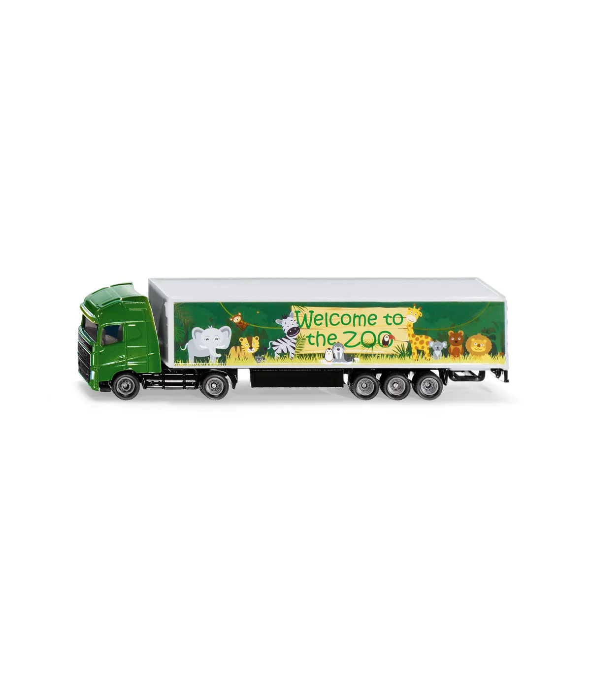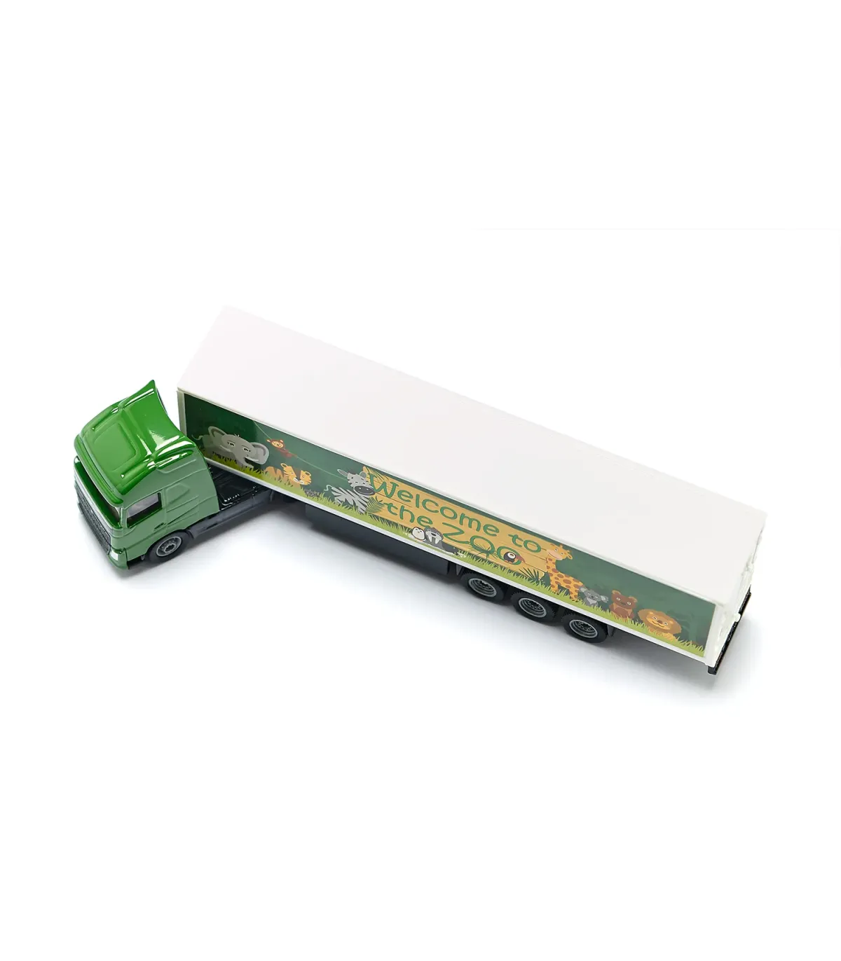 El camión con remolque colorido es un atractivo juguete fabricado con piezas de metal y plástico de alta calidad en escala 1:87, que transporta cargas fácilmente sobre diversas superficies gracias a sus neumáticos de goma. Los gráficos amigables y coloridos hacen que cada juego sea un placer.