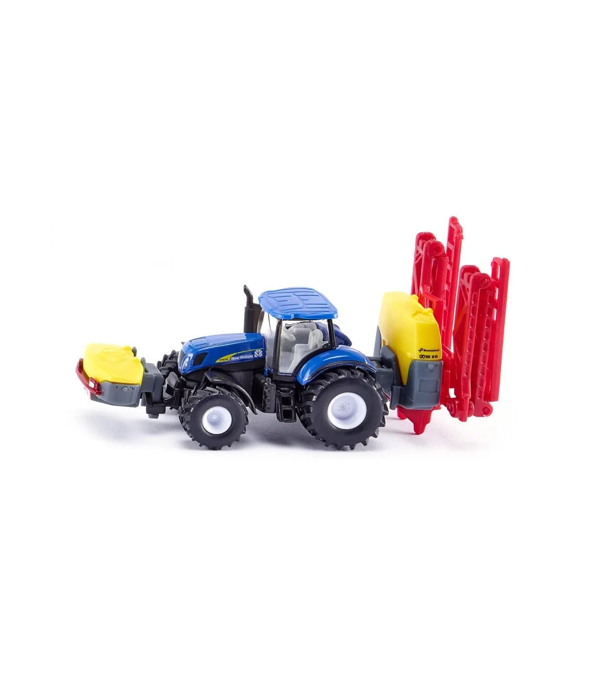 La combinación del tractor New Holland con el combinado fitosanitario de la marca Kverneland es realmente grande a pequeña escala. Con una anchura de más de 20 cm, la barra de pulverización alcanza un tamaño récord con una proporción de 1:87. El bastidor se puede plegar para ahorrar espacio durante el transporte por carretera. El depósito delantero y la unidad de pulverización trasera son extraíbles y se pueden combinar con otros tractores de las series 1:87 y Blister.