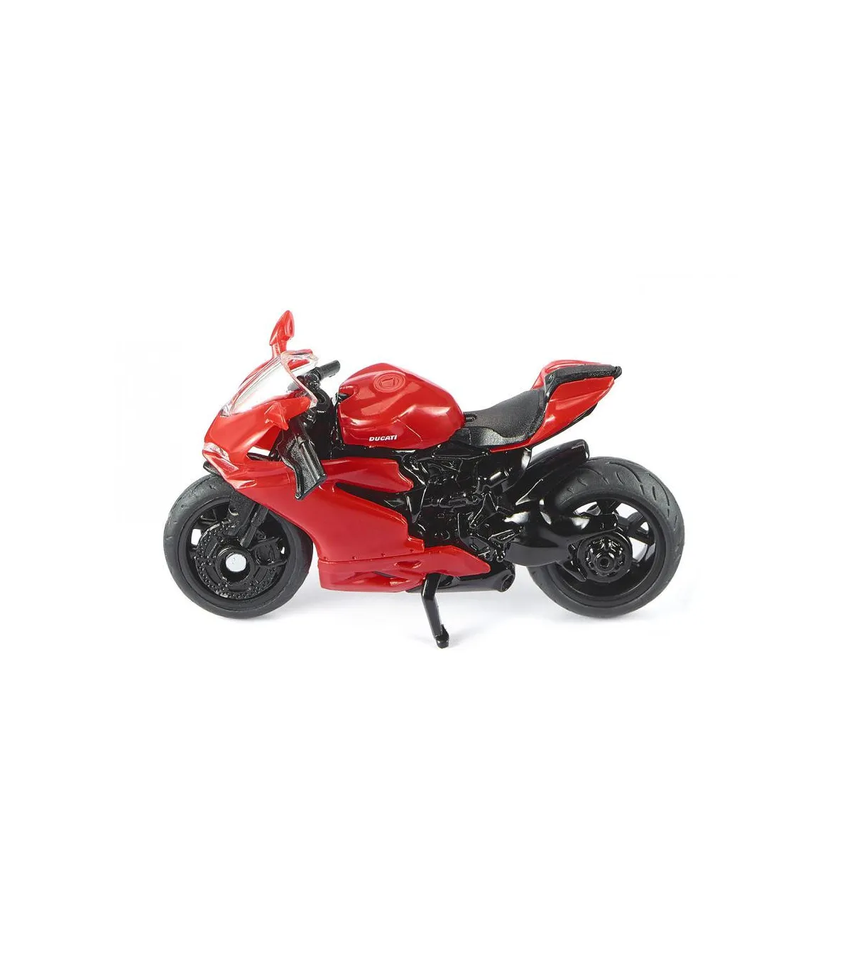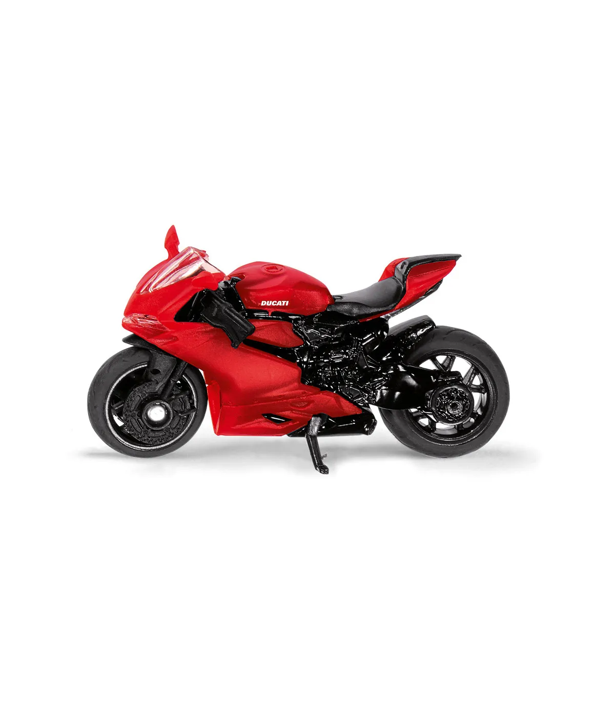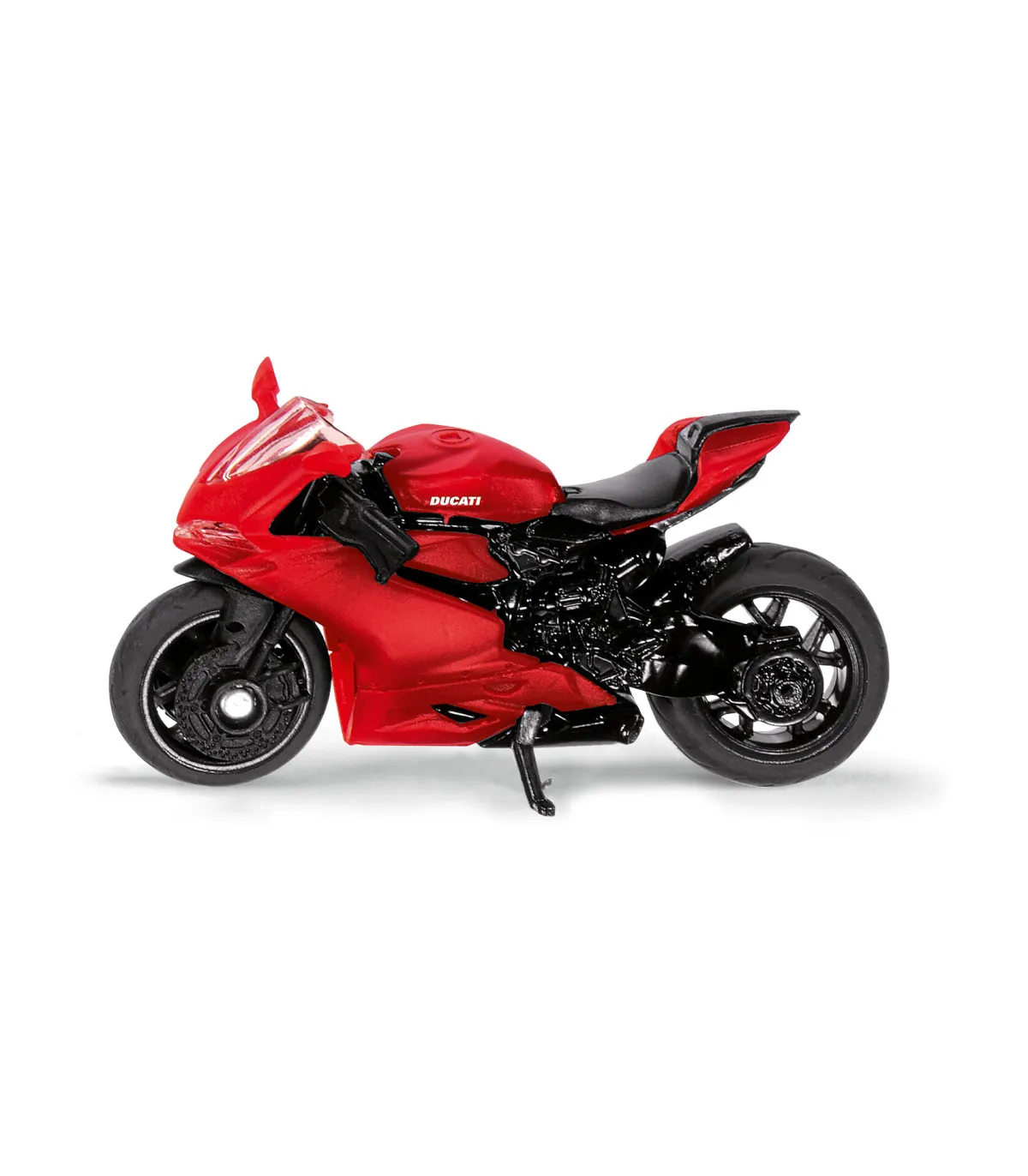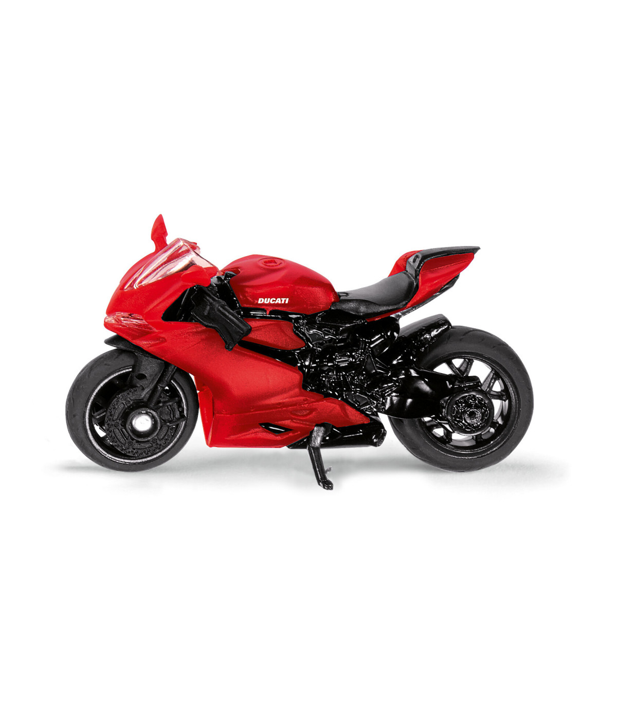 Con la Ducati Panigale 1299, la adrenalina llega a los aficionados a las motos con los primeros rayos de sol: con 196 CV y un peso en vacío de 184 kg, la moto de Bolonia es considerada la diosa de las curvas rojas. Esta agresiva superbike se presenta como una réplica fiel al original con un diseño detallado y fundición a presión de zinc de alta calidad. La Panigale está pintada en el típico rojo Ducati, la rueda delantera es orientable y el caballete se puede plegar hacia dentro y hacia fuera.