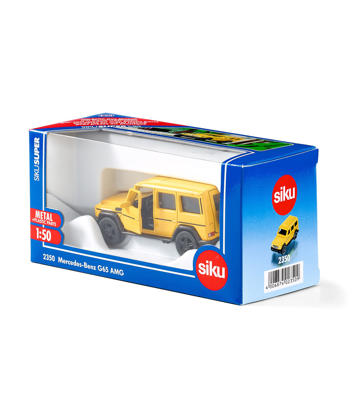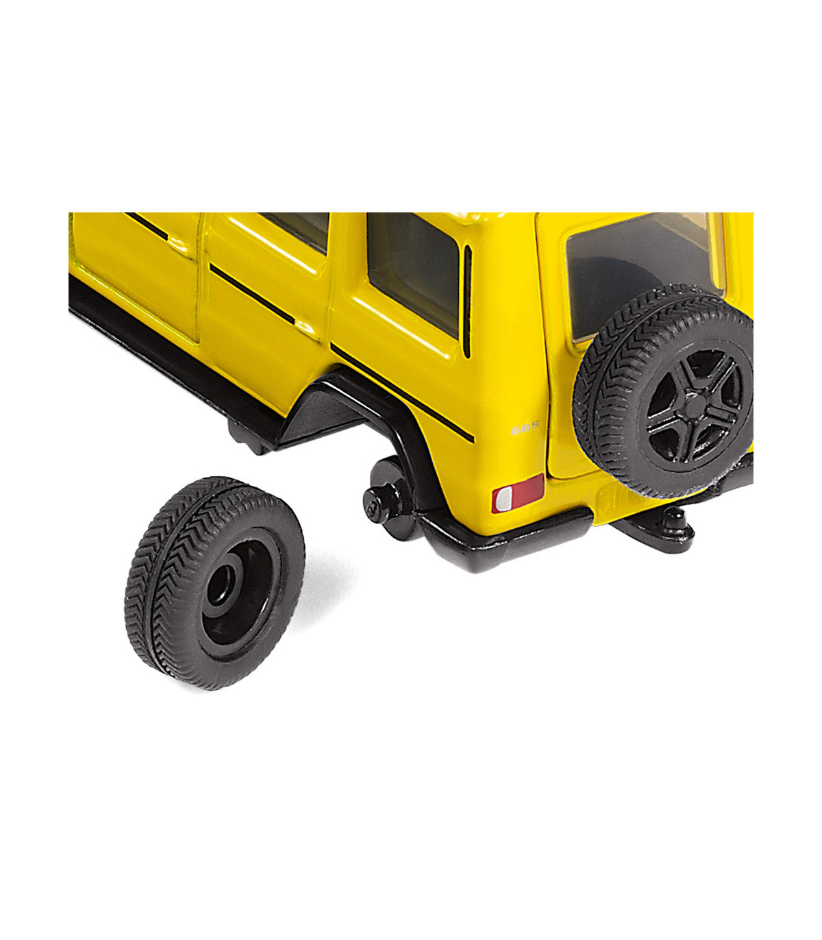 La forma original del SUV moderno, el Mercedes-AMG G 65, regresa a la gama SIKU en su última y más potente versión a escala 1:50. Es necesario abrir las puertas delanteras y traseras. Las cuatro ruedas y la rueda de repuesto del portón trasero son extraíbles. Esto significa que ahora puedes recrear una avería o cambiar un neumático en la habitación de los niños.