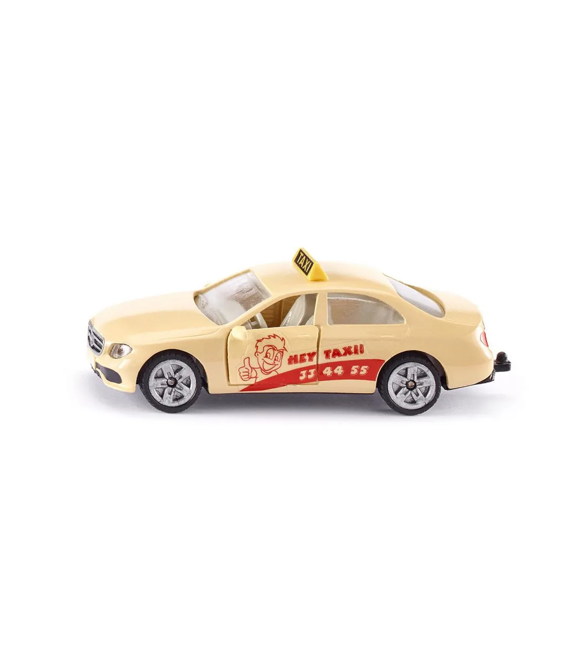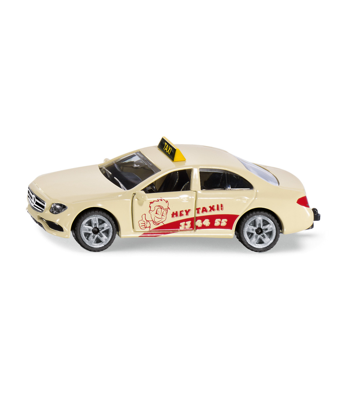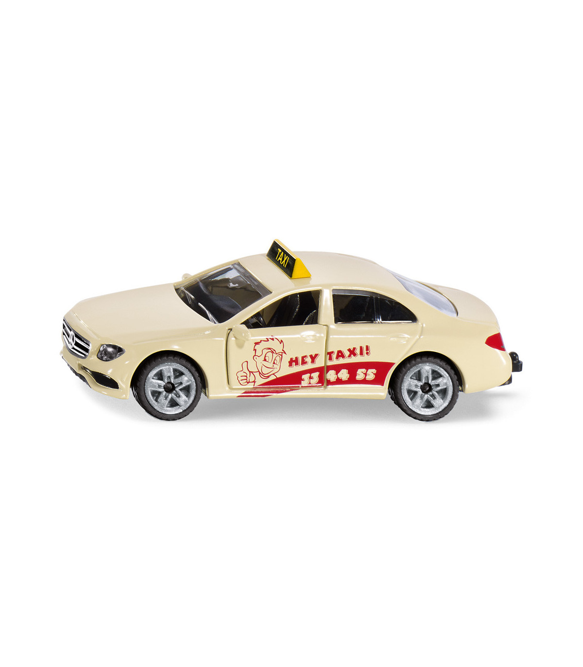 Una estrella en la parrilla del radiador es imprescindible en el taxi clásico. Con la nueva Clase E de Mercedes-Benz entra en el segmento de los taxis una elegante limusina que luce un estampado alegre y animado en el lateral del vehículo. Las puertas que se pueden abrir en la carrocería de metal, así como el enganche de remolque y los faros insertados representan funcionalidad y robustez equilibradas.