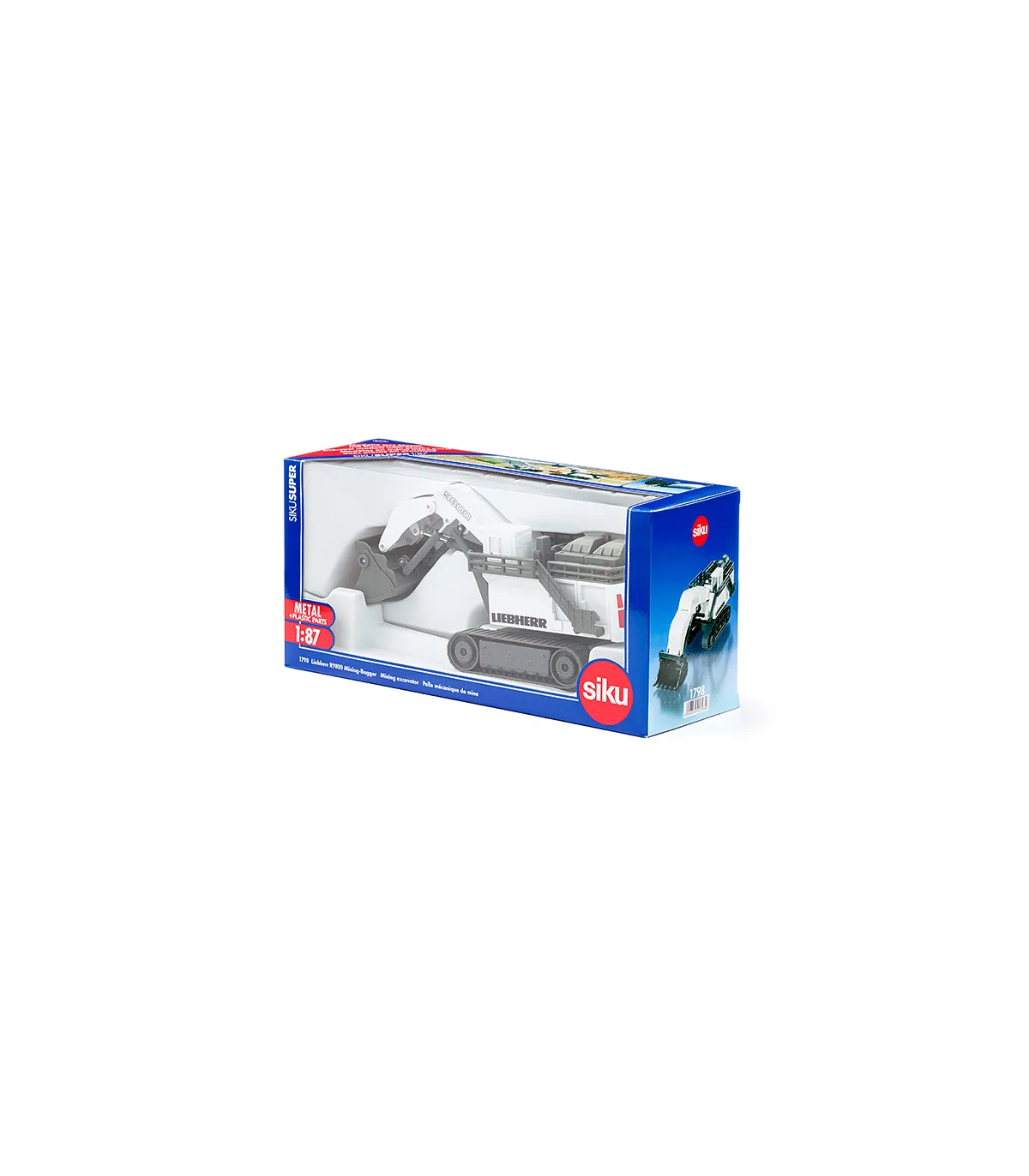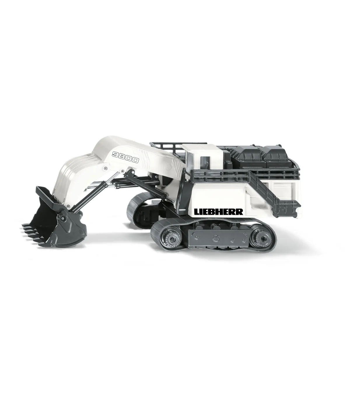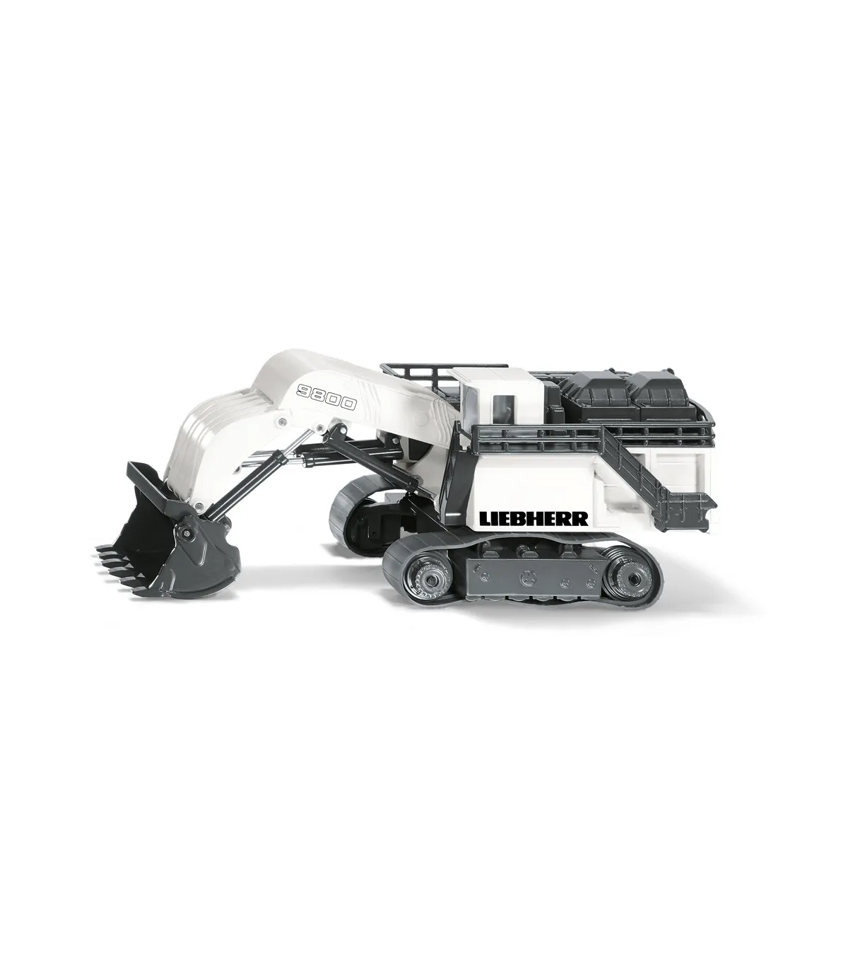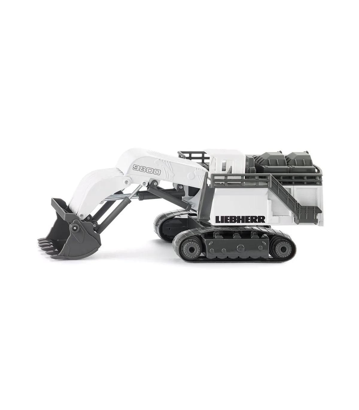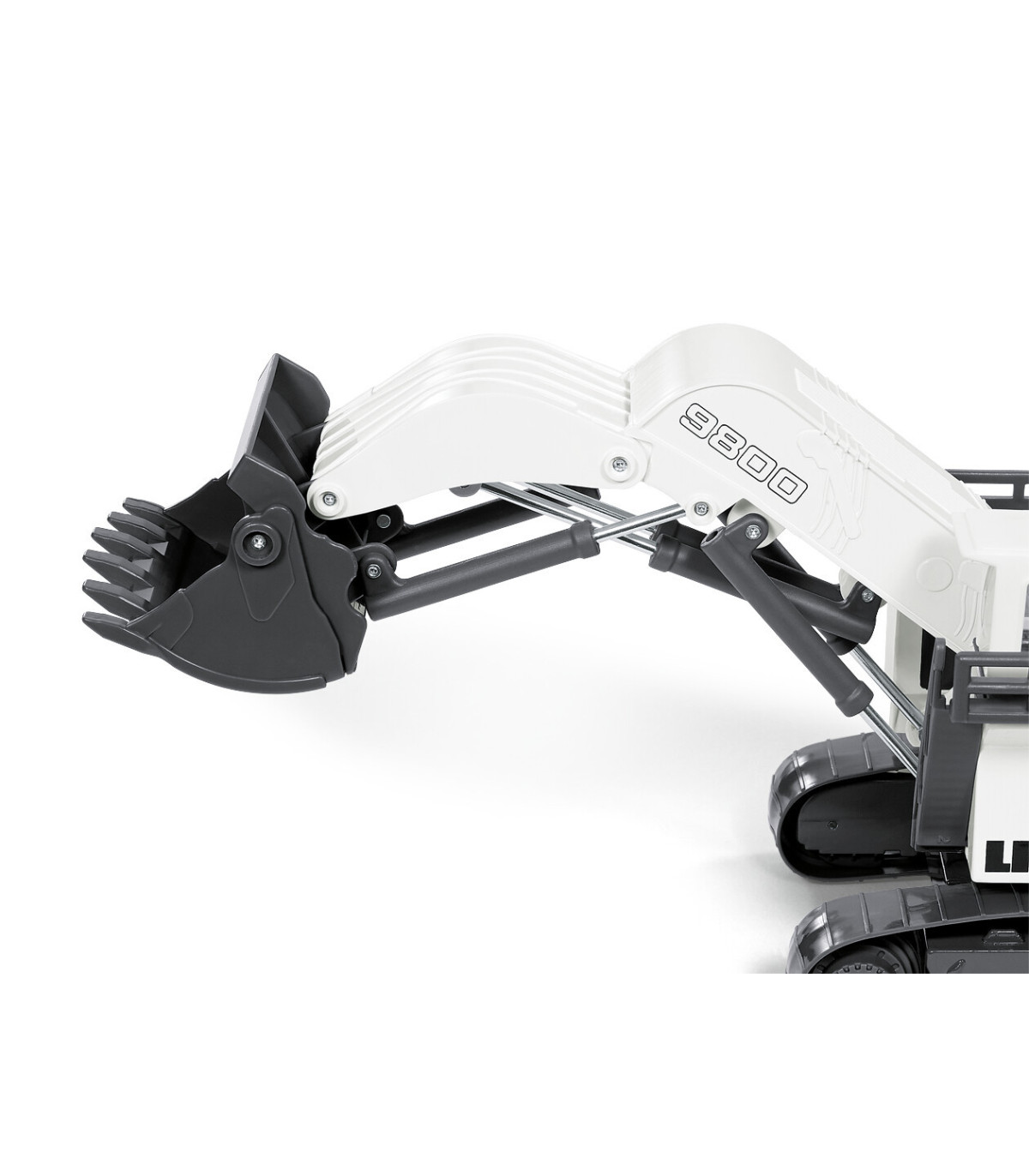 El gigante de las excavadoras sobre orugas en las obras y en la minería a cielo abierto es un auténtico coloso, incluso a escala 1:87. La serie R9800 de Liebherr es una de las excavadoras más grandes y potentes del mundo. Dos anchas orugas mueven el pesado modelo con robustas piezas metálicas. El enorme brazo de la excavadora con pala plegable es totalmente funcional y carga los volquetes mineros en un abrir y cerrar de ojos
