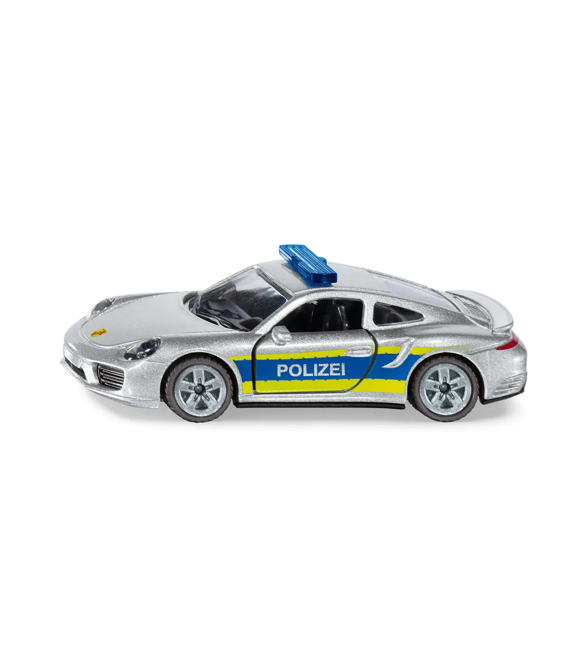 Carreras ilegales en la carretera. Uso del Porsche 911 de la policía de carreteras. Propulsados por 580 CV en la parte trasera, los agentes los persiguen con luces intermitentes y una bocina y frenan a los infractores. El modelo SIKU está preparado para operaciones de alta velocidad con barras de señales, impresión policial y neumáticos de tracción. En operaciones a gran escala, el equipo de policía de autopistas puede contar con el apoyo de agentes que llegan con estos vehículos: coche del equipo de policía SIKU (1350), autobús de policía SIKU (0804), coche patrulla SIKU (1401), coche patrulla de policía (1504).