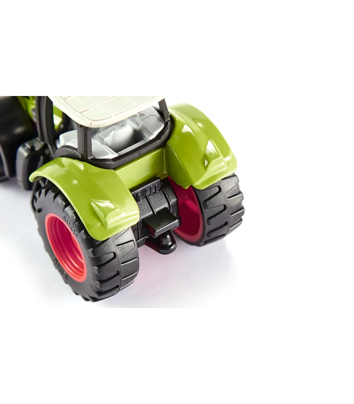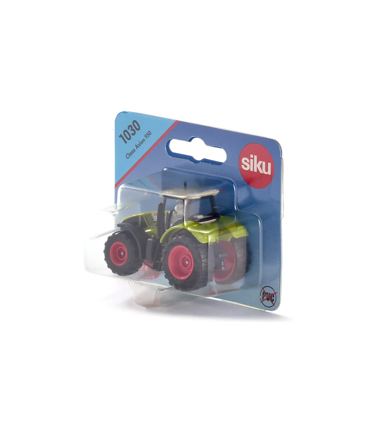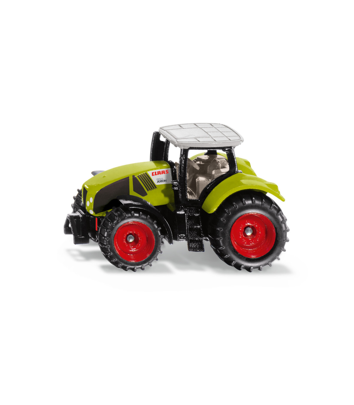 El Claas Axion 950 es el modelo superior de la serie Axion. Ya están disponibles 410 CV a 1.600 rpm. Esto permite una conducción eficiente y silenciosa. Con los anchos neumáticos de goma con banda de rodadura del tractor, el tractor está preparado para tareas grandes, incluso en la versión en miniatura. Todos los remolques SIKU de la serie BLISTER se pueden acoplar al enganche de remolque