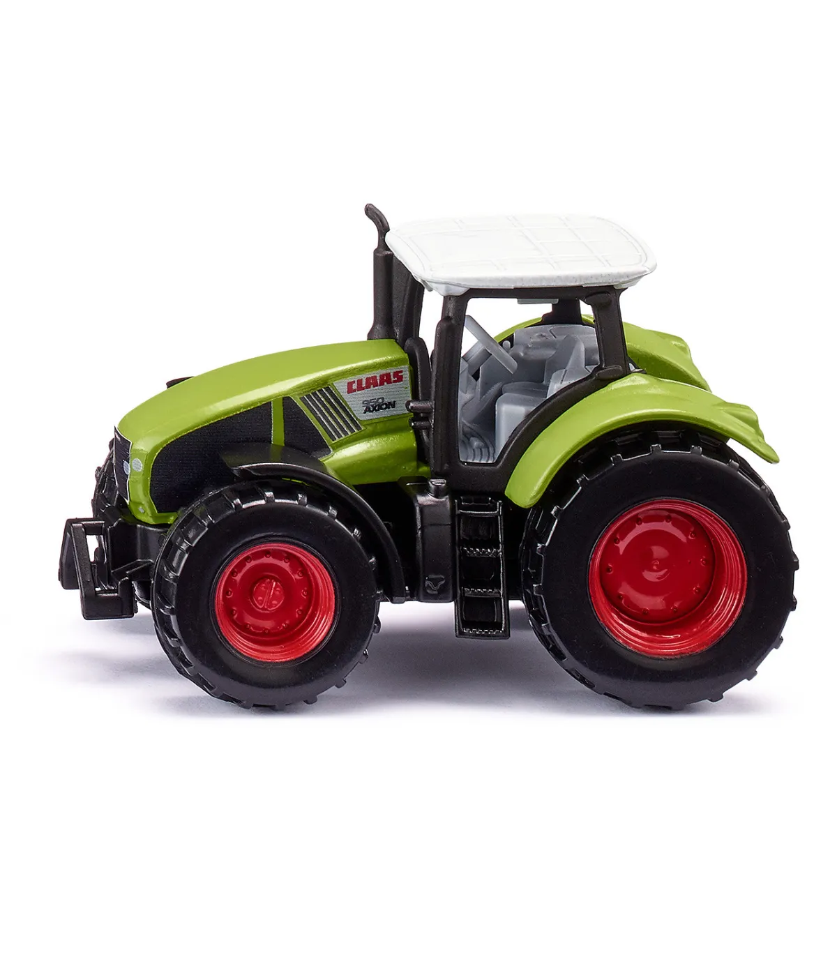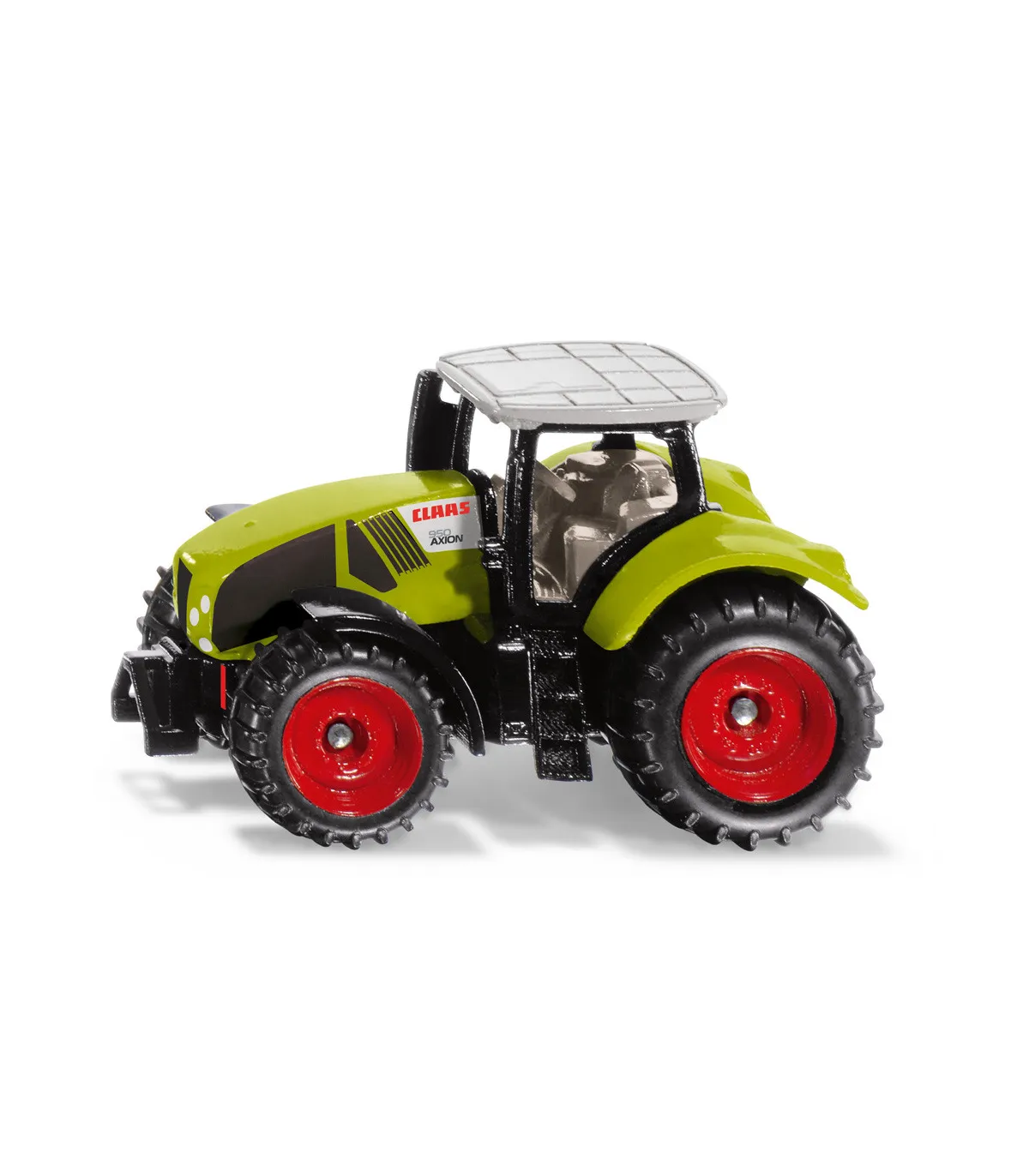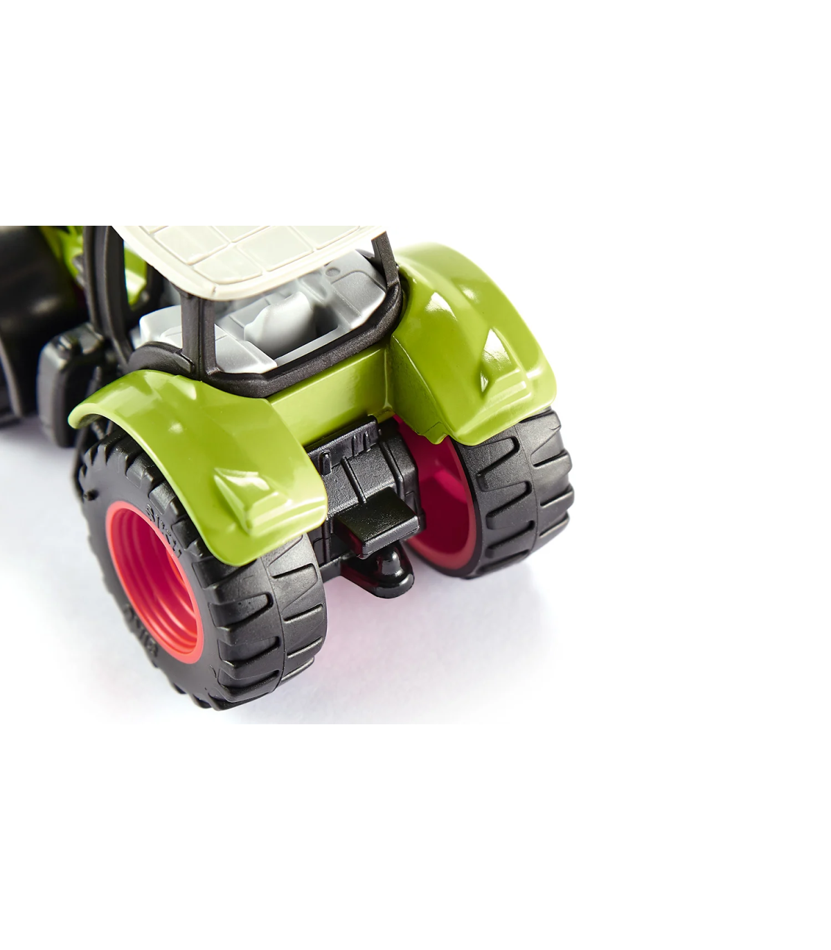 El Claas Axion 950 es el modelo superior de la serie Axion. Ya están disponibles 410 CV a 1.600 rpm. Esto permite una conducción eficiente y silenciosa. Con los anchos neumáticos de goma con banda de rodadura del tractor, el tractor está preparado para tareas grandes, incluso en la versión en miniatura. Todos los remolques SIKU de la serie BLISTER se pueden acoplar al enganche de remolque