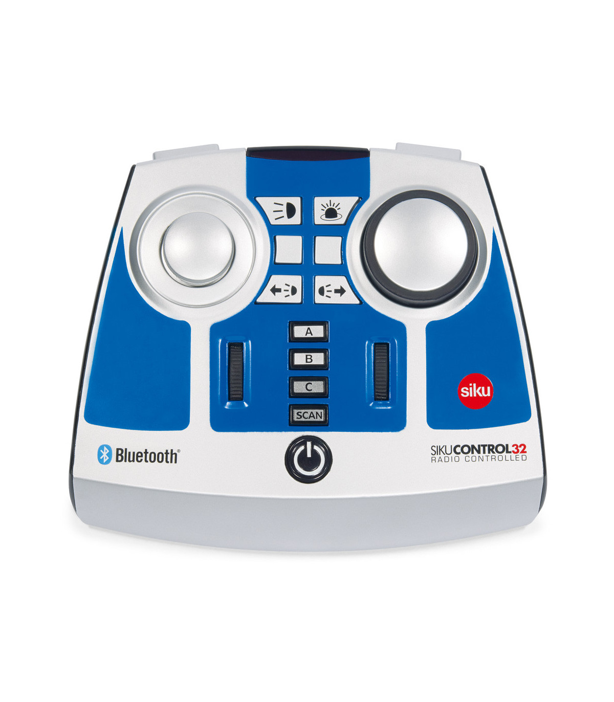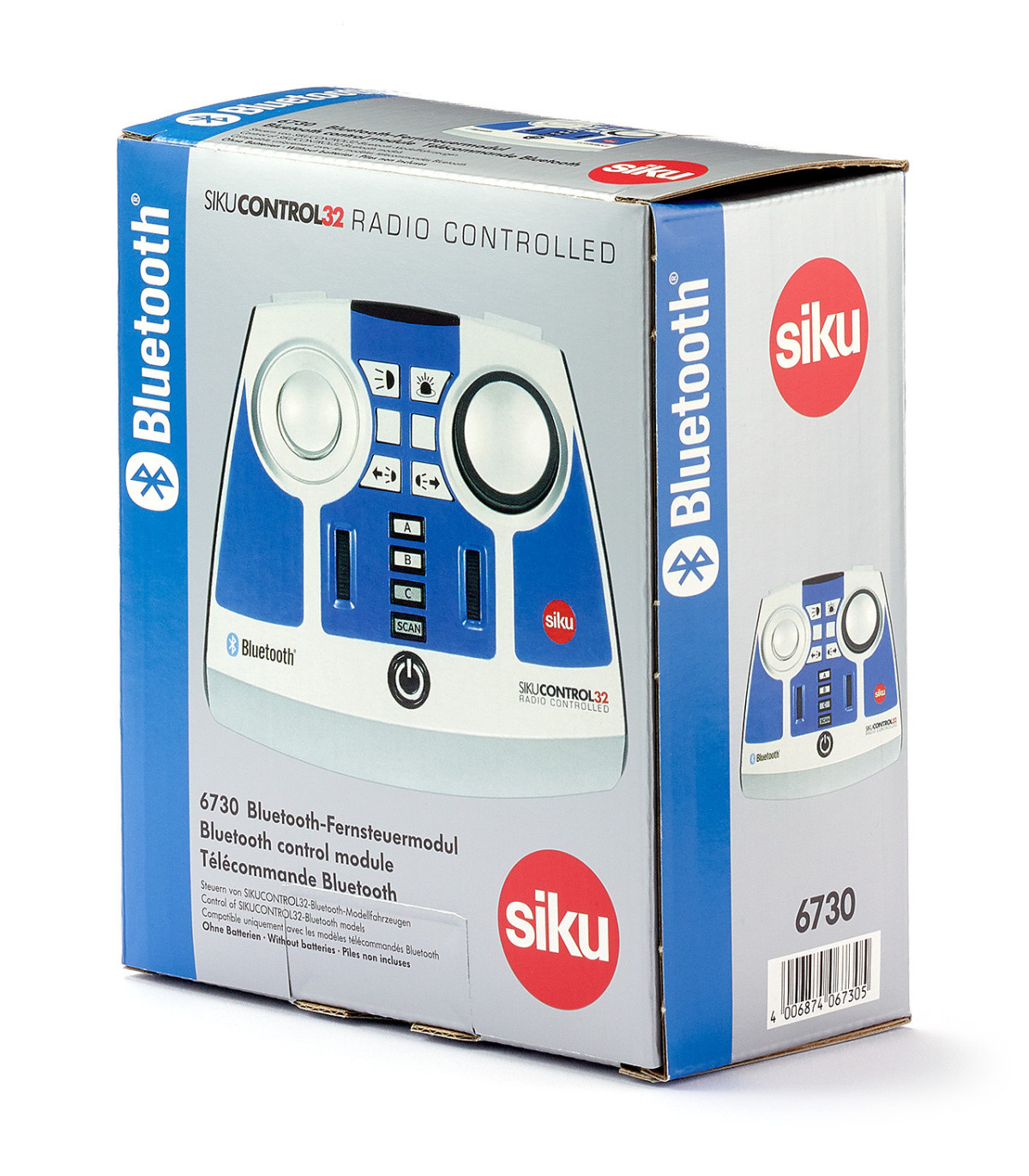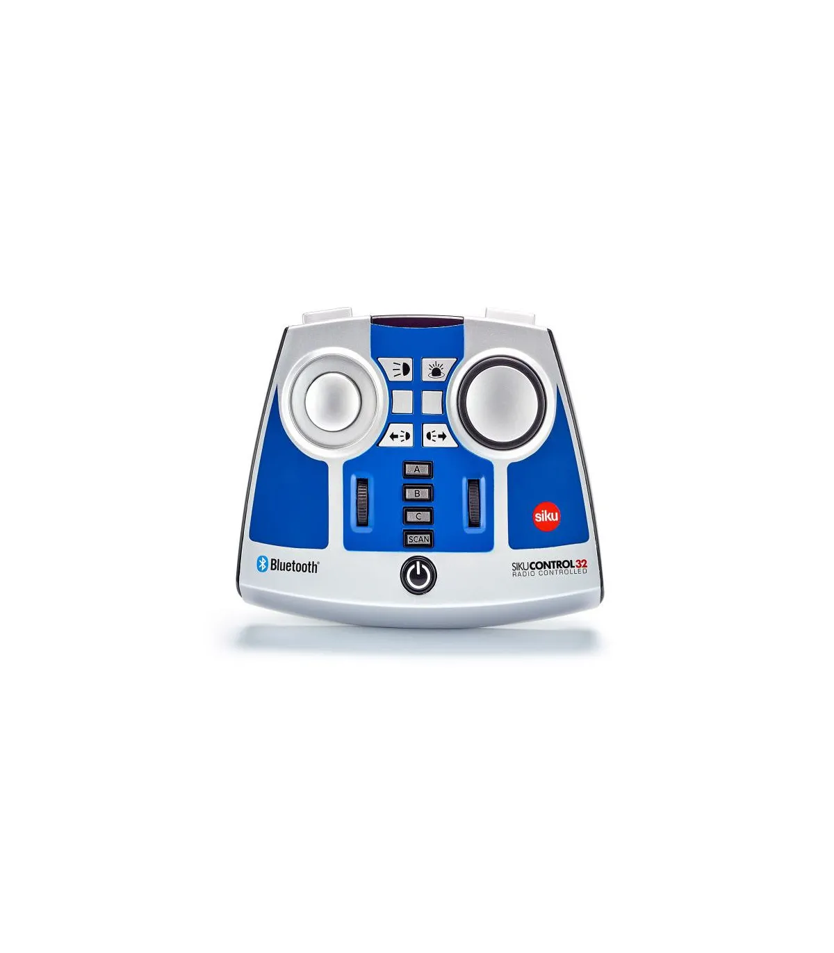 El módulo de control remoto Bluetooth se puede utilizar para controlar una gran cantidad de modelos SIKUCONTROL equipados con tecnología Bluetooth. Además de los tractores John Deere 7310R con cargador frontal (número de artículo 6792), Fendt 933 Vario con cargador frontal (número de artículo 6793), Claas Xerion 5000 TRAC VC (número de artículo 6791) y el nuevo Claas Xerion 5000 TRAC VC en negro con ruedas dobles magnéticas (número de artículo 6799) El nuevo Volvo FH16 con remolque (números de artículo 6731 y 6734) también se puede controlar a través de este módulo. El transmisor de mano ofrece una amplia gama de opciones para los profesionales: dirección, conducción, acoplamiento trasero electrónico para implementos y remolques, luces de marcha conmutables, intermitentes traseros y luces giratorias conmutables y control de varios vehículos a través de un único módulo de control remoto.